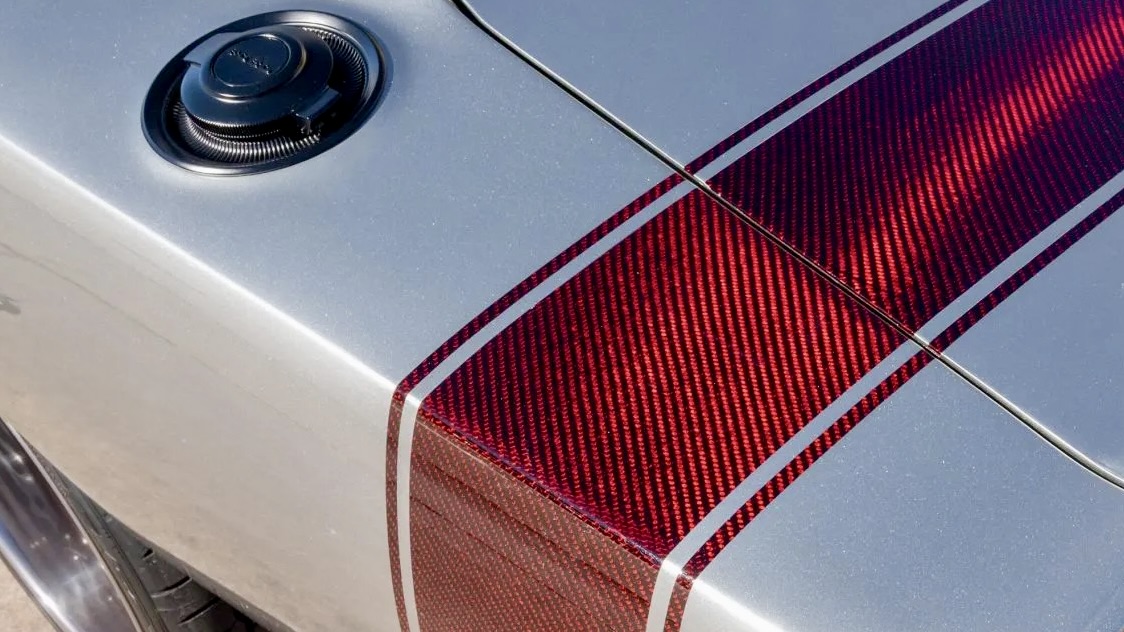 While EXOMOD has created a handful of custom carbon-bodied Chargers, the Silver Bullet stands alone as a one-of-one commission—its Silver finish with red-tinted exposed carbon-fiber accents is entirely unique to this car. Every major panel, from the hood and fenders to the decklid and quarter sections, was handcrafted from aerospace-grade carbon fiber, giving the car classic proportions while dramatically reducing weight compared to a stock Challenger.
