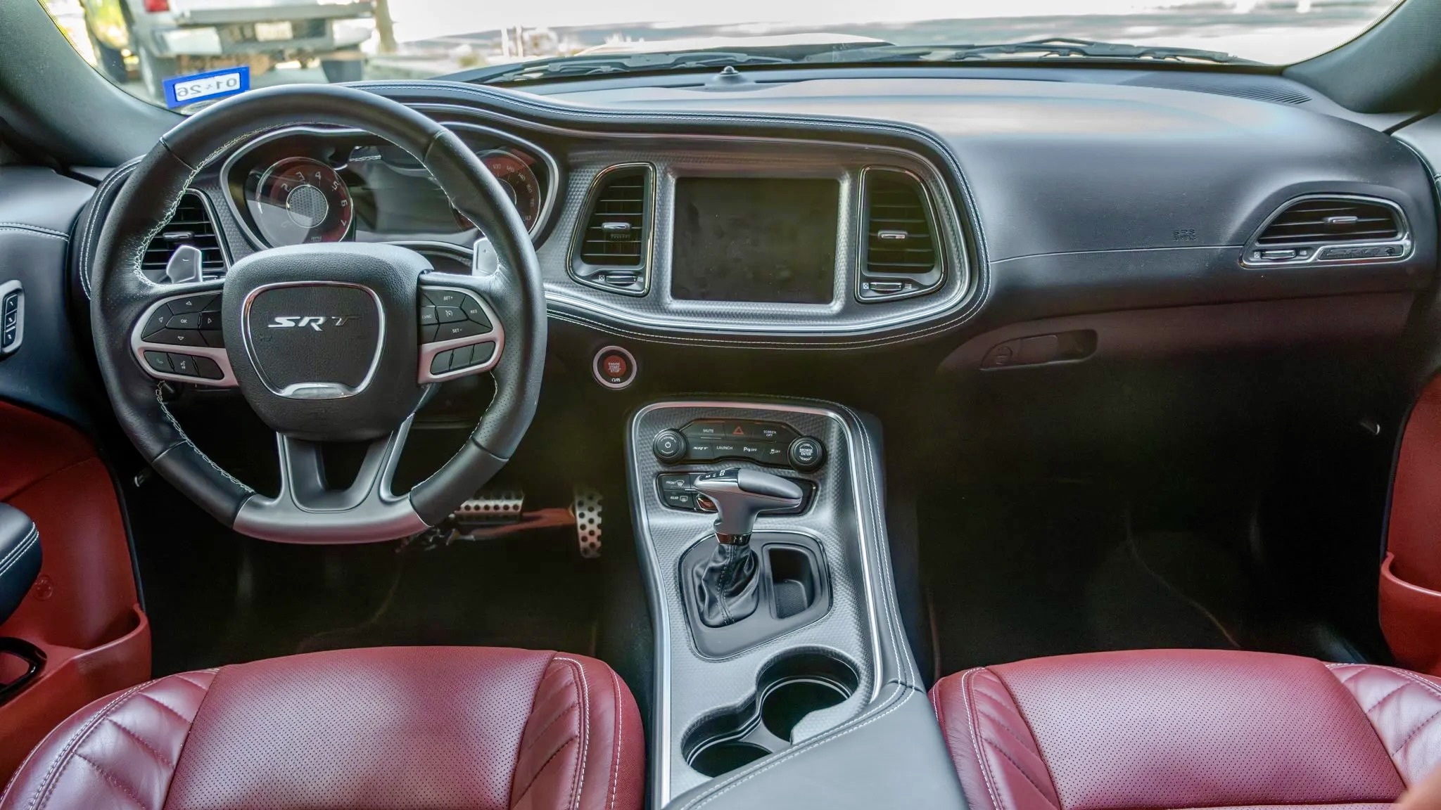 Inside, the Silver Bullet’s Demonic Red Laguna leather cabin offers a balance of performance and luxury. Heated and ventilated front seats, a heated steering wheel, blind-spot monitoring, dual-zone automatic climate control, and the 8.4-inch Uconnect 4C touchscreen with navigation deliver modern comfort wrapped in retro spirit. White stitching and subtle carbon accents complete the look.