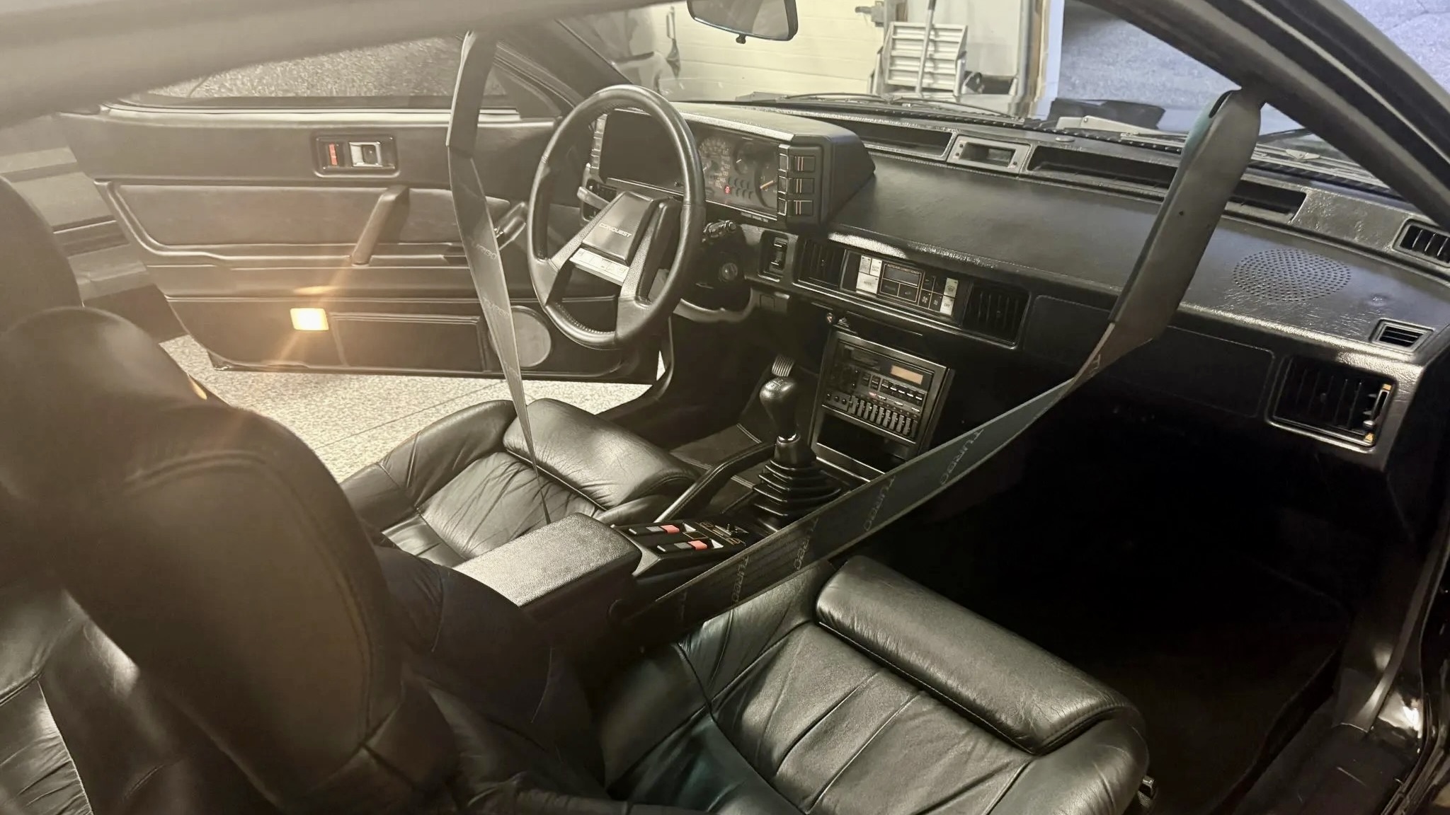 Inside, you’ll find a clean black leather interior with powered accessories, including power windows and a cassette stereo complete with a nine-band graphic equalizer—classic ’80s flair. The seats show light wear consistent with the mileage. One thing to note: the air conditioning doesn’t currently work, but hey, pop the windows and enjoy some turbo whistle instead.