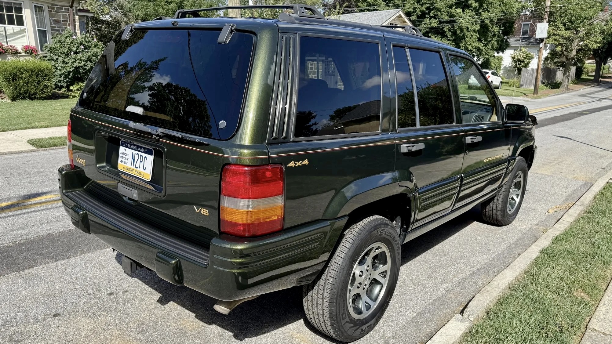 With 90,000 miles on the odometer—all logged under its original owner—this Grand Cherokee tells the story of careful, long-term stewardship. A mileage inconsistency noted in a March 2024 Carfax report is believed to be a clerical error. The SUV includes a clean Pennsylvania “Antique” title, a car cover, and a spare set of wheels. Maintenance records indicate that the front brake calipers were replaced in 2021, and the truck has remained accident-free since then.
