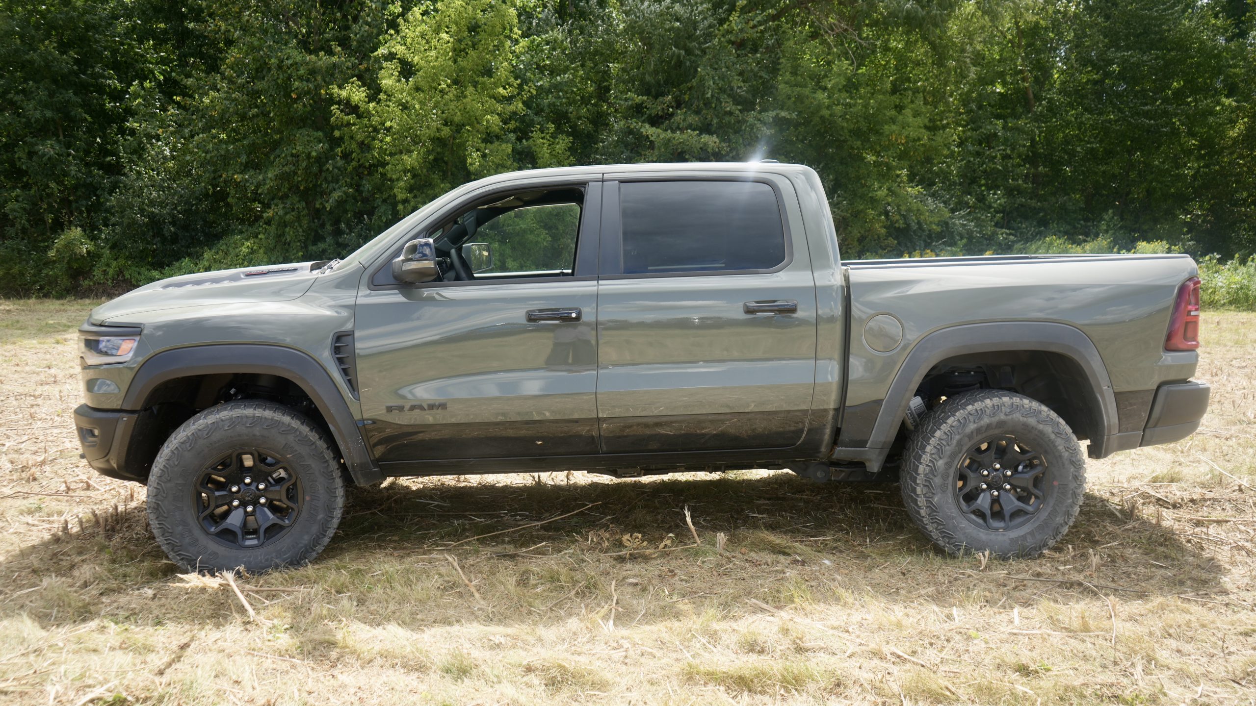 Visually, the RHO gets a subtle update with a new Canyon Lake exterior paint option. It’s a no-cost color that sits somewhere between Destroyer Grey and Ceramic Grey, with just a hint of green. It’s a clean, understated look that works well on a truck with this much presence. Otherwise, the RHO maintains its bold, wide-body stance and signature RHO badging.