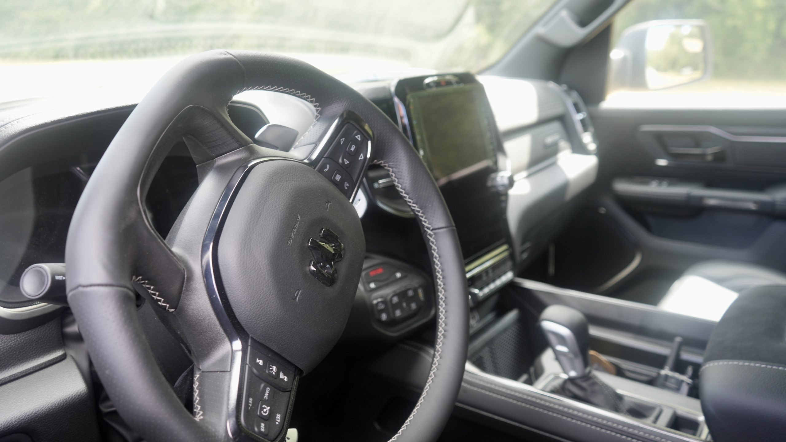 The RHO dials things back without stripping away the excitement. Under the hood is the twin-turbocharged 3.0-liter HURRICANE High-Output (H/O) I6, cranking out 540 horsepower and 521 lb-ft of torque. While it doesn’t scream like the TRX’s HELLCAT, it’s still plenty powerful and far more manageable for daily commuting. Fuel economy is significantly better, averaging around 14.5 MPG in mixed driving—much easier to live with than the single-digit figures the TRX often returned.