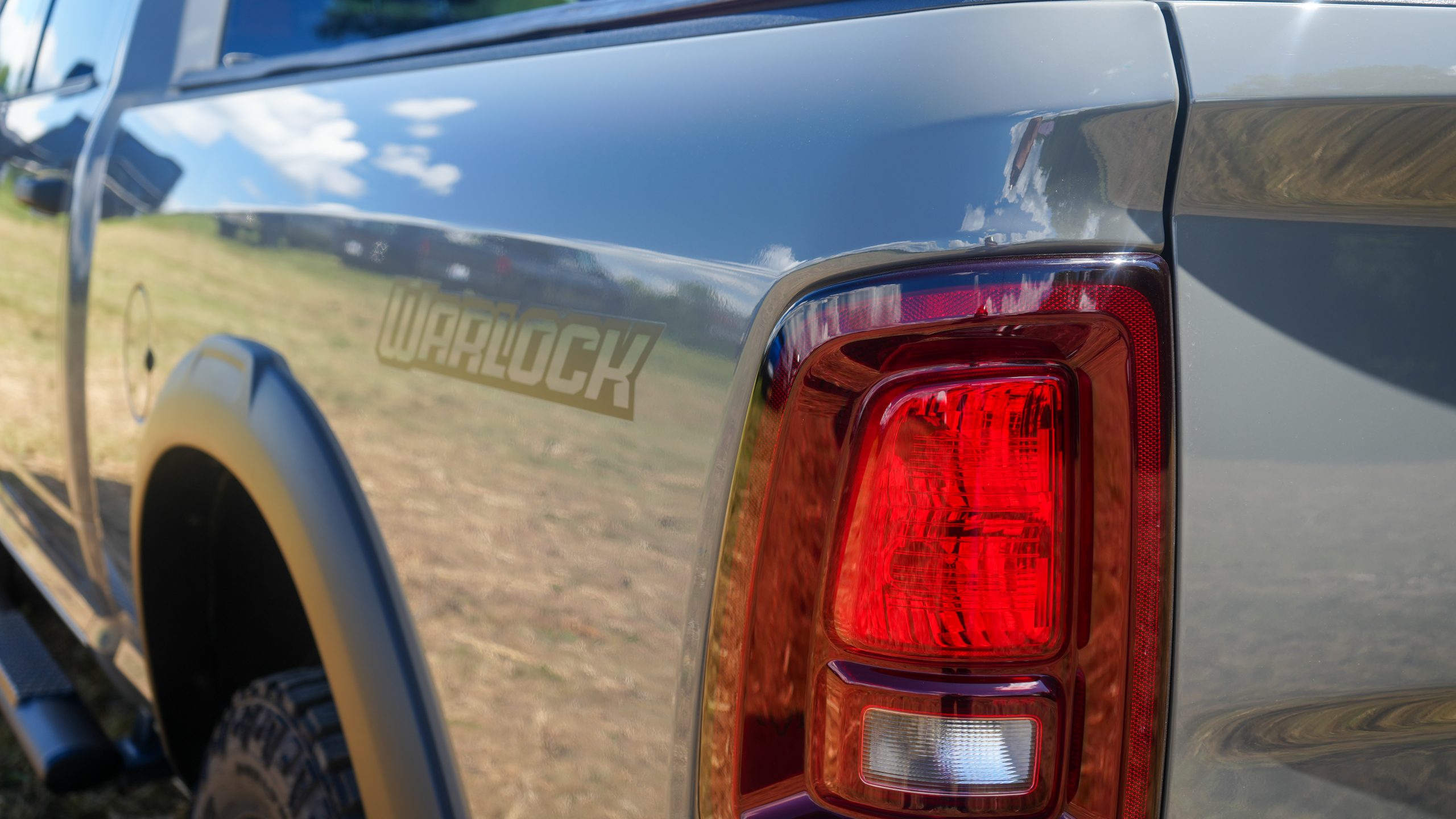 That said, there are some subtle differences. The Warlock sticks with the standard Tradesman grille design and uses LED reflective headlights instead of the Rebel’s projector-style units. The Rebel’s Sport Performance Hood is also missing here, with the Warlock wearing a standard hood instead. Around back, you won’t find a Rebel badge either—just simple sticker-style graphics on the bed sides. Even the taillights are basic incandescent units rather than LEDs. These cost-cutting measures might bother buyers who crave premium styling, but for many, they’re part of the Warlock’s back-to-basics charm.