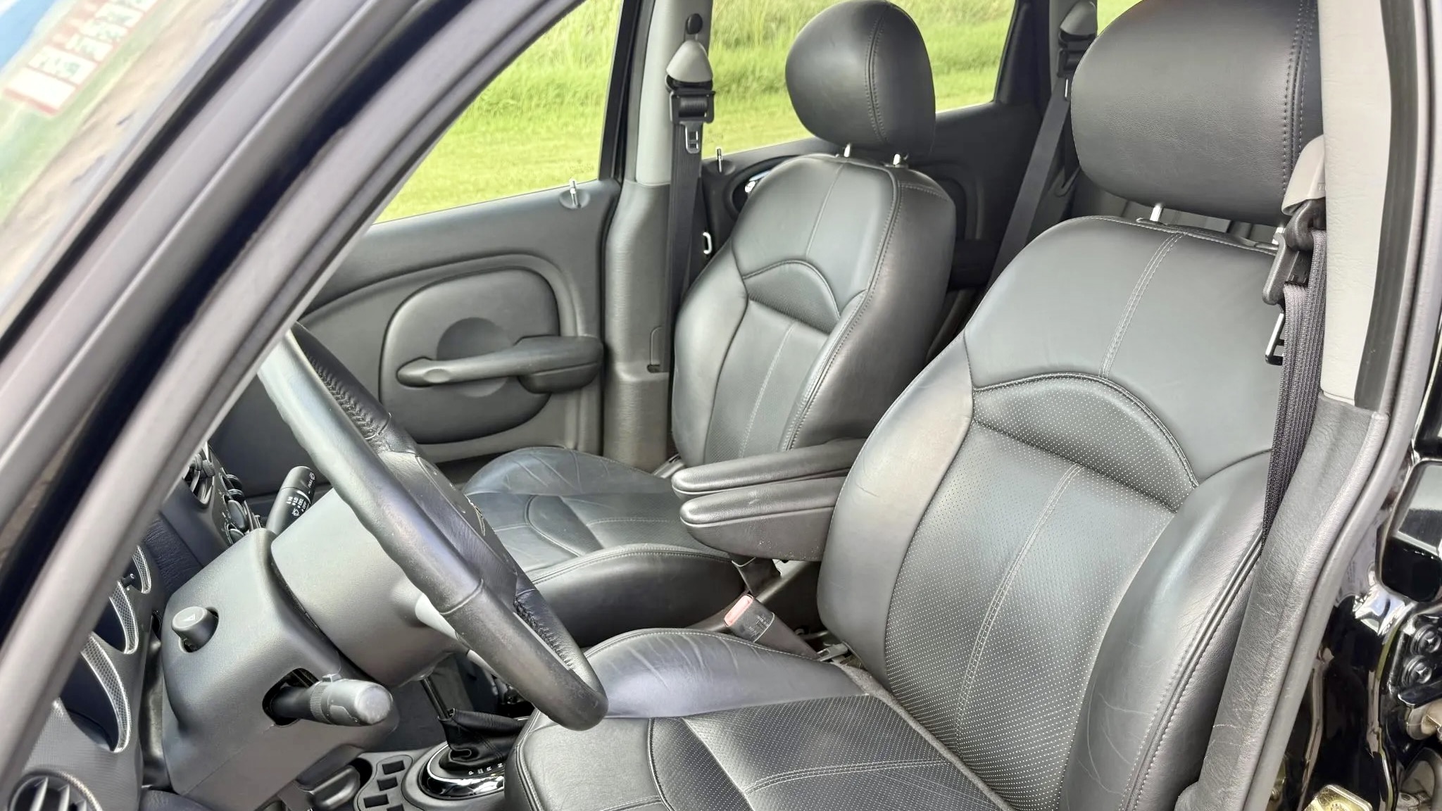 Inside, the PT Cruiser GT blends retro design with modern convenience. You’ll find heated leather bucket seats, a power-adjustable driver’s seat, a 6-disc CD stereo, air conditioning, and a leather-wrapped steering wheel framing a 140-mph speedometer and 8k-rpm tachometer.