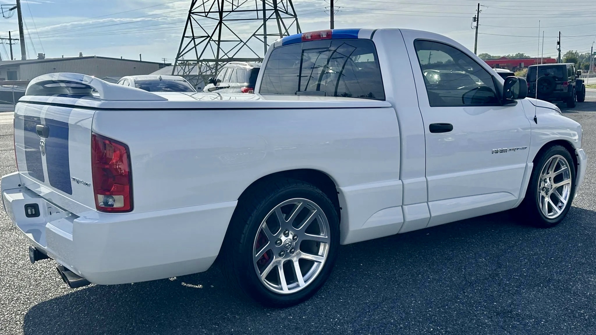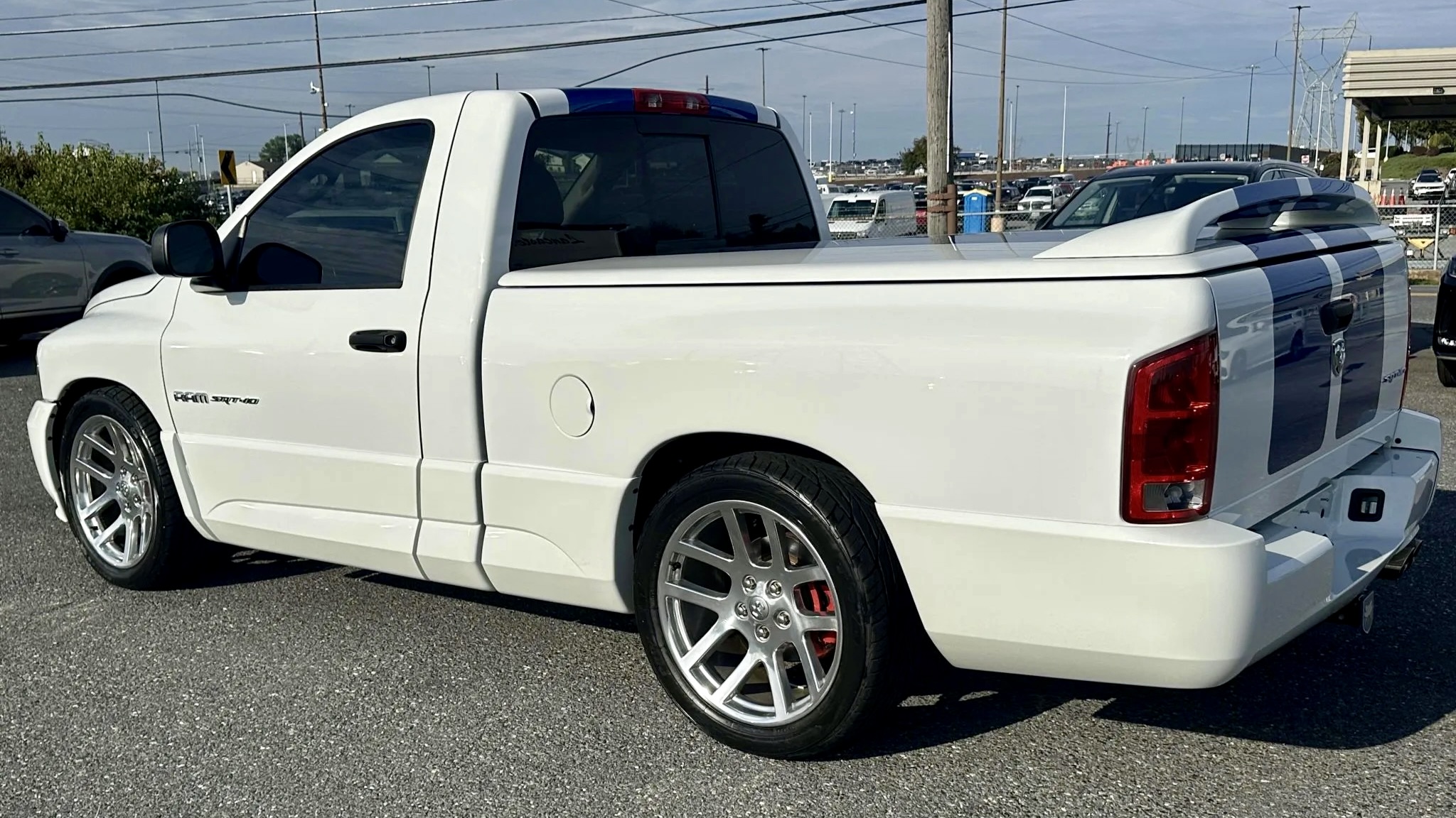 This 2005 Dodge Ram SRT-10 Regular Cab Commemorative Edition shows just 29,000 miles and looks every bit the part of a modern classic. Finished in Bright White with bold Electric Blue stripes, this limited-edition truck proudly celebrates Dodge’s performance heritage. Each of the 200 units came exclusively in this color combination, with special blue-stitched interiors and numbered plaques—this one being #008.