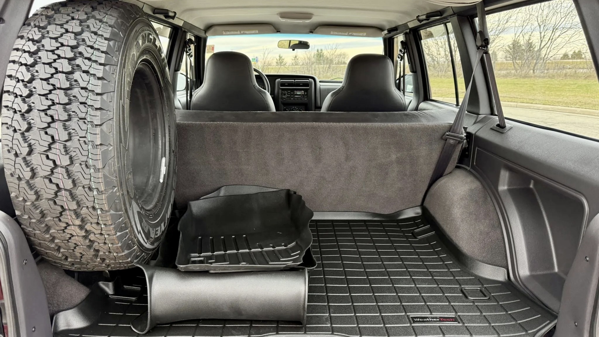 Under the hood sits the stalwart 4.0-liter “PowerTech” I6, factory rated at 190 horsepower and 225 lb-ft of torque. It is paired with a four-speed automatic transmission and a dual-range Command-Trac transfer case, giving this Cherokee the ability to roam from highway cruise to dusty back road with equal ease. The 4.0-liter XJ is widely regarded as one of the most durable engines of its era — a big reason the XJ remains a favorite among enthusiasts.