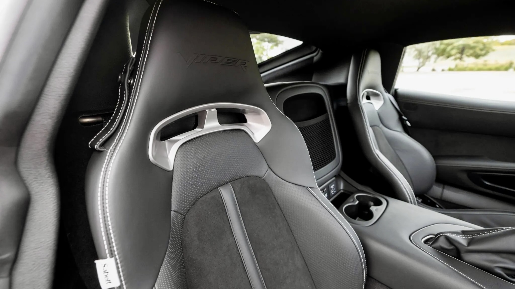 Under the hood lives the heart of the beast: an 8.4-liter (512 cubic-inch) naturally aspirated VIPER V10. Hand-assembled at the Conner Avenue Assembly Plant, it produces 645 horsepower and 600 lb-ft of torque. Paired with a Tremec 6-speed manual transmission and a limited-slip differential with a finned cooler, this Viper delivers pure, analog driving thrills. An aluminum X-brace spans the engine bay for additional chassis rigidity.