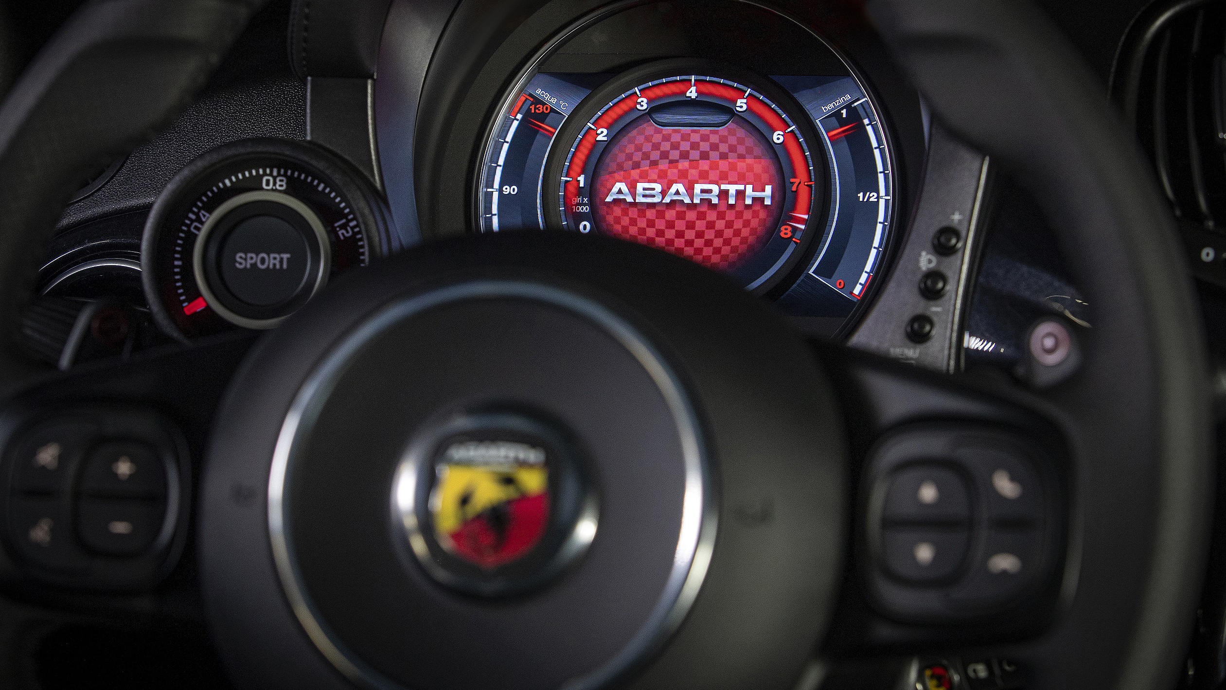 As standard, it includes a racecar inspired flat-bottom steering wheel and centering stripe on the top part of the steering wheel rim, particularly useful for sports car driving. The “Sport” button controls the maximum torque delivery, power steering system calibration, and throttle response, last but not least followed by the rumble of the Record Monza exhaust with active valve. The braking system – designed ad hoc for Abarth – provides maximum safety when decelerating via the 284-mm front and 240-mm rear ventilating discs. Also as standard is the Koni rear suspension, with Frequency Selective Damping (FSD) technology to increase road holding, handling, and stability, making it a unique driving experience.