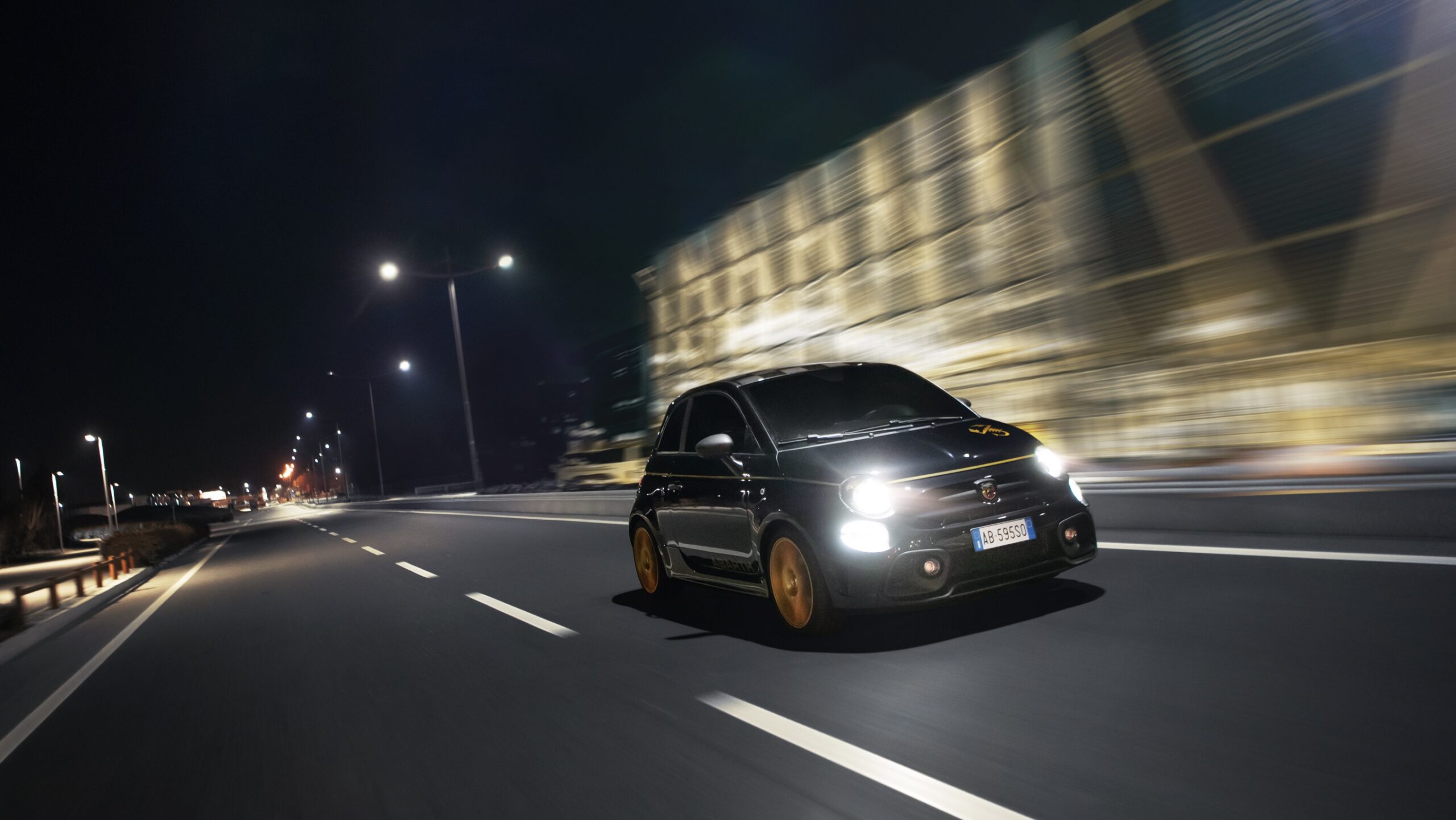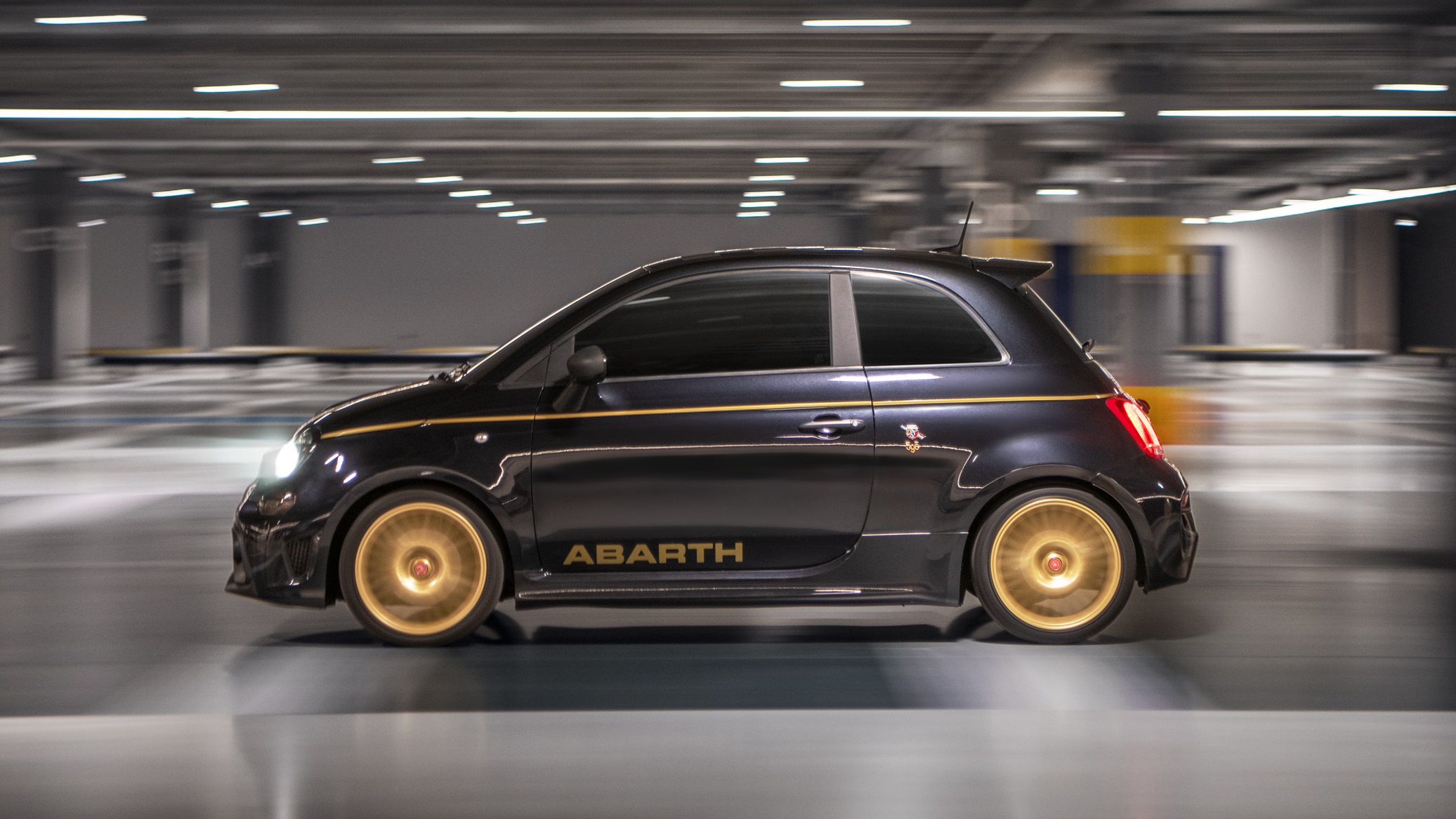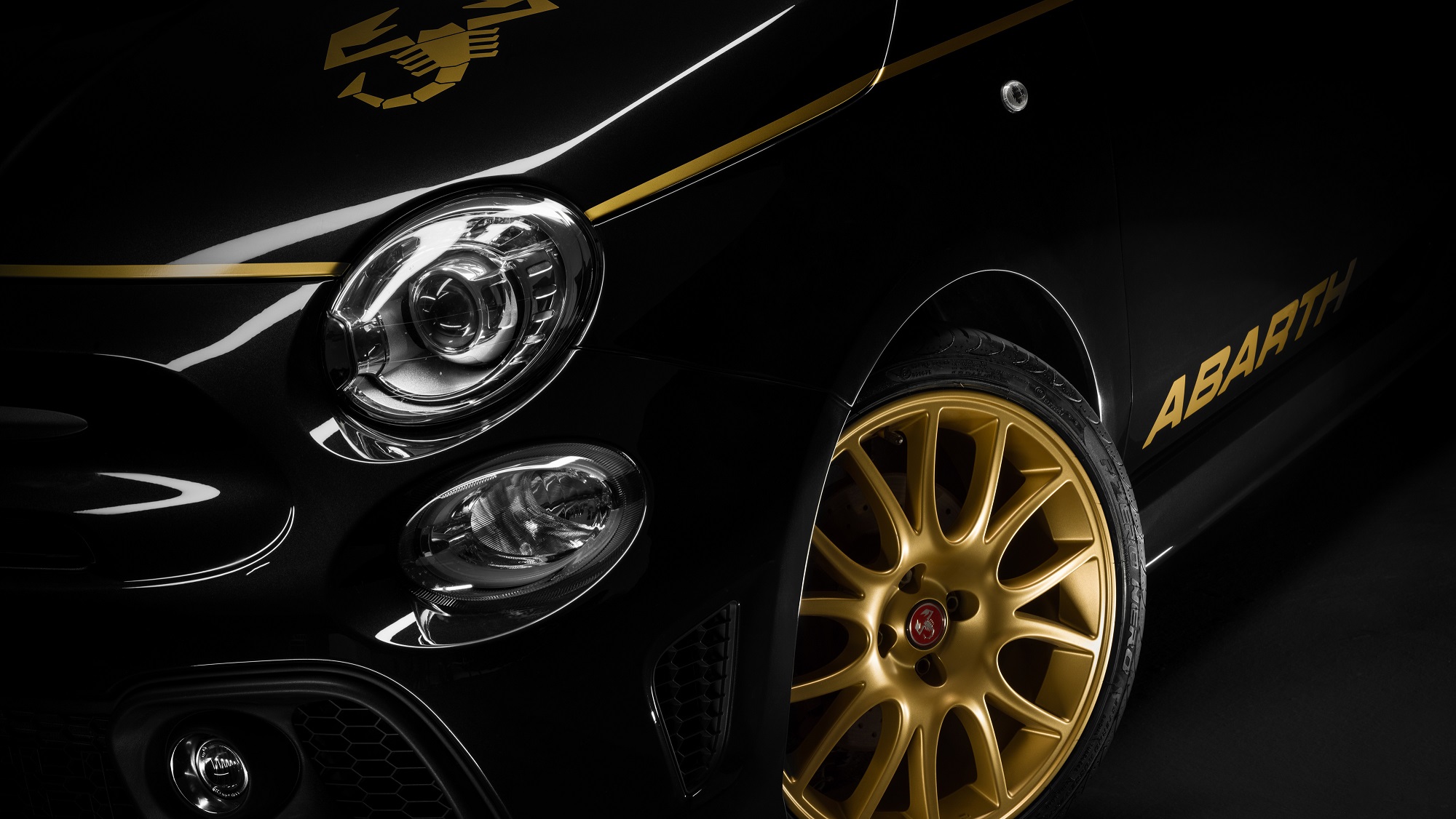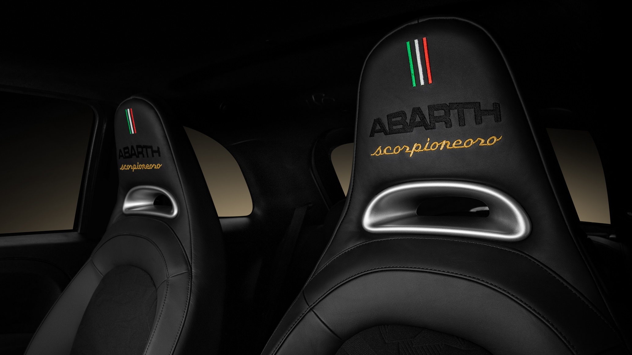 Inside, the new Abarth “Scorpionflage” sports seats with black leather upholstery and back seat in technical material to better contain the body during the sportiest driving. On the front seat head restraints, embroidered “Scorpioneoro” lettering alongside the Italian flag, and Abarth embroidery. The new seats combine with the Scorpion Black dashboard with matt black details, and with the gold plate on the central tunnel and personalized mats.