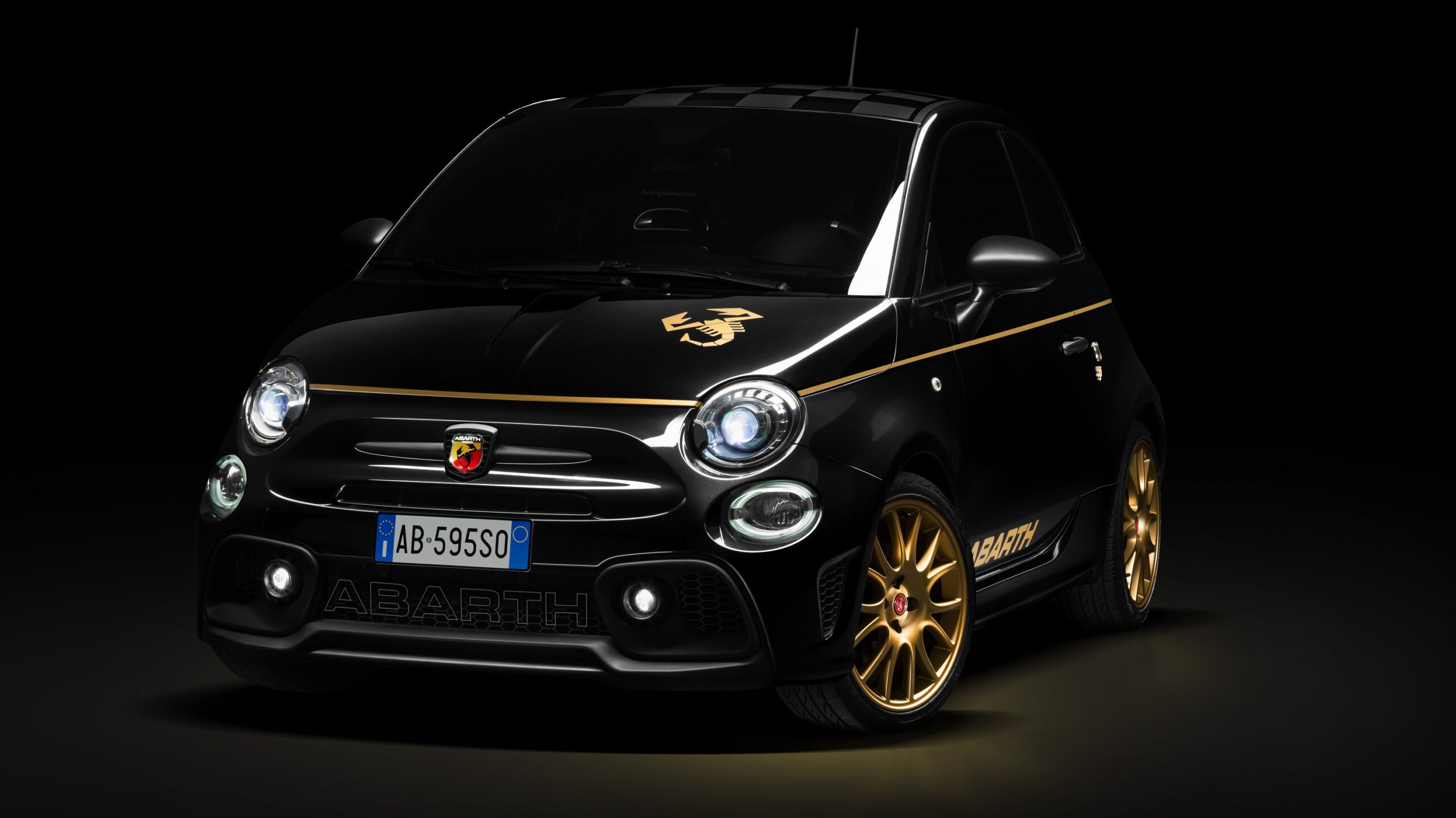 The special Abarth 595 Scorpioneoro edition is just as impressive and is a genuine “collector’s item”, produced as it is in a limited edition and bearing a prestigious numbered plate in its cockpit. The new special edition features exclusive details. From the outside, it is recognizable by its black scorpion livery – available on request in Podium Blue, Racing White, and Record Gray – and the matt black chessboard roof perfectly matches the “tar cold gray” finish of the handles, mirror caps, and the front and rear air dam. To emphasize its coolness even further, this new special edition includes golden details, such as the scorpion on the bonnet, the lining around its bodywork, and the 17-inch “Golden” aluminum wheels or, on request, 17-inch “Black” aluminum wheels with the golden scorpion on the hubcap.
