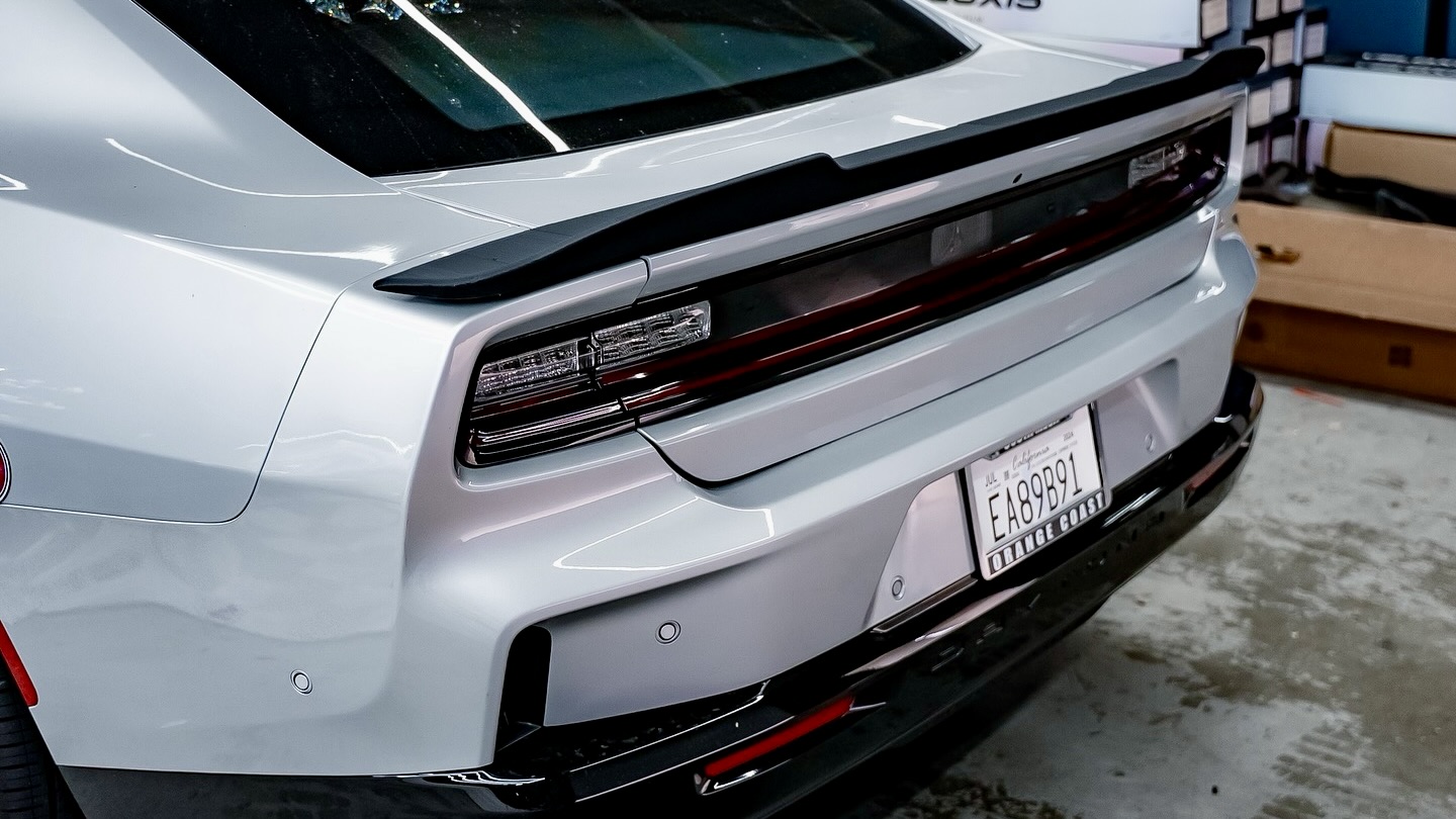 At the front, the new lip spoiler adds definition to the Charger’s wide nose. The LB Charger already has a low, planted look, but this upgrade pushes that presence even further. Beyond looks, the front lip helps manage airflow under the car, which can improve stability at higher speeds. It also provides an extra layer of protection for the lower fascia—something that matters when your Charger is driven daily, not just parked at shows.