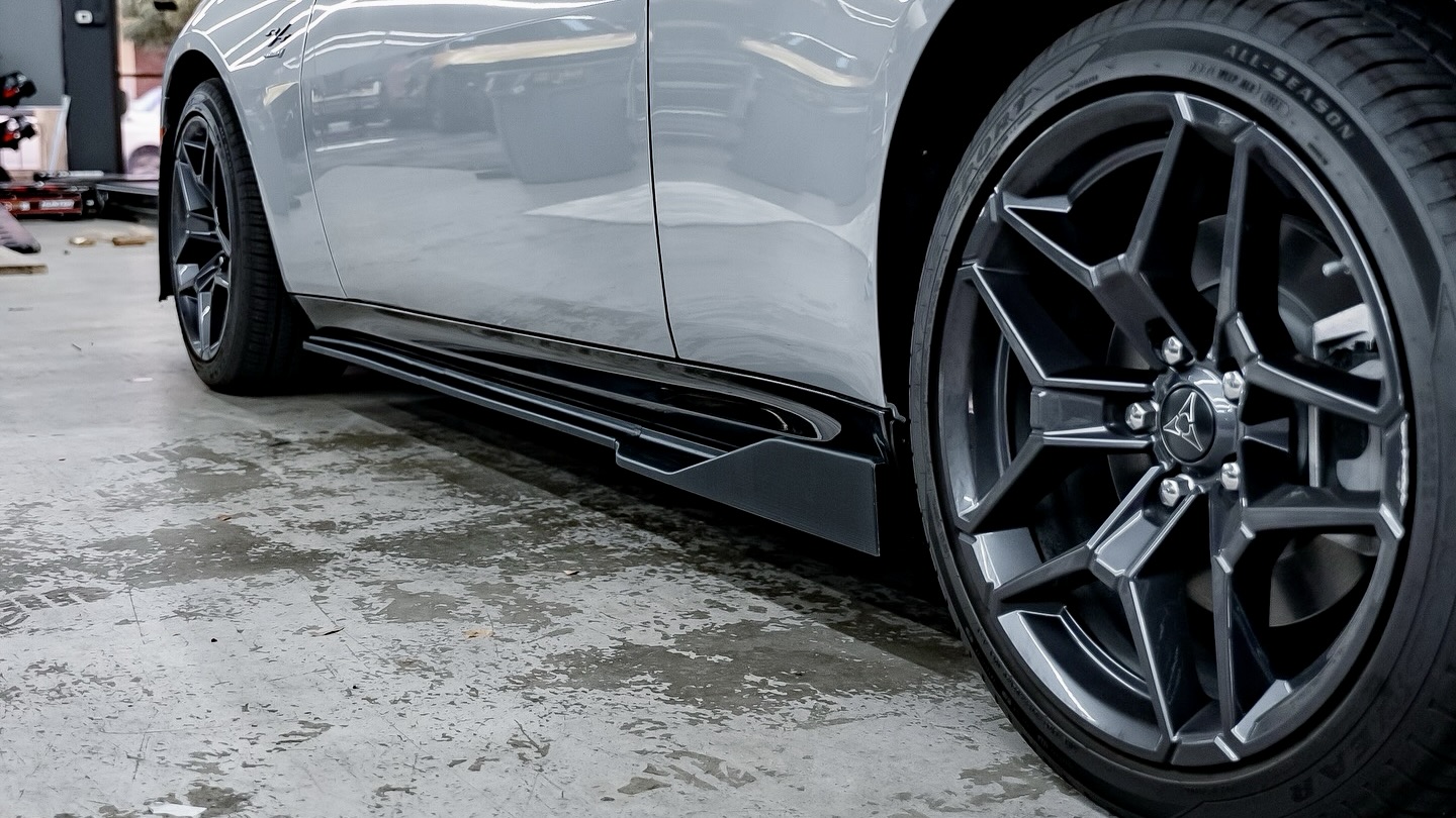 Moving down the sides, the side skirt extensions play an important supporting role. They visually lower the car while helping smooth airflow along the body. On modern muscle cars, side skirts often make the difference between a car looking “stock-plus” and fully finished, and that’s exactly what they do here. They pair naturally with the front lip and help keep the Charger’s profile aggressive from every angle.