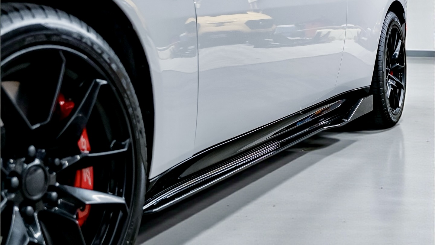 Moving down the sides, the side skirt extensions play an important supporting role. They visually lower the car while helping smooth airflow along the body. On modern muscle cars, side skirts often make the difference between a car looking “stock-plus” and fully finished, and that’s exactly what they do here. They pair naturally with the front lip and help keep the Charger’s profile aggressive from every angle.