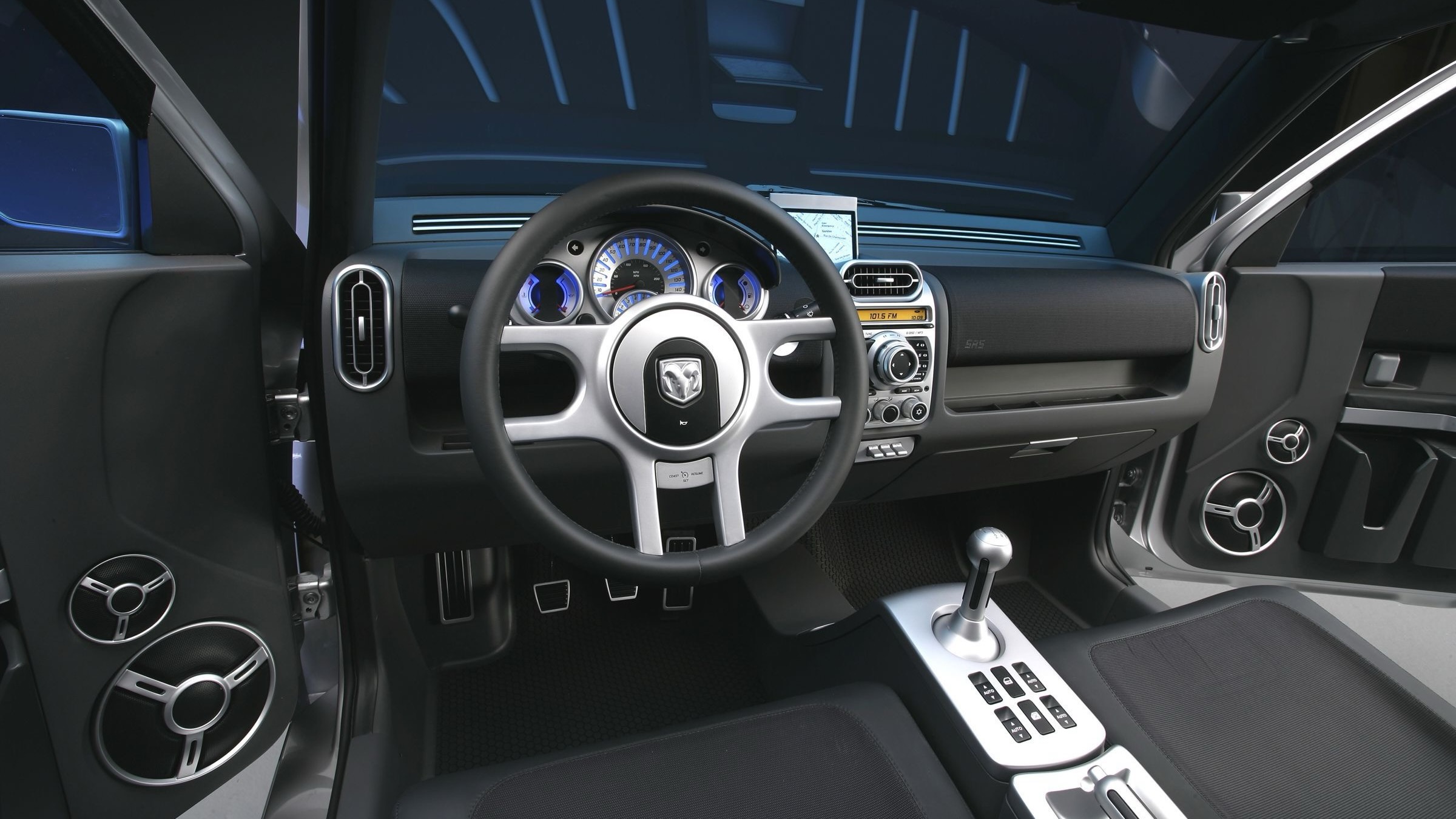 The gauge cluster and dash featured digital displays — forward-thinking for 2006 — offering a youthful tech vibe, while also letting Dodge experiment with future infotainment possibilities. Even the steering wheel had a squared-off, motorsport-inspired design.