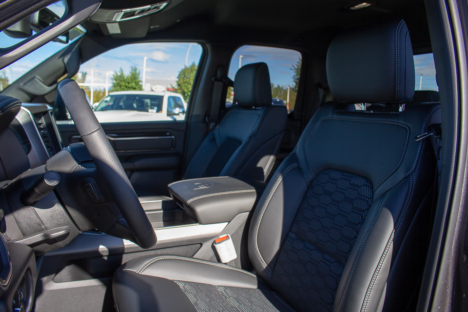 - Optional leather heated and ventilated seats (which is found on Laramie Sport)