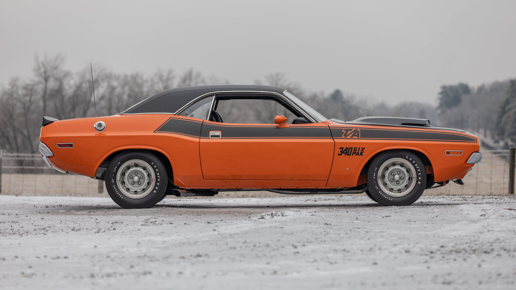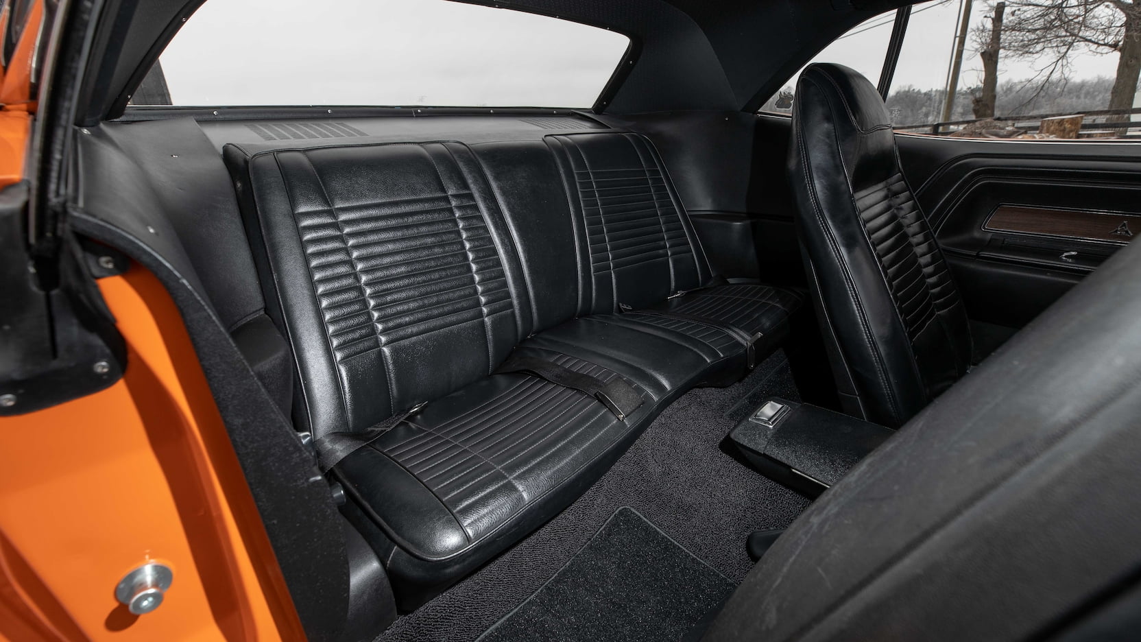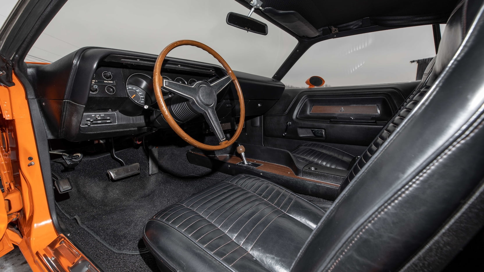 The 340 SIX PACK under the hood of this freshly restored Challenger T/A is not only number’s matching but has fewer than 30,000 original miles. Of the three different shifting options we discussed above, this one features the floor-mounted TorqueFlite automatic shifter. This particular model also features the popular Go ManGo exterior paint color with an all-black interior.