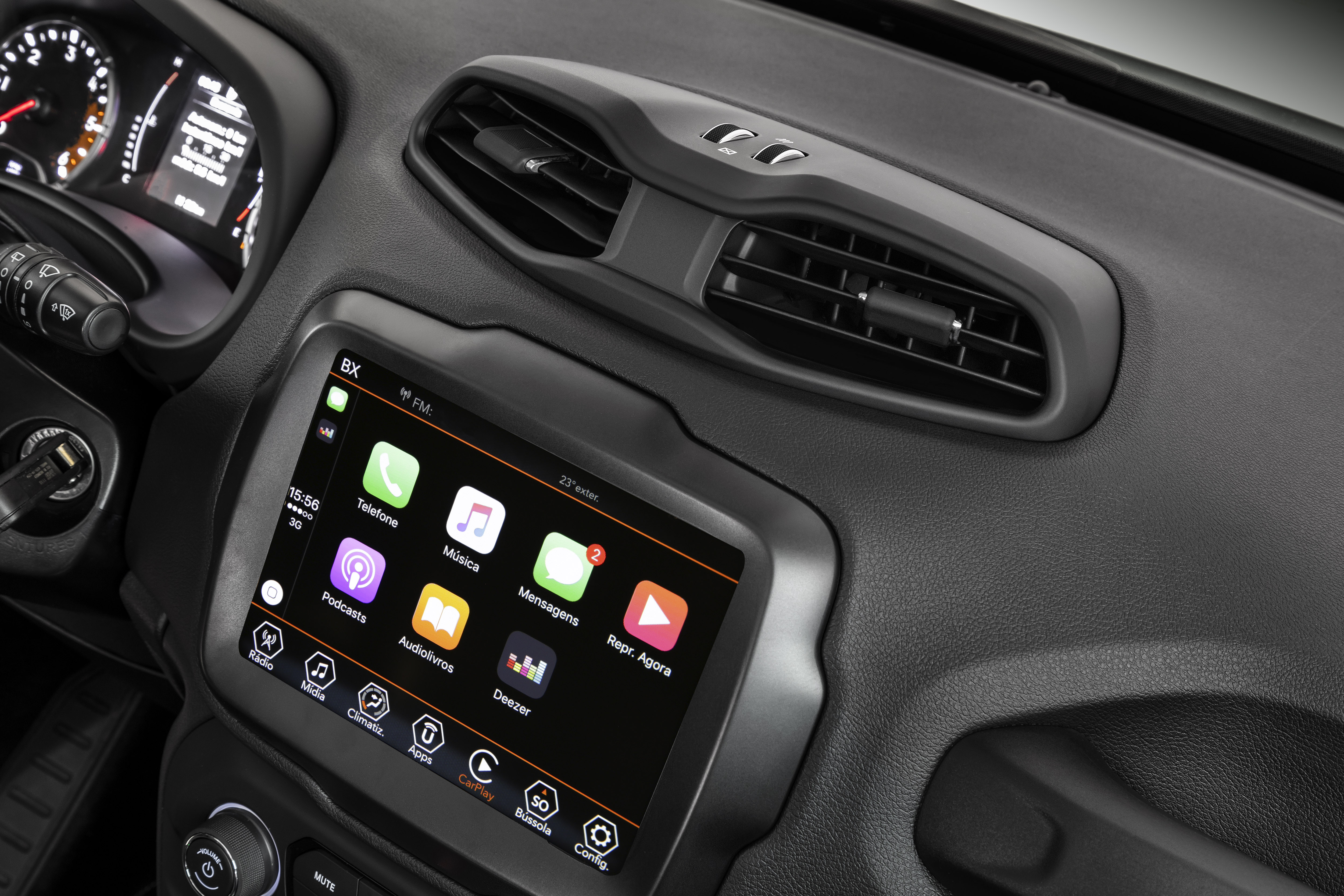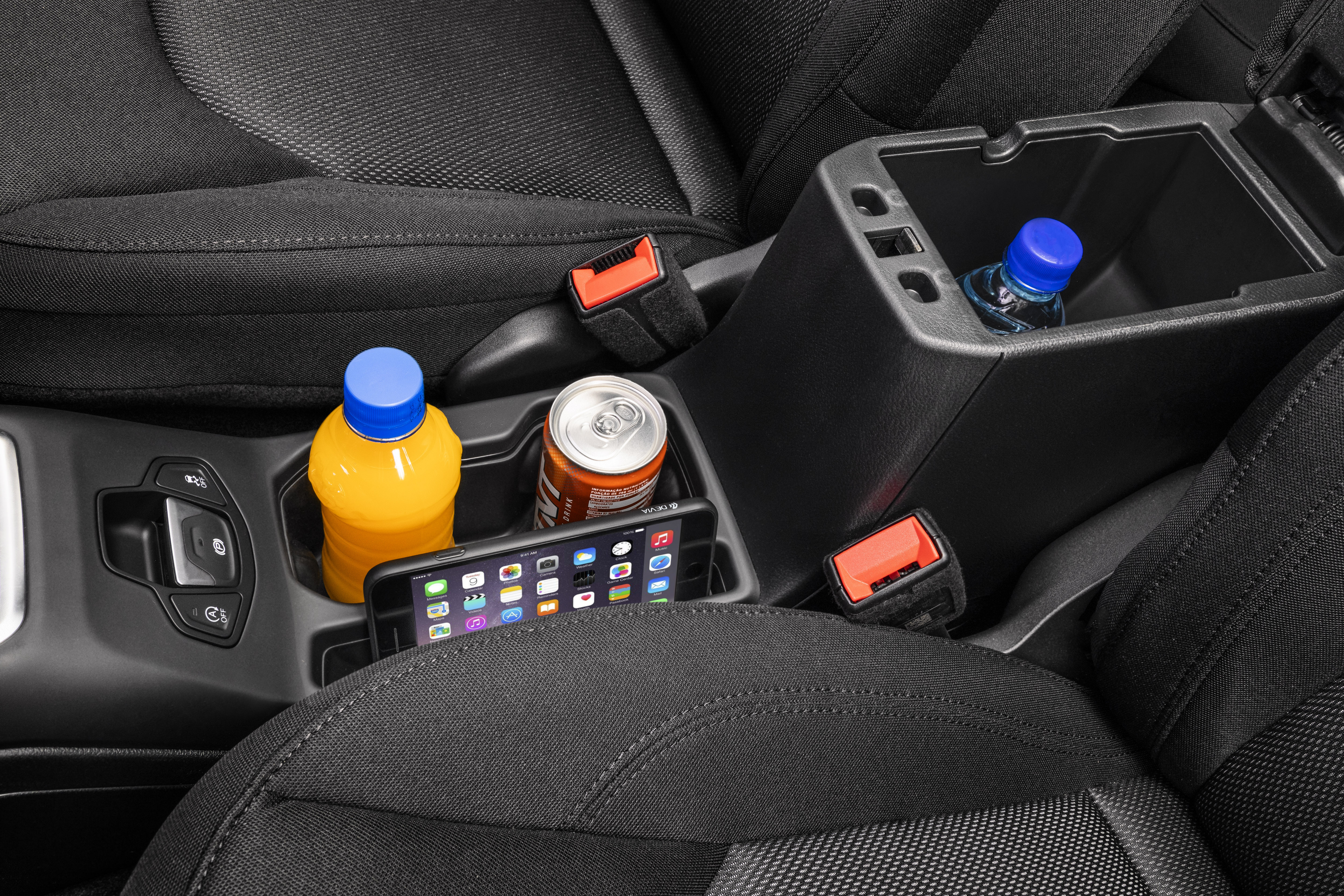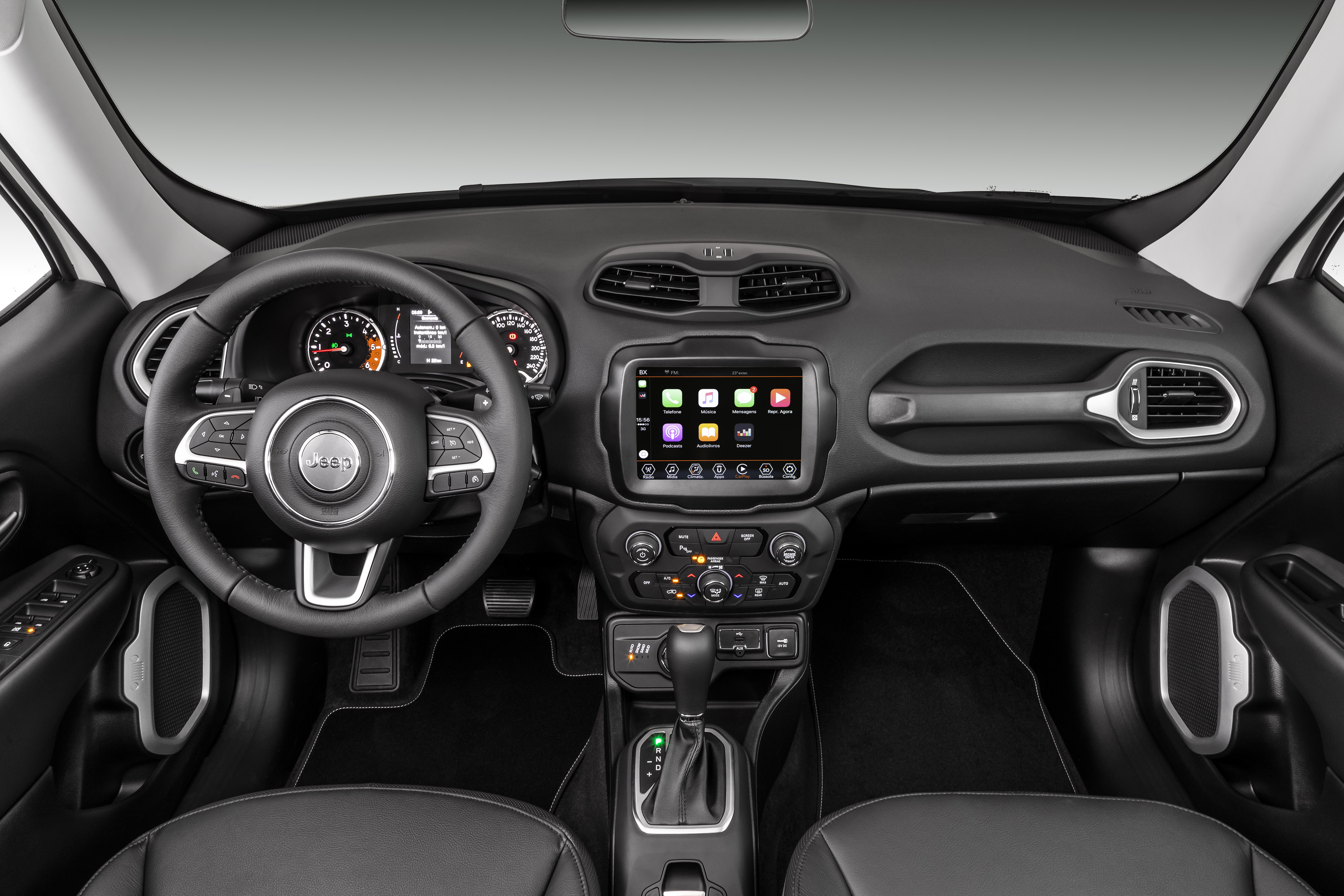 Even though the Jeep Renegade had the most refined interior in its class, the central area received special care and was redesigned. The air-conditioning controls are new, and there are more numerous and spacious space for items throughout the interior. Both the front of the shift lever and the position between the seats, have a new niche that have been opened to accommodate items such as a cell phone. In the Diesel versions, the Selec-Terrain knob went up slightly to generate more amplitude in the surrounding area.