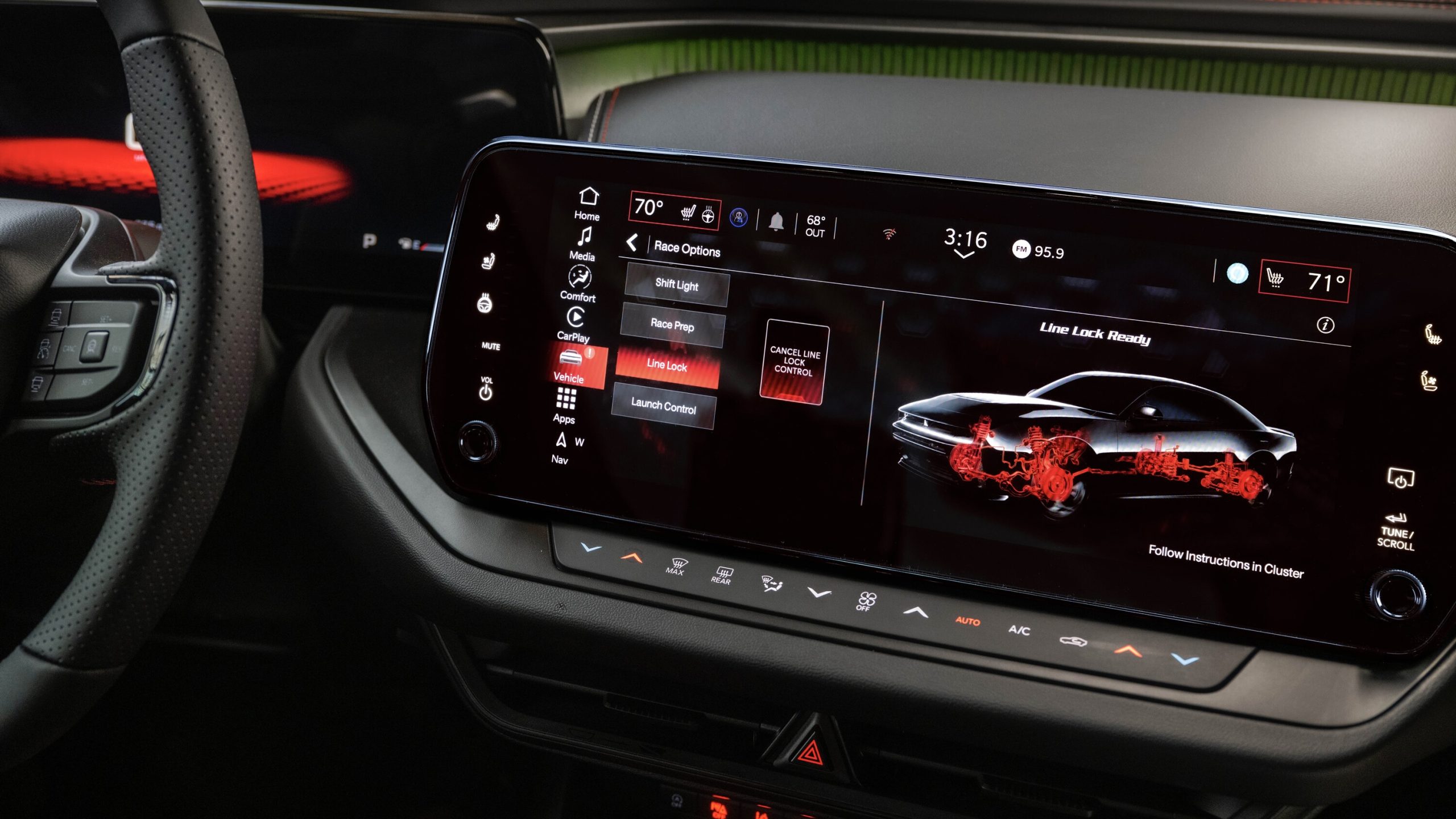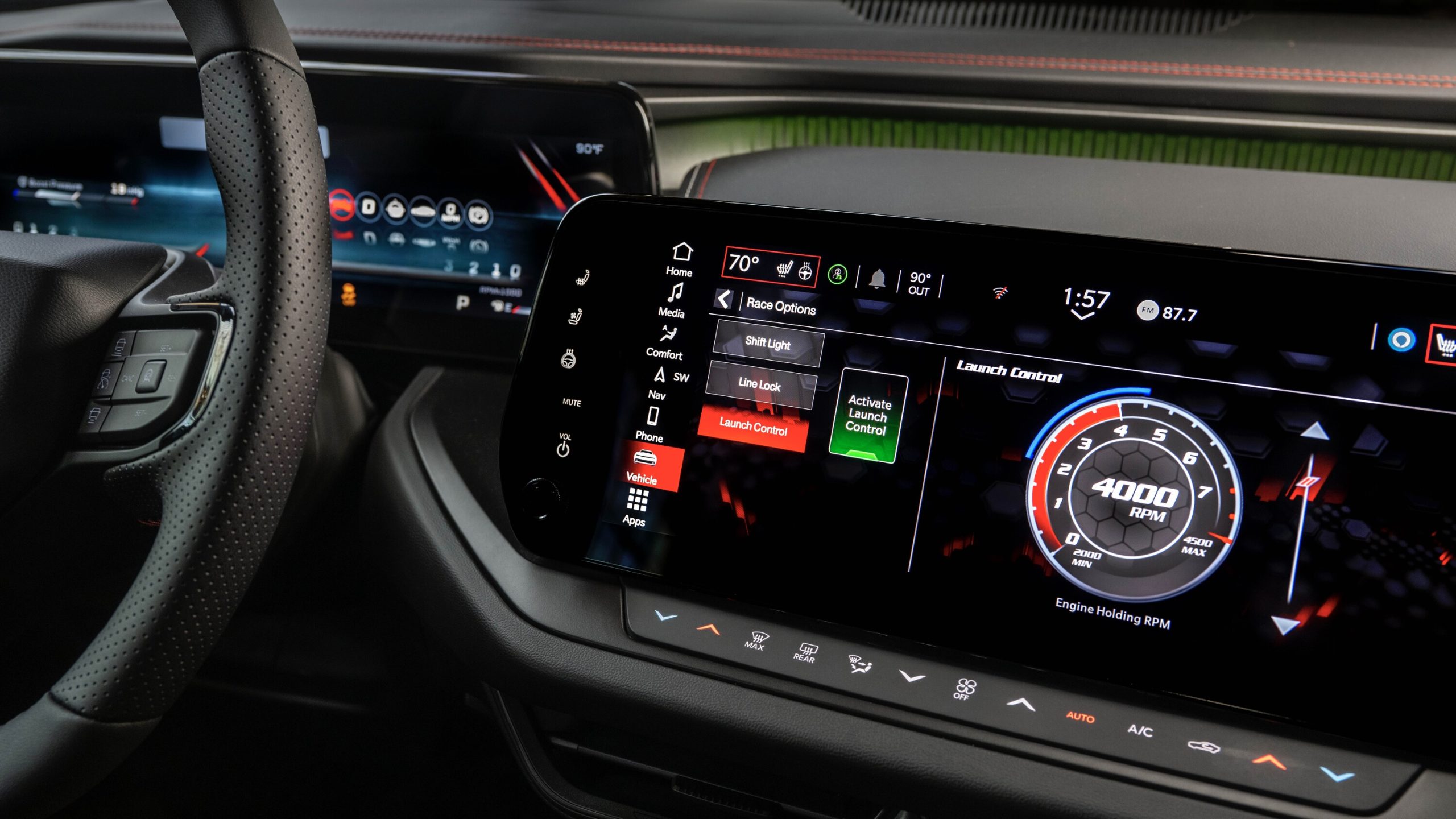 The Scat Pack takes this fun even further with performance tools like Line Lock and Launch Control. Line Lock lets you lock the front brakes and disconnect the AWD clutch packs to roast the rear tires without moving forward — perfect for warming them up before a drag run or just making a statement at a car meet. Launch Control allows you to set a preferred launch rpm and build maximum turbo boost before releasing the brakes, ensuring the hardest, most controlled launches possible.
