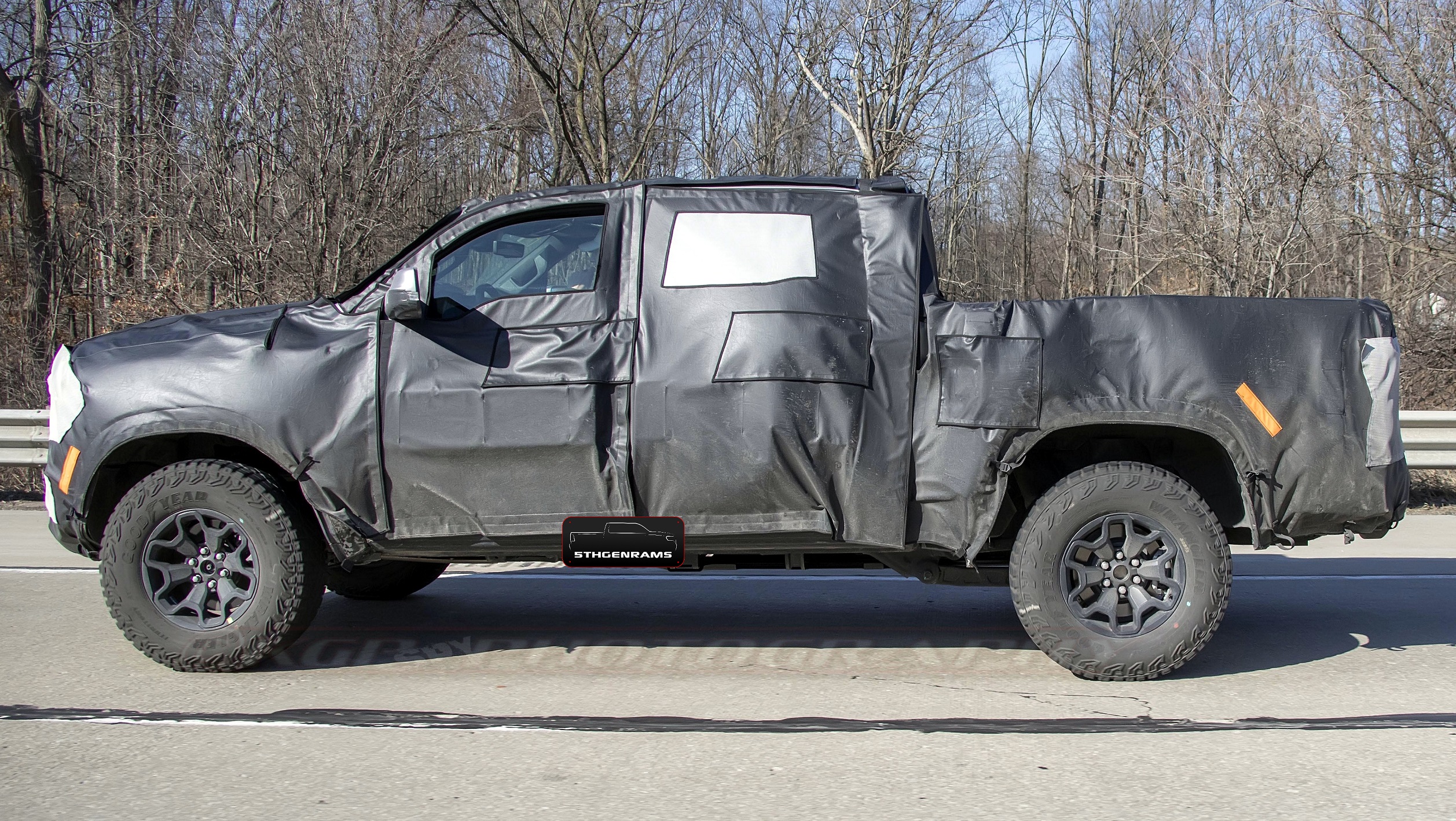 All of the prototypes are carrying the new LED third brake light, which we believe will be available as standard equipment on all 2021 Ram 1500 models with LED lighting (which will be a much-welcomed addition). Another change is the production-spec prototypes are running Goodyear Wrangler Integrity tires, compared to the BFGoodrich All-Terrain T/A KO2s that the earlier prototypes have been wearing since the earliest TRX mules were running around.
