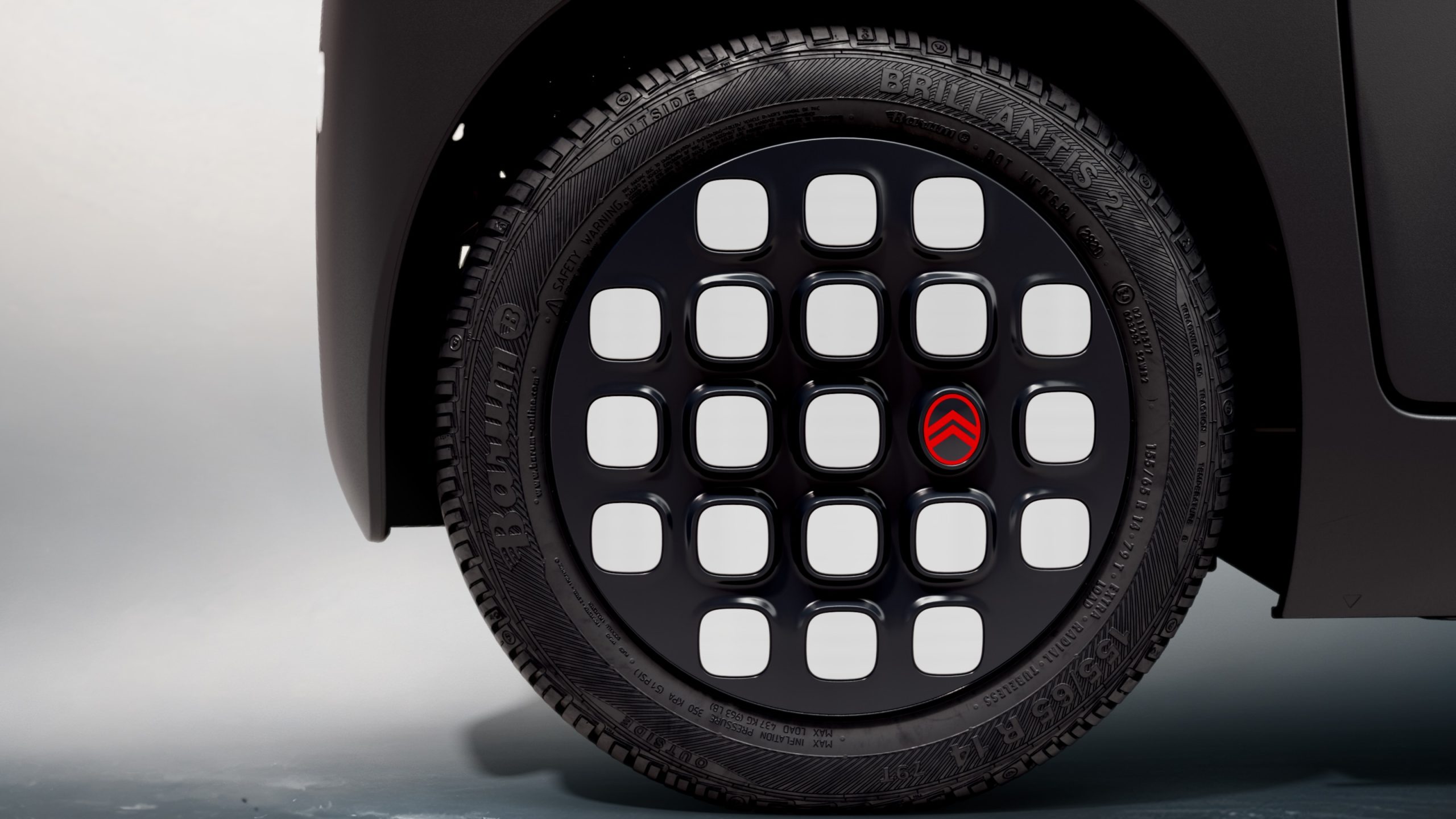The wheels are fitted with Icy Color Pack-inspired white trim rings, and the unique black-and-white cube graphic theme carries over to the rear quarter panels and door sills. These accents give the small two-seater an expressive attitude unlike anything else on European streets.