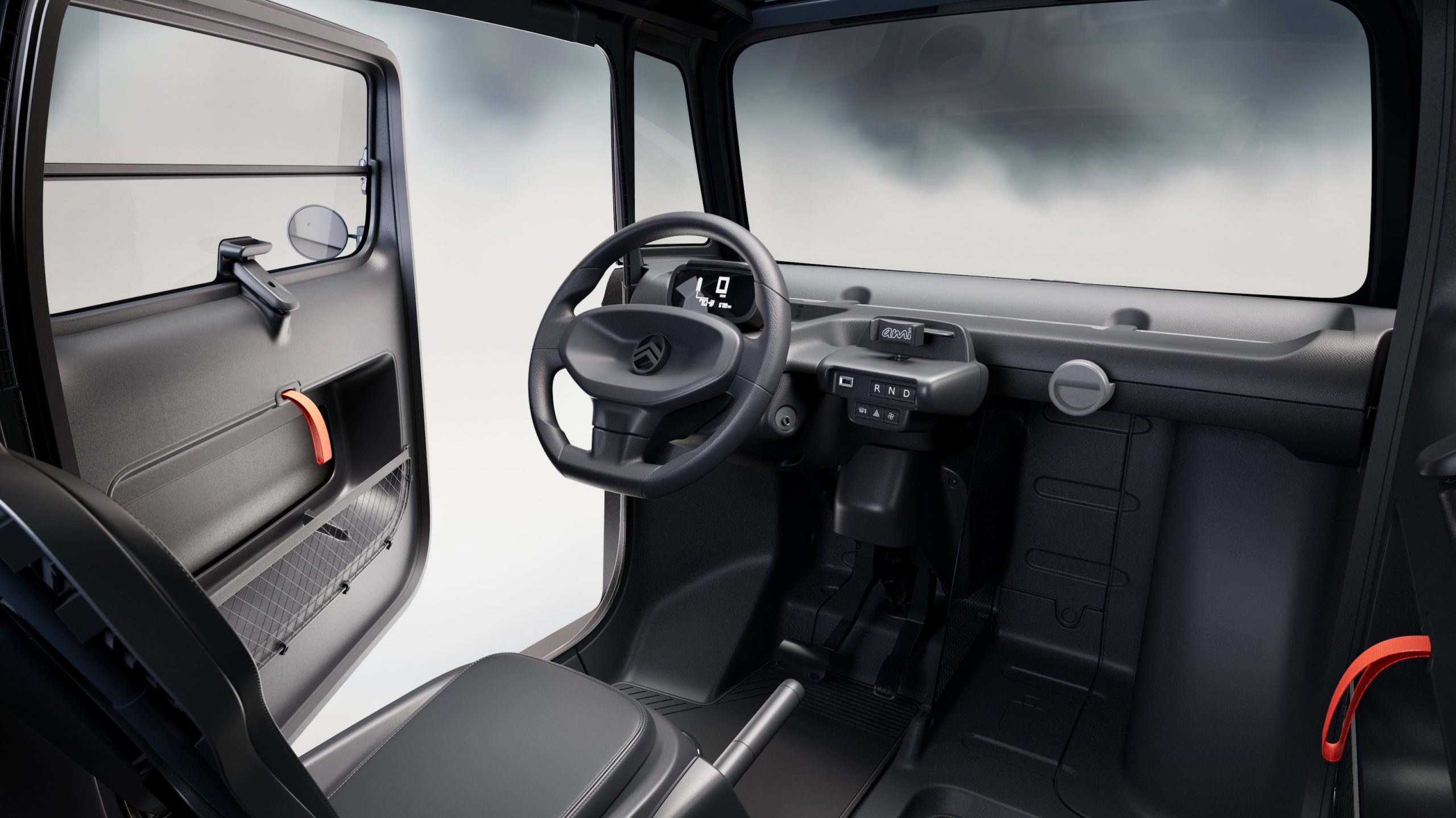 For 2025, Citroën gave the Ami a subtle redesign, sharpening its signature cartoon-like features while keeping its signature symmetry and “smiling” face. The Dark Side Edition builds on that with blacked-out details, a white-outlined front capsule that frames the Citroën logo, and a new rear spoiler that adds a touch of sportiness.