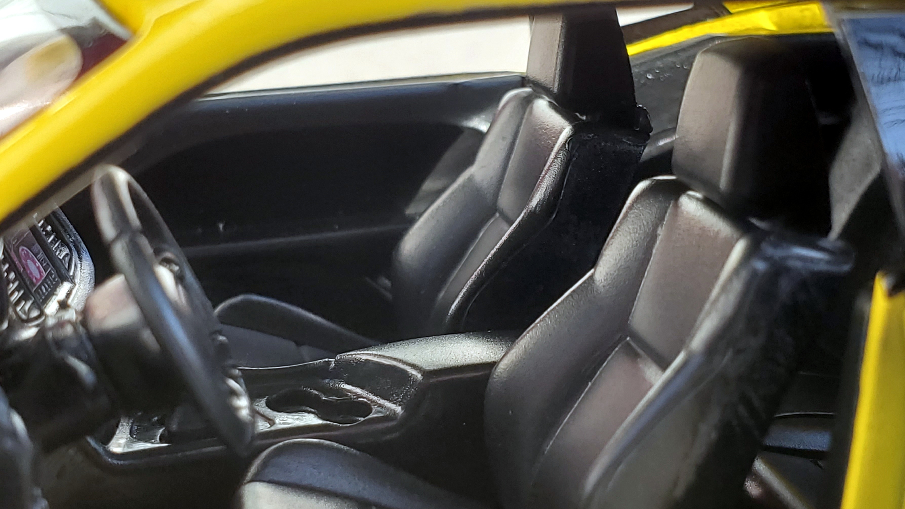 When opening the box, the first thing you notice is this model isn’t as detailed as the ones from companies like Maisto or Jada Toys. But it is a good looking model from certain angles. The opening doors when shut, leave pretty good gaps and makes the model look very cheaply put together. The detail in the hood vents, the wheels and the rear of the car are simply amazing. The paint, however, looks like a four-year-old applied it. Our diecast had black paint that was accidentally painted too far away from the rear side glass on the driver side of the model.