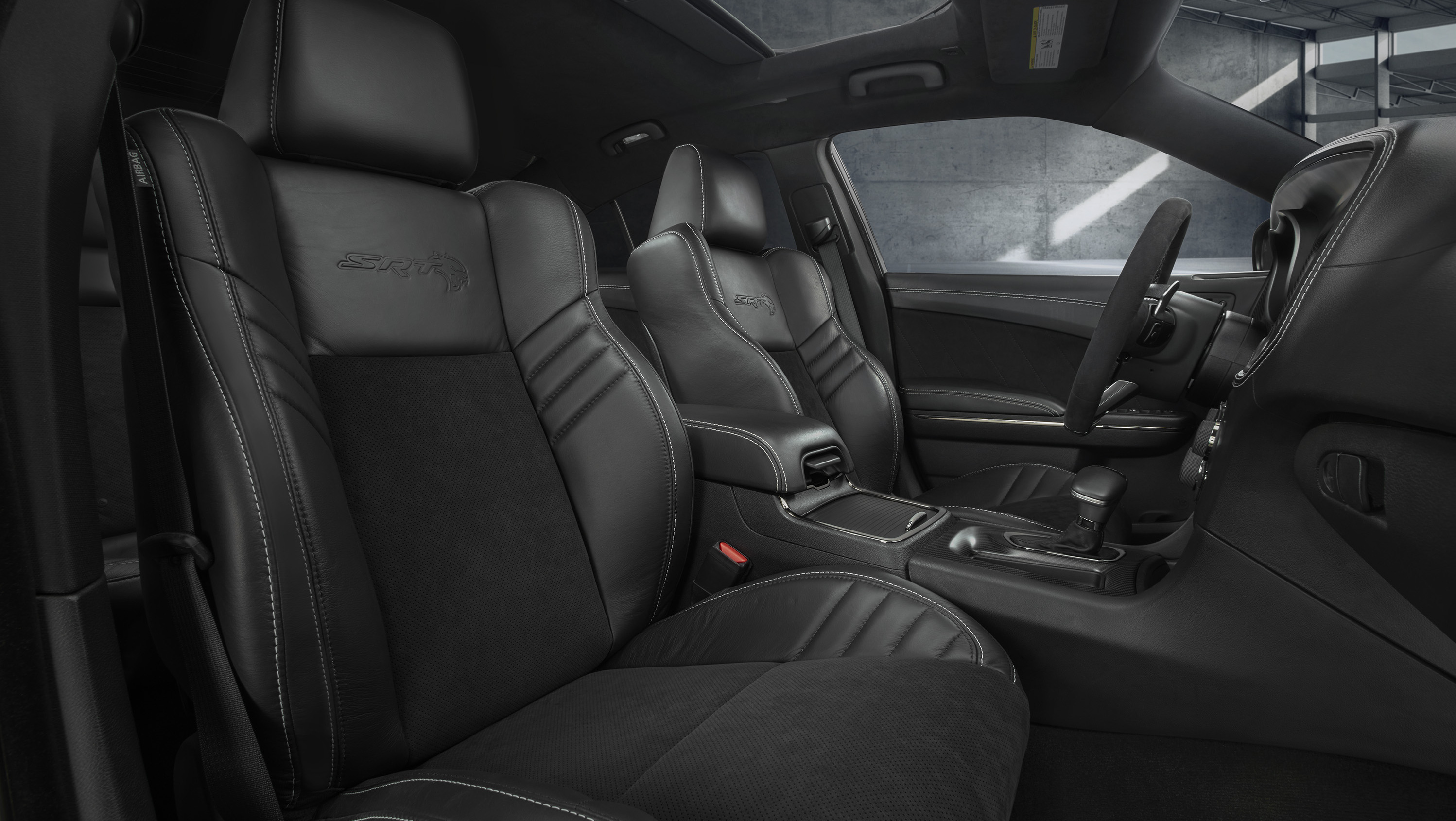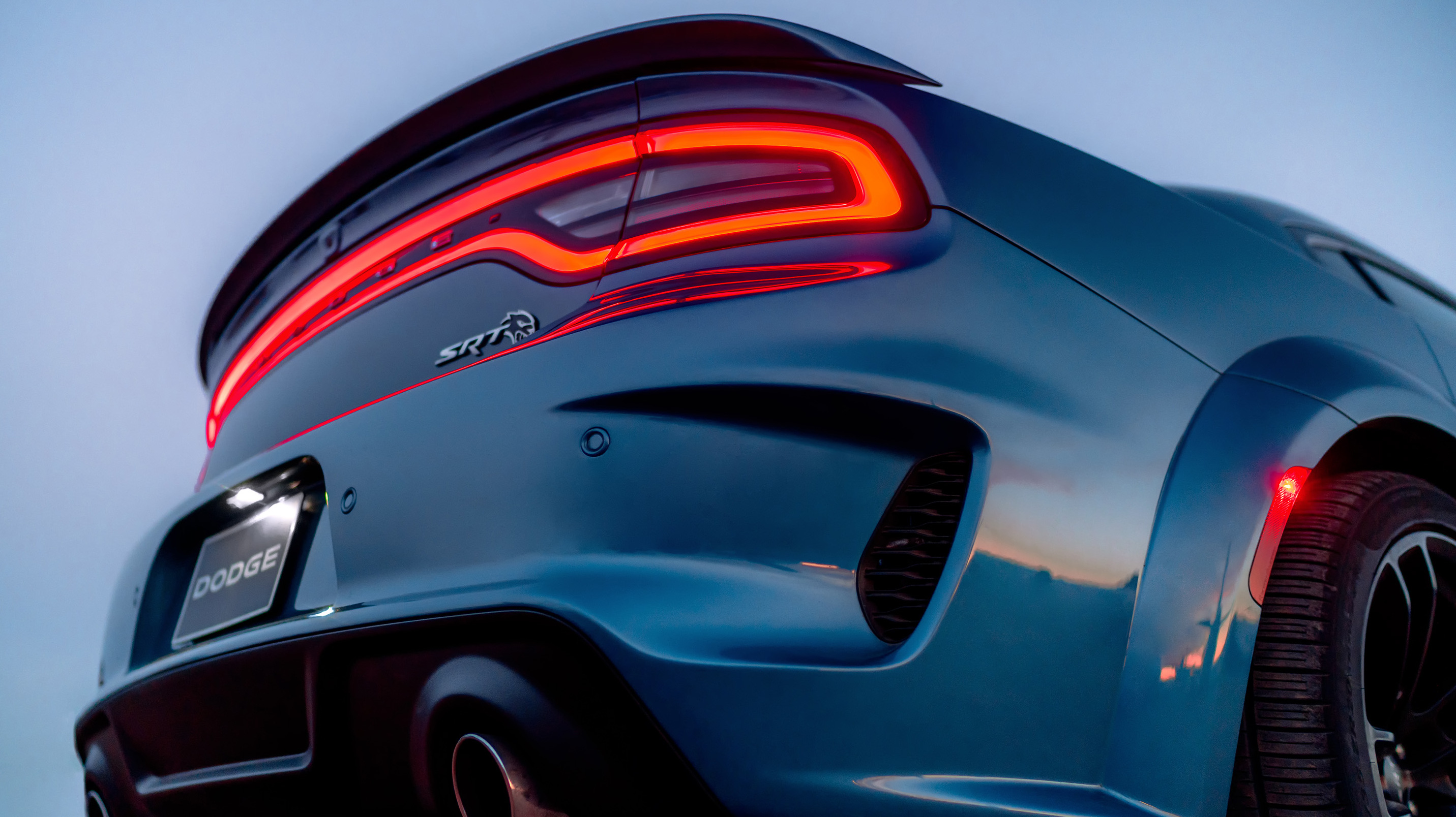 Along with its new menacing stance, the newly designed front fascia of the 2020 Dodge Charger SRT HELLCAT Widebody includes a new “mail-lot grille” design, similar to what we have seen on the Durango SRT. This new grille provides the most direct route for cool air to the radiator. This helps maintain ideal operating temperatures in the hottest conditions. The car also includes a new side-sills that connect the new front and rear fascias, while giving the car a more aggressive profile. A new rear-spoiler, unique to the HELLCAT model, adds more aero-balance. Two-piece Satin Chrome SRT HELLCAT fender badges are also new for 2020, while the interior gets a new HELLCAT I/P badge too.