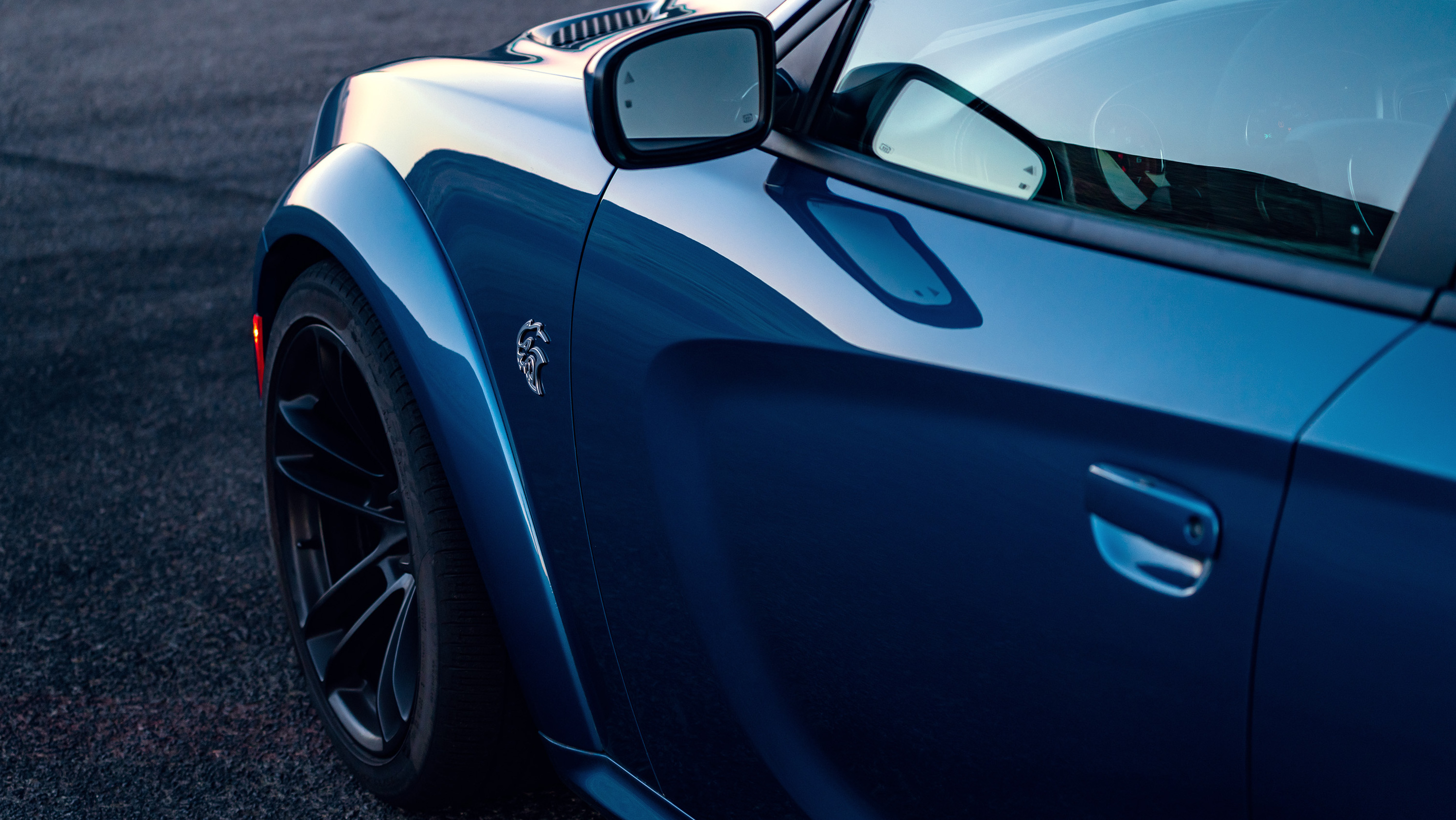 While the Dodge Charger SRT HELLCAT is own for its straight-line speed, the Widebody kit adds improved performance on the drag strip or road course. SRT engineers were able to achieve a 0-60 mph time of just 3.6 seconds and a quarter-mile elapsed time (ET) in 10.96 seconds and pulls of .96 g on the skidpad. The widebody kit also gives the 2020 model a 2.1-second faster lap on the 2.1-mile test track, which equals to about 13 car lengths a lap.