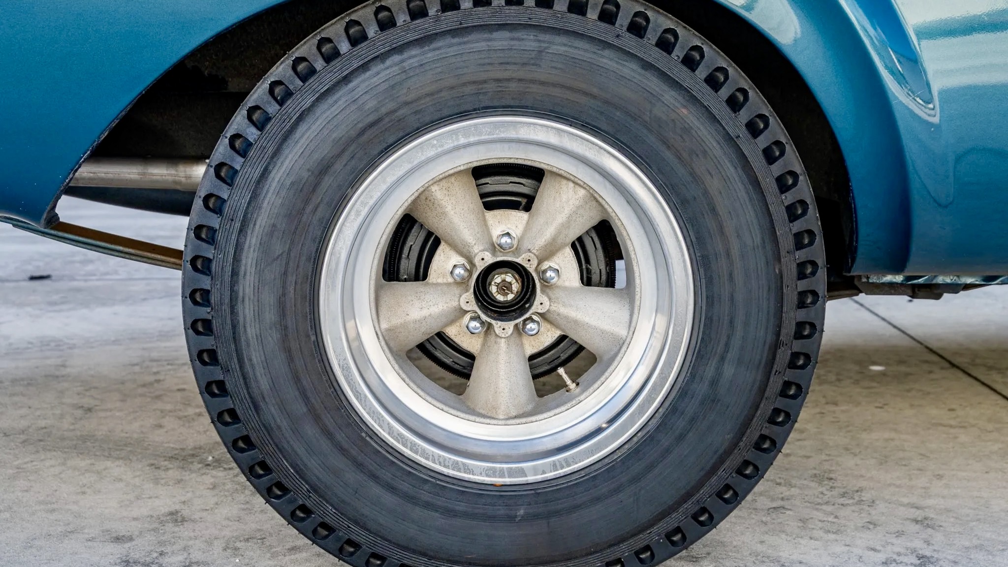 The rolling stock is pure business: staggered-width 15-inch wheels with fresh BFGoodrich Silvertown rubber up front and drag slicks out back. The suspension’s all heavy-duty too, with torsion bars up front and leaf springs out back. Braking is handled by classic 11-inch drums at all four corners.