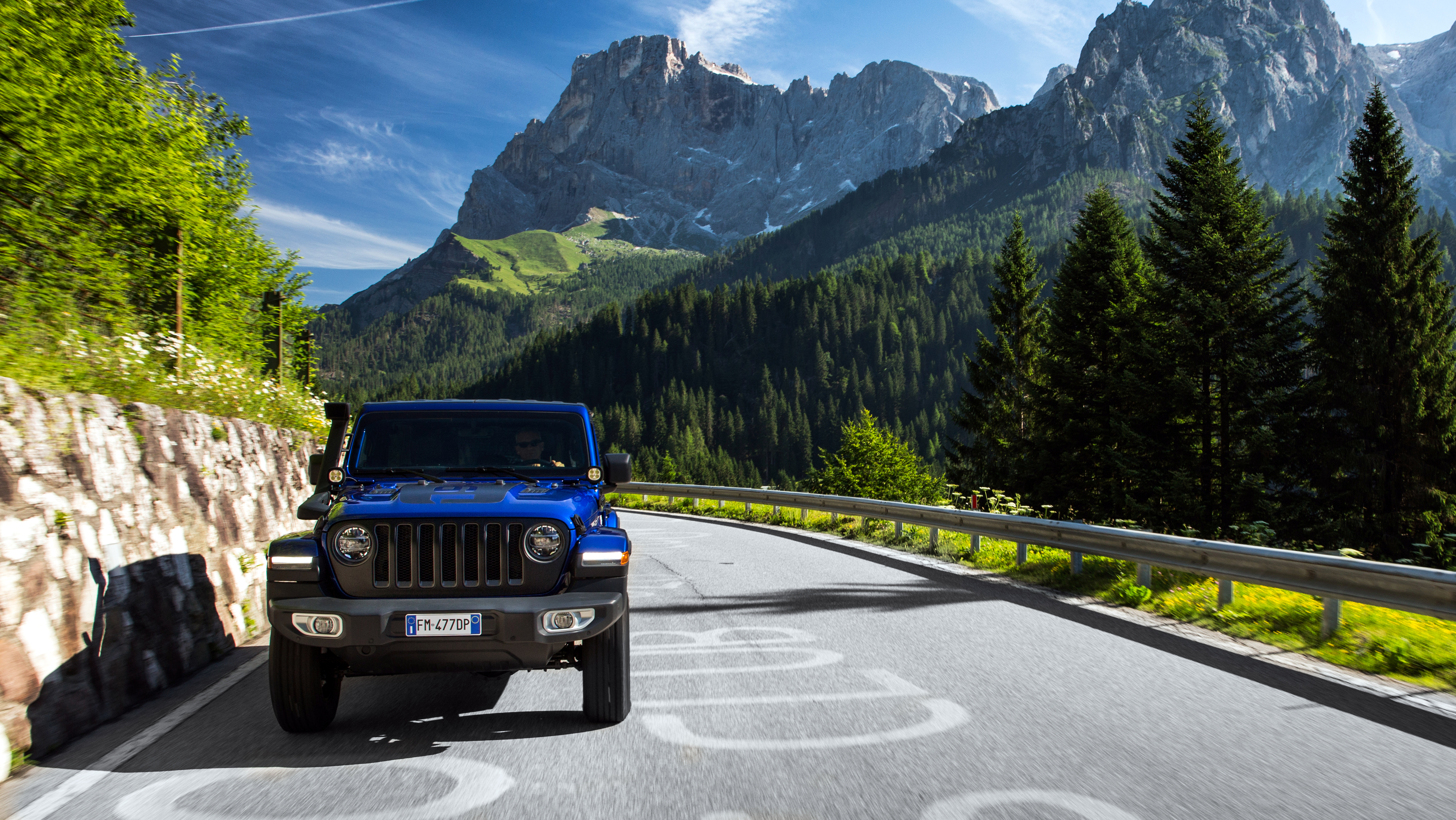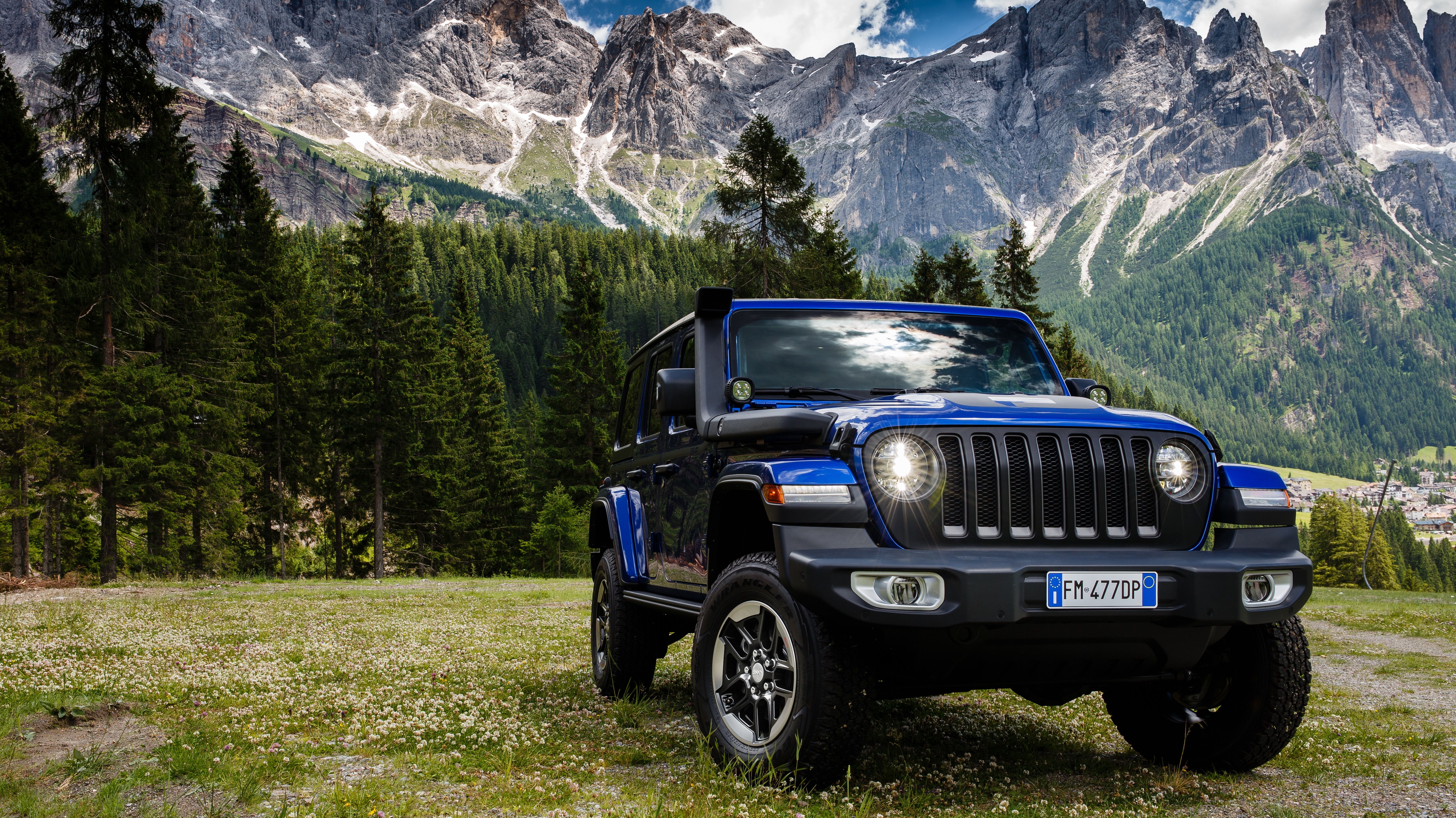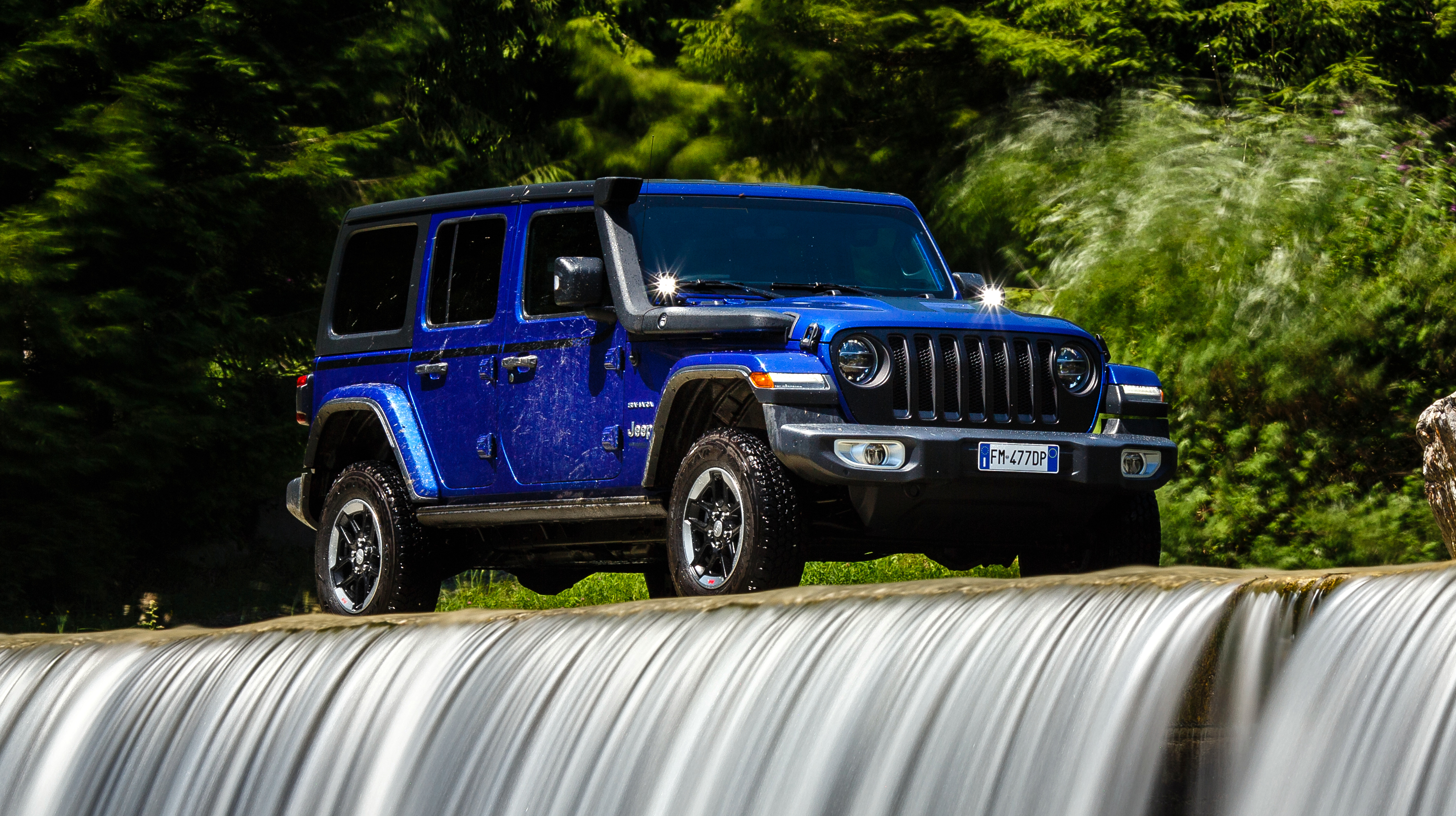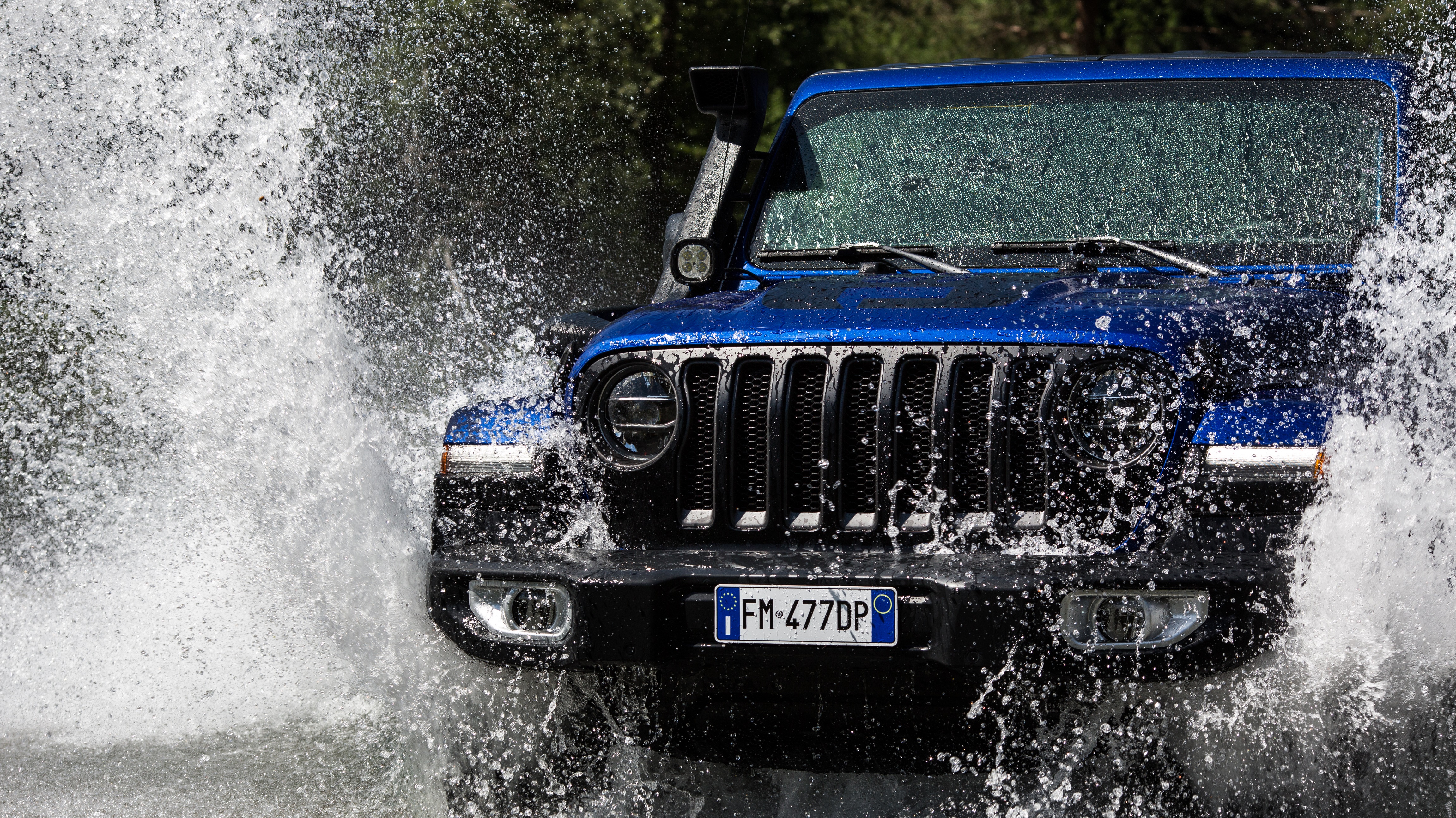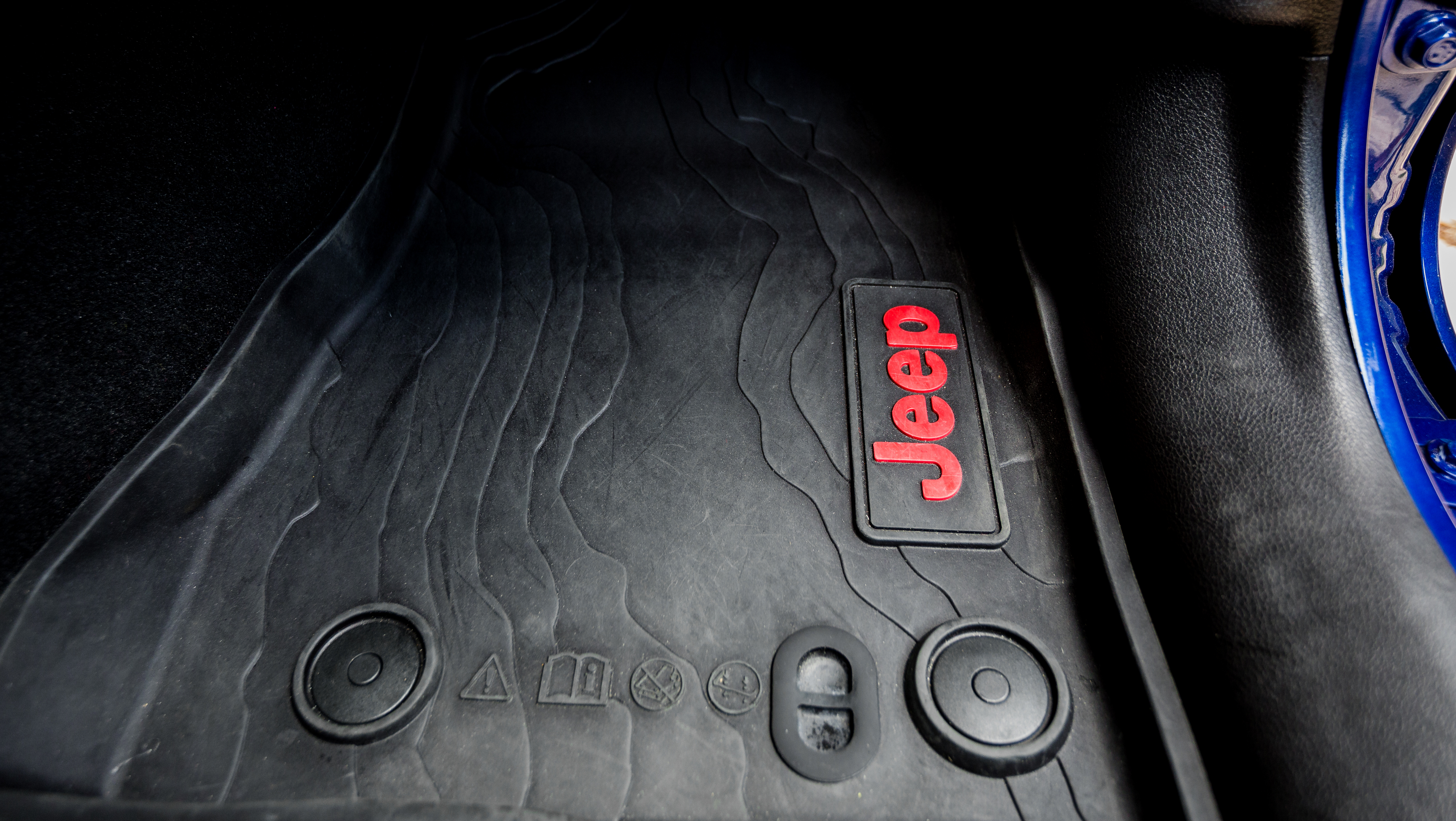 The 1941 heritage is evoked on several different parts of the vehicle such as the wheel, gear knob, and tailgate table. The vehicle is also enhanced with other JPP selected from the Jeep Wrangler parts catalog such as a matte black seven-slot front grille, mudguards, off-road lights, and mirror caps, all contrasting with the Ocean Blue Metallic Clear Coat paint.