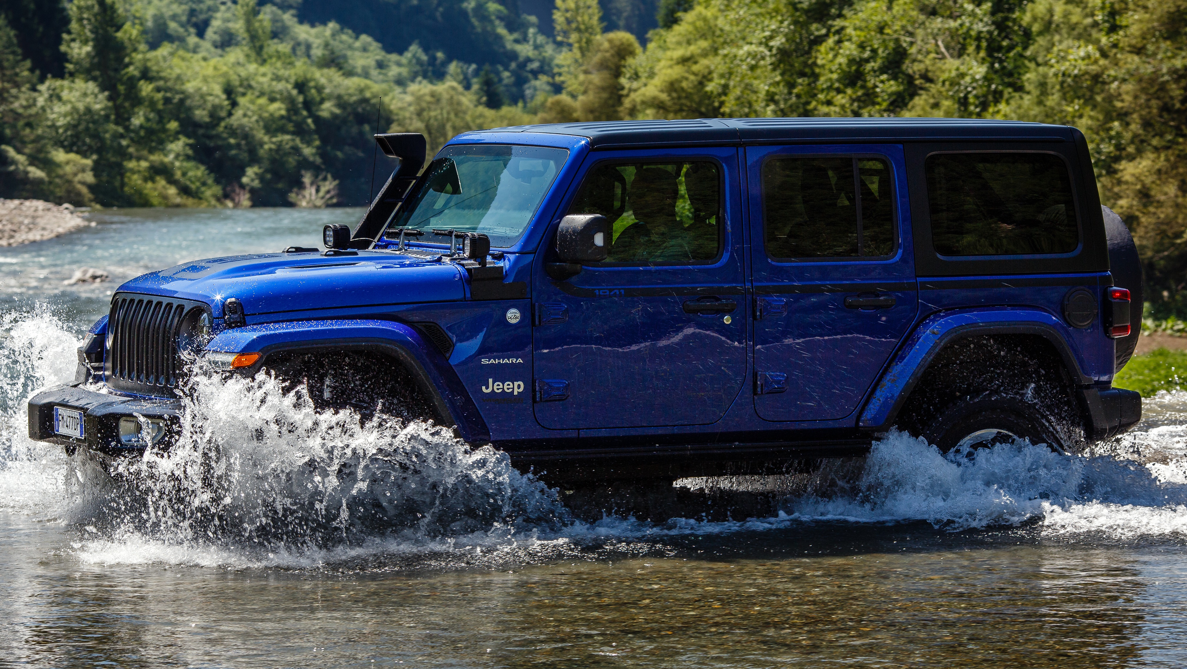 The Wrangler Sahara Unlimited 1941 is fitted with JPP that enhance and build on its legendary off-road capability. For proof, look no further than the 2-inch suspension lift kit, the snorkel, rock rails, black door sill, black fuel filler door, and the all-weather mats. While a new 1941 livery, commemorates an important year for the Jeep brand… the first appearance of the original Willys MB Jeep.