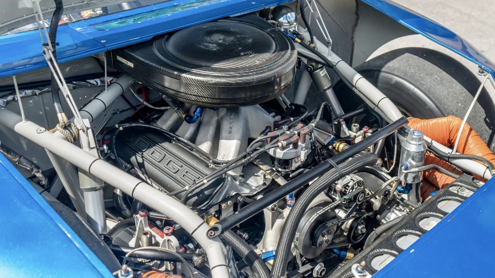 Under the hood sits a 5.9-liter (358 cubic-inch) V8 engine topped with a Holley four-barrel carburetor and backed by an Andrews Products “dog box” four-speed manual transmission. The setup produces that raw, unfiltered NASCAR roar fans expect, delivered through dual side-exit exhaust pipes. Additional race-spec components include a heated dry-sump oiling system, tubular headers, and Dodge-branded valve covers. The car sends power to the rear wheels and retains its period-correct AP Racing disc brakes, ensuring it stops as well as it goes.