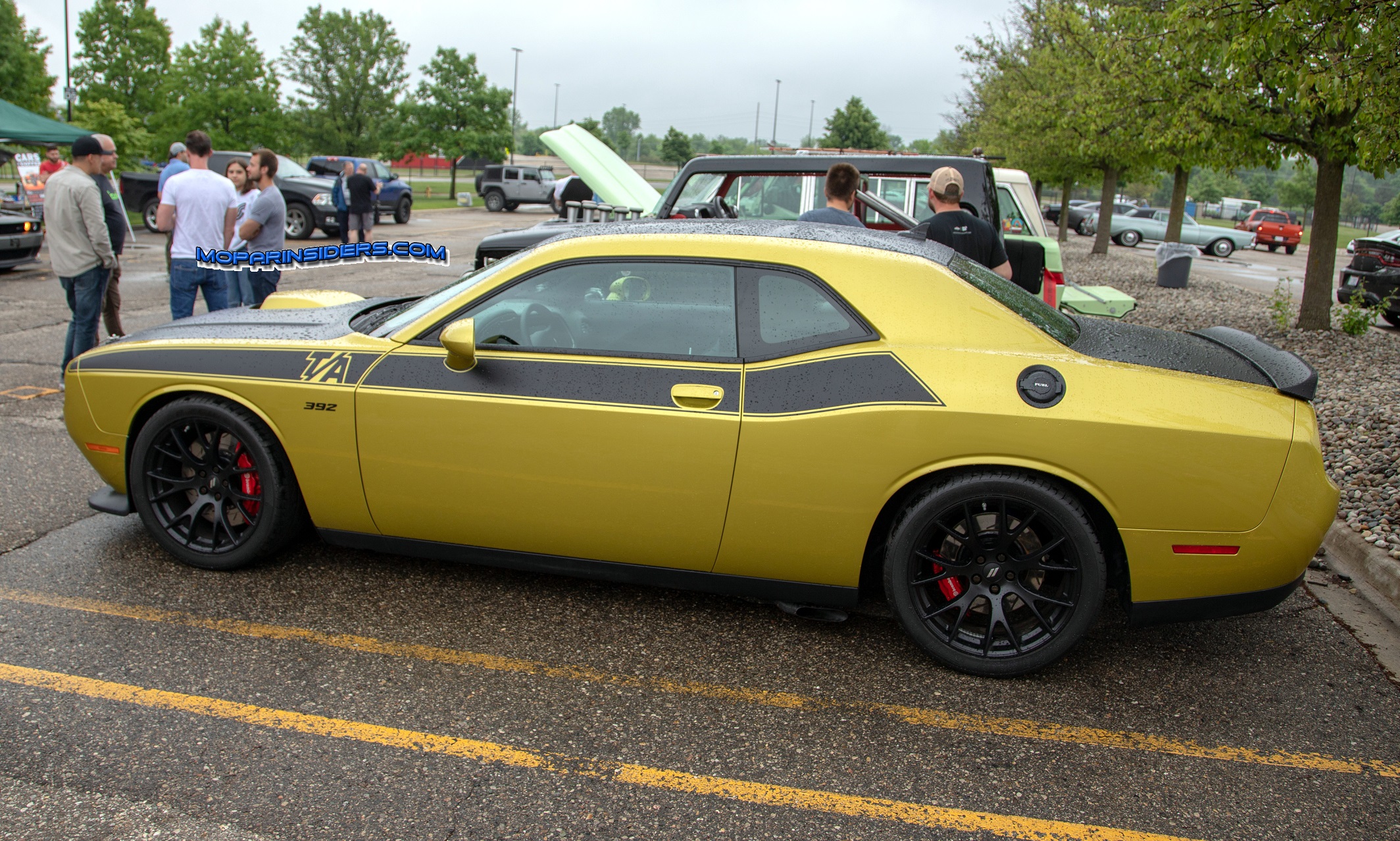 What makes this Challenger T/A 392 so special is the color. Its a FCA Design test color called “Fortuno’s Gold”. The name comes from John Fortuno (who goes by the screen name fatchance), who is the founder of the LX Springfest event. Let us just say the color looks simply amazing in person. When you walk around the car, the metallic flake shifts the color from a deep gold to a metallic mustard-like color. The color has a lot of 70’s flare to it, while looking modern today which makes it really stands out in a crowd. Let’s hope this color makes it into production.
