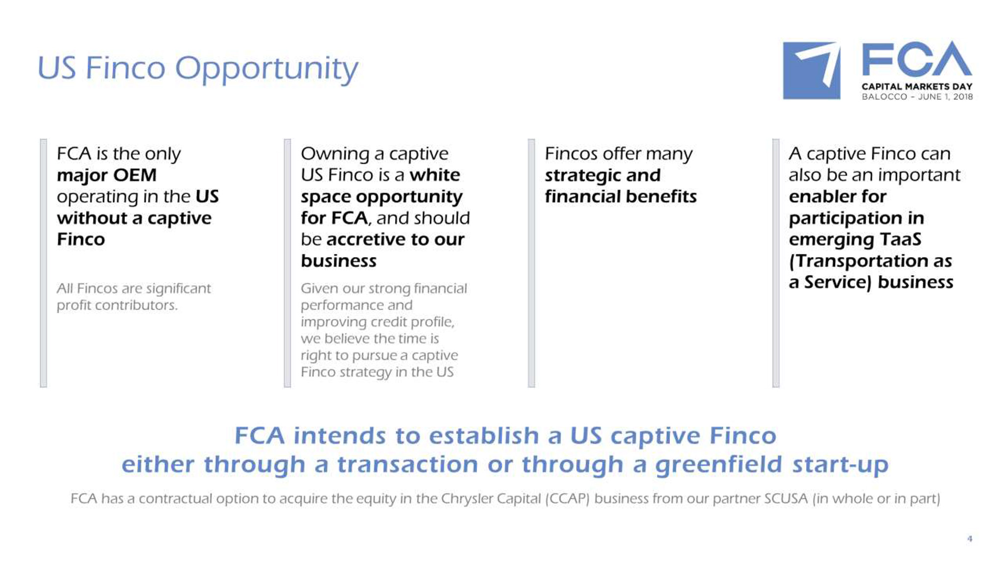 FCA To Pursue Creation Of A Captive Financing Arm: