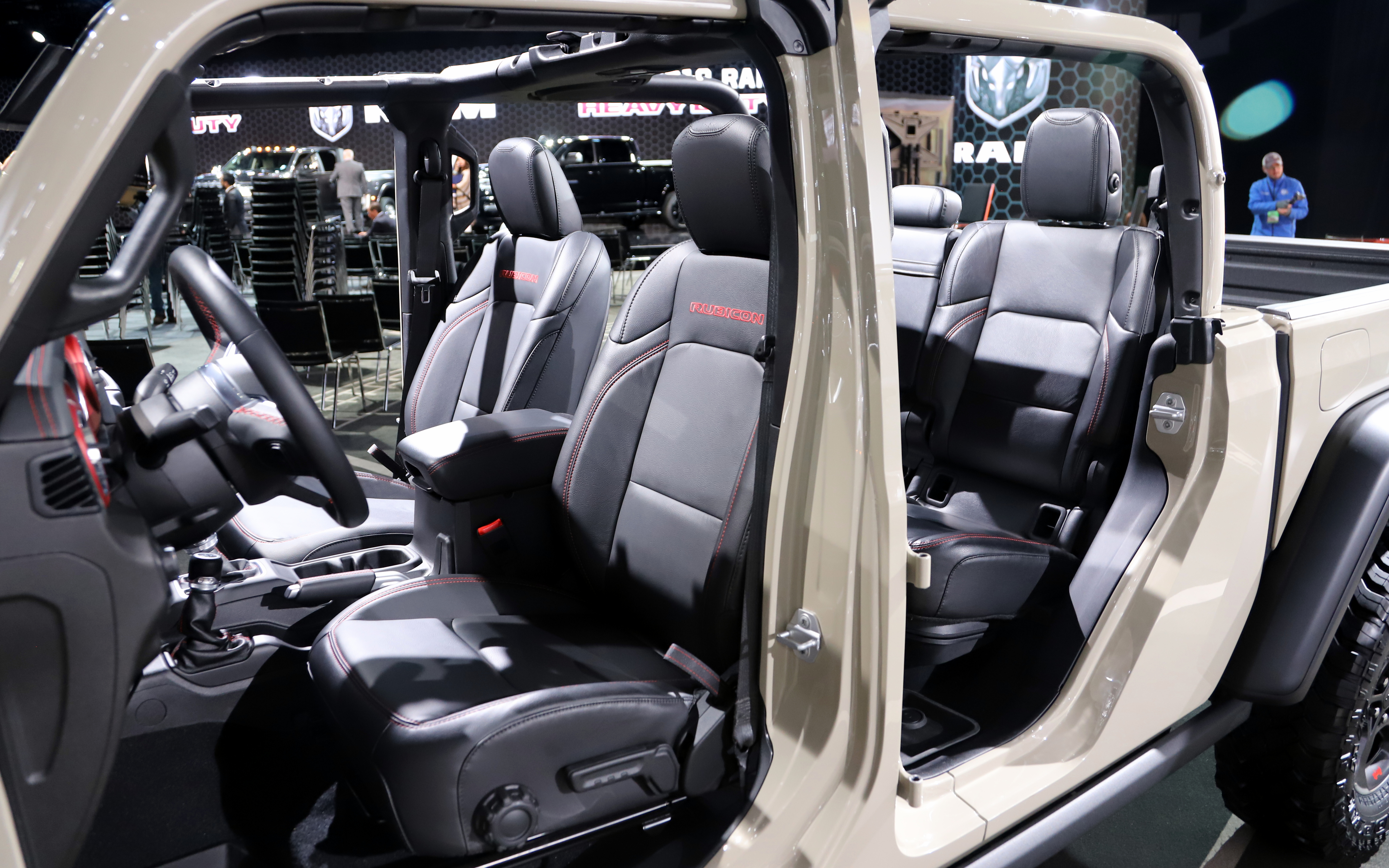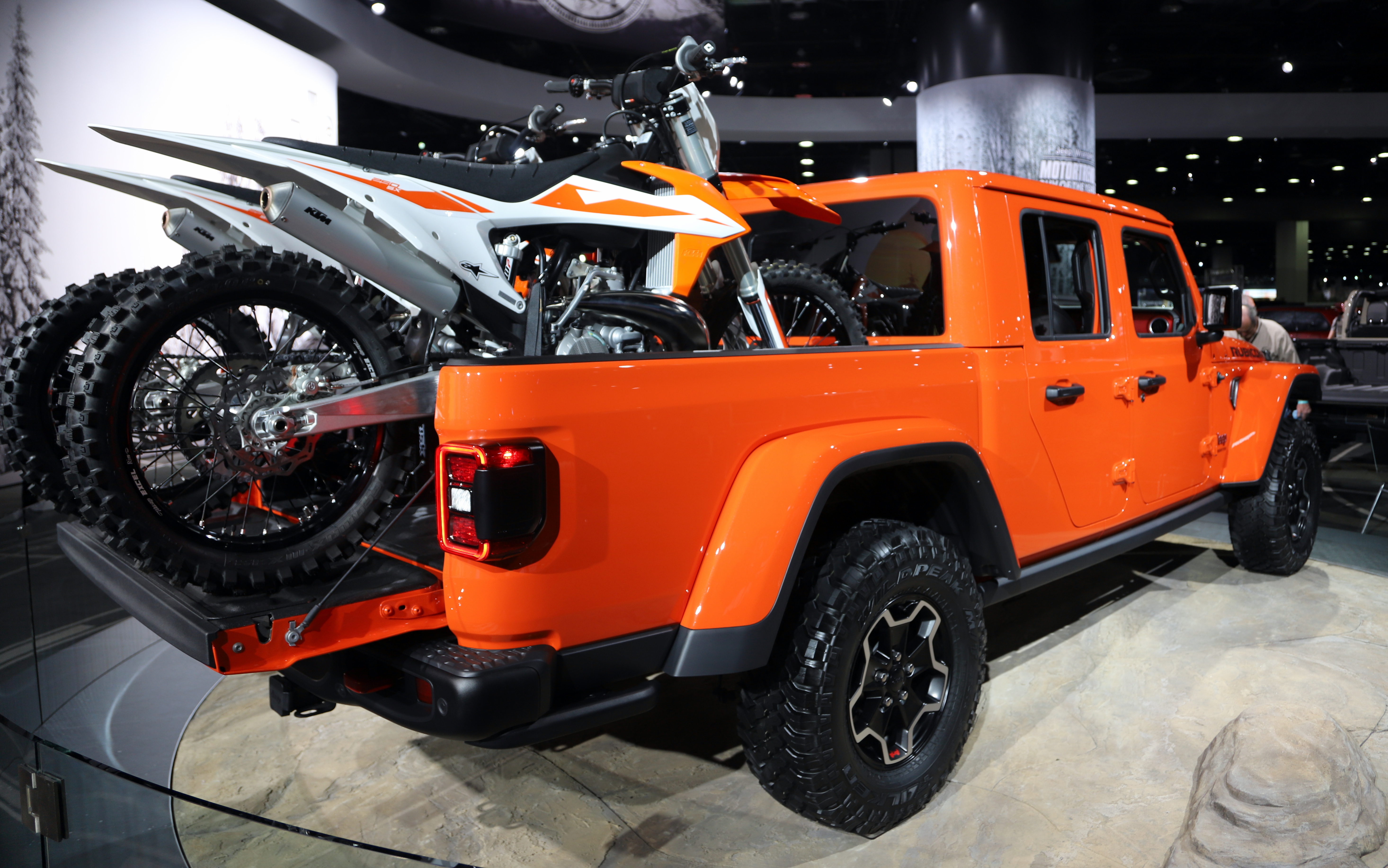 Jeep was the second most prominent part of the FCA exhibit, featuring several 2019 Jeep Wrangler models with Motor Trend SUV of the Year banners around them on the many aisleways in front of the display. Jeep brought out quite a few models for the media to check out, including a trio of 2020 Jeep Gladiator pickups. The Gladiator Rubicon at the center of the exhibit was the same truck featured at the L.A. Auto Show with a pair of KTM motocross bikes in the bed. A Gobi colored Gladiator Rubicon with its windshield down, doors off and top off was there for the media get their hands on, while a Jeep Gladiator Overland sat next to it.