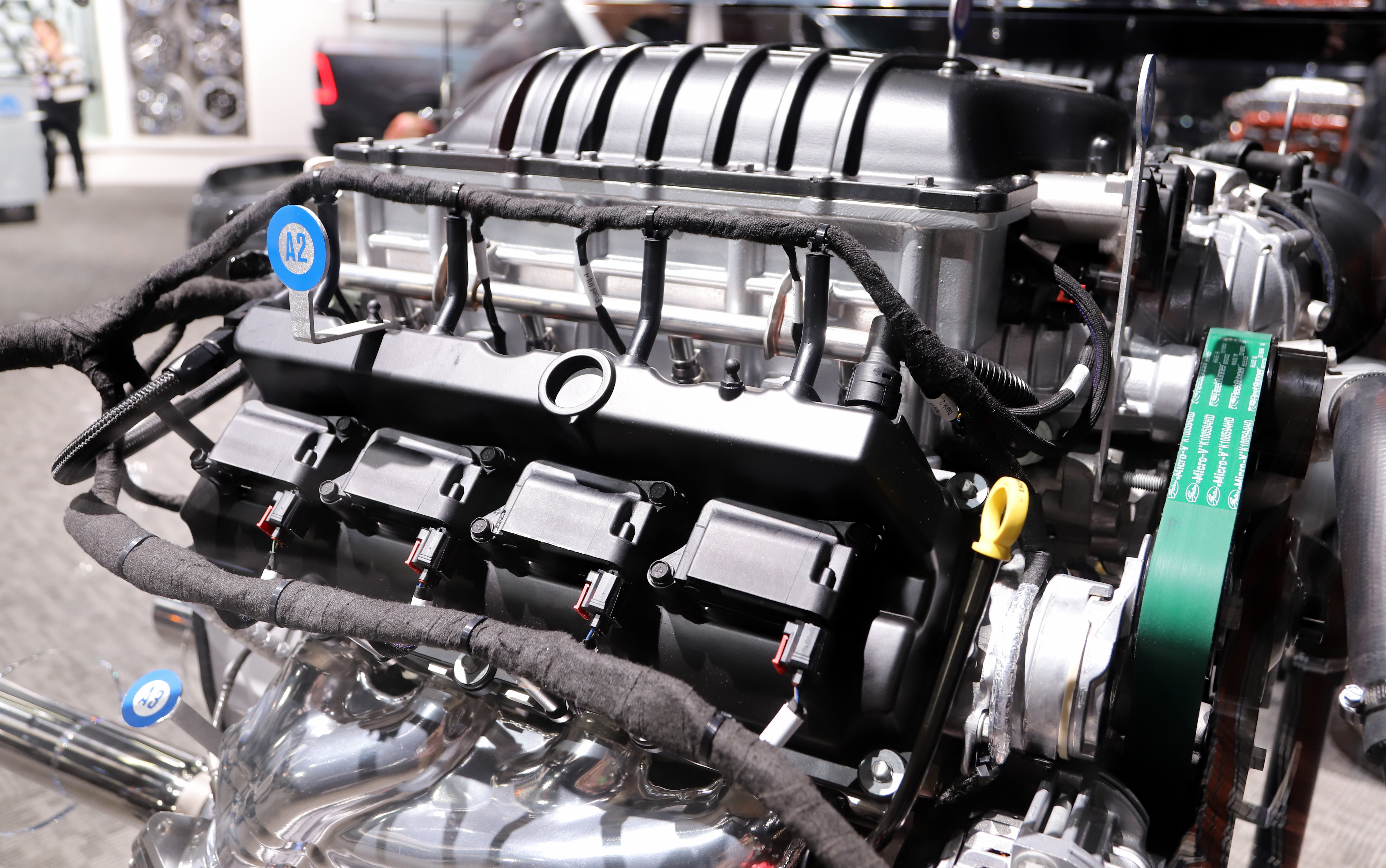 To the left of the Ram display, in the back corner was the Mopar section of the exhibit. Mopar brought three concepts to NAIAS. The 1968 Dodge Super Charger Concept from SEMA, sat in the middle of the Moparized 2020 Jeep Gladiator Concept and the Moparized 2019 Ram 1500 Rebel also from this past year’s SEMA show. A wall of Mopar performance parts highlighted the section of the exhibit, while a pair of Mopar crate motors (the new 426 cubic-inch Hellephant and 6.2-liter HELLcrate supercharged V8s) completed the Mopar section.