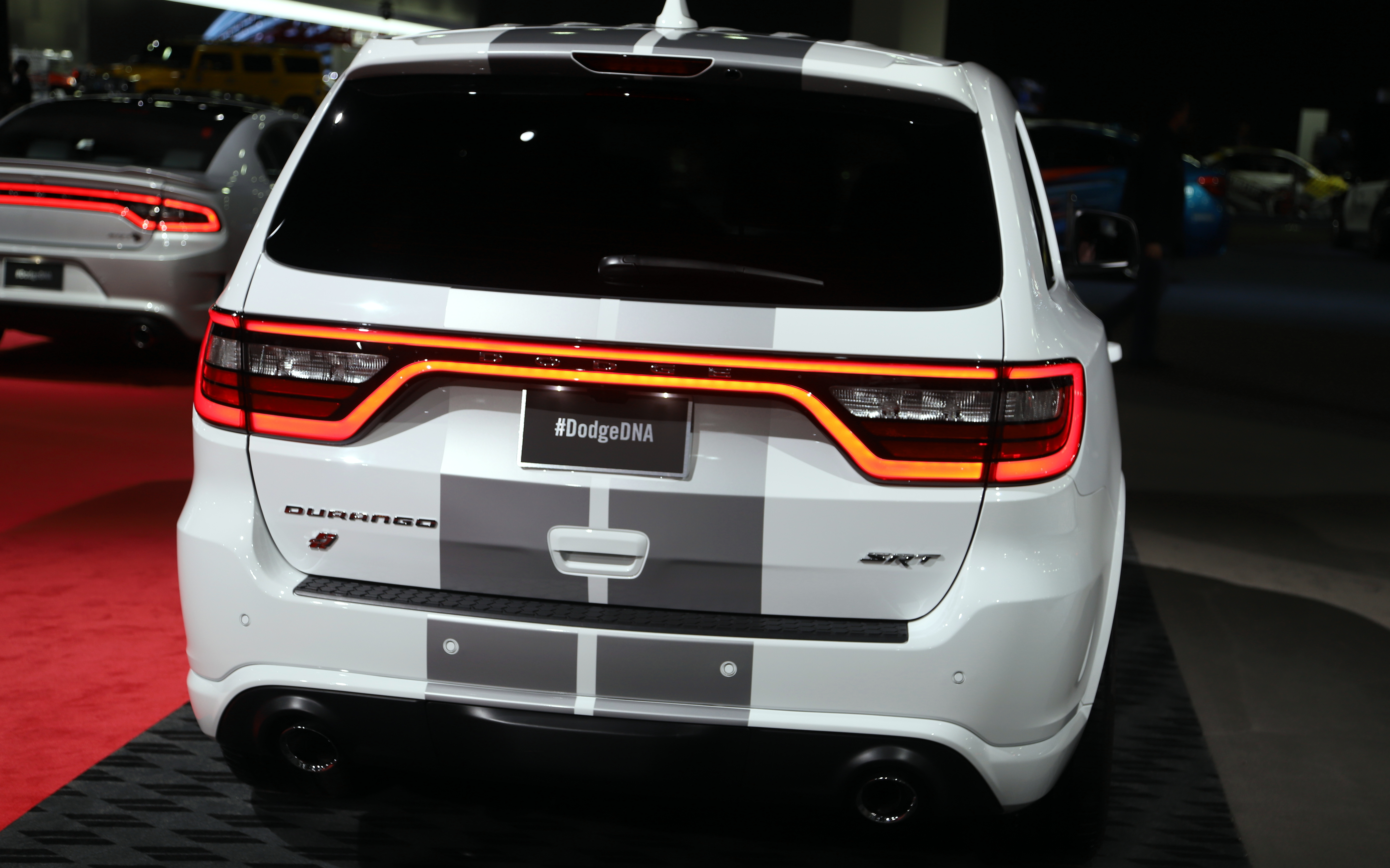 Just in front of the Mopar section was the Dodge and SRT performance brand section. Dodge put the new 2019 Dodge Challenger SRT HELLCAT Redeye right out in the main aisle way. Painted in the new Triple-Nickel paint, it was getting high praise from people walking through the exhibit. Sitting right next to it was a Triple-Nickel 2019 Dodge Charger SRT HELLCAT with a set of the new Brass Monkey wheels for 2019.  A new 2019 Dodge Durango SRT in White Knuckle with the all-new stripe package sat close by.