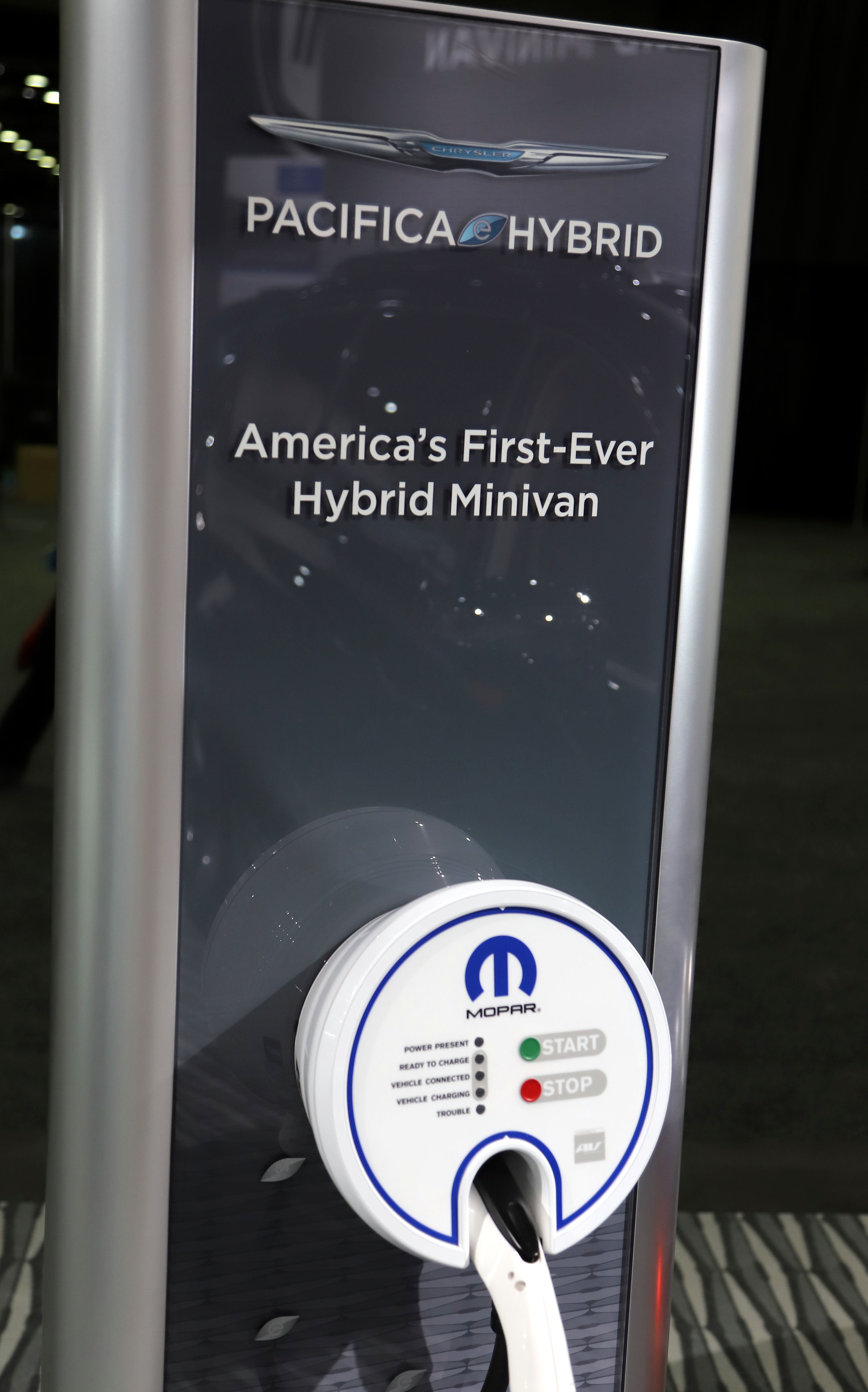 Next to the Dodge exhibit sat the Chrysler part of the display. Chrysler brought four new 2019 Chrysler Pacifica models to the show. One of the Pacificas, a Pacifica S model was on a center turntable showcasing its all blacked-out sporty looks. A 2019 Chrysler Pacifica Hybrid showcasing a Mopar charging station for the home was also on display. Chrysler continued to showcase their partnership with BraunAbility with a BraunAbility Chrysler Pacifica which is easily the best looking handicap accessible vehicle on the market. And a Pacifica Limited also sat on the floor.