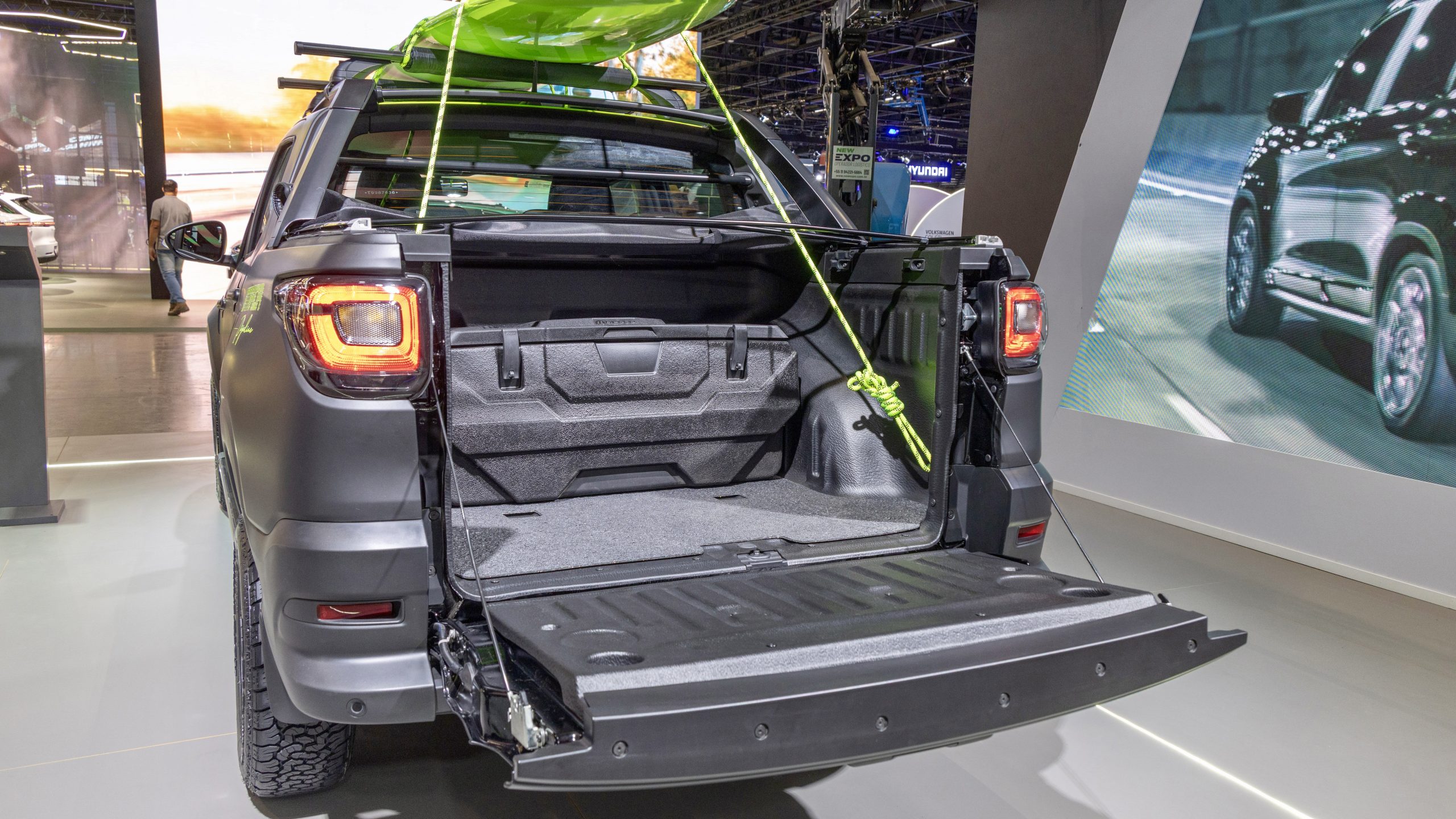 One of the most talked-about models on the floor was the Fiat Strada Pipeline, a surf-inspired take on Brazil’s best-selling compact pickup. Based on the Strada Ultra trim, Pipeline swaps its standard look for a matte gray exterior paired with neon green accents meant to reference the Fiat flag and reinforce its beach-themed personality. Darkened wheels and aggressive XBRI 205/70R15 Brutus T/A tires finish off the exterior, giving the truck a rugged yet fun look.
