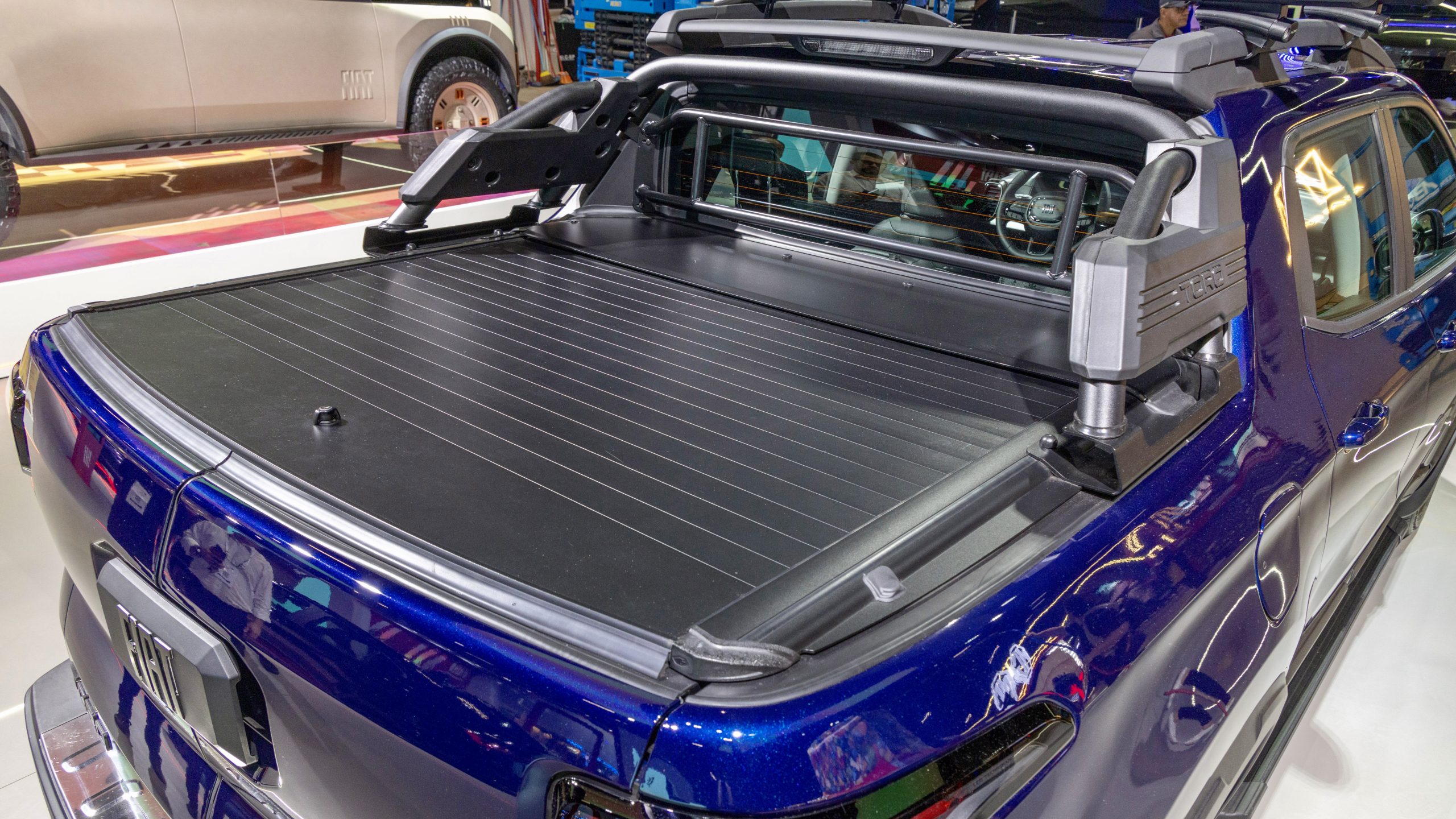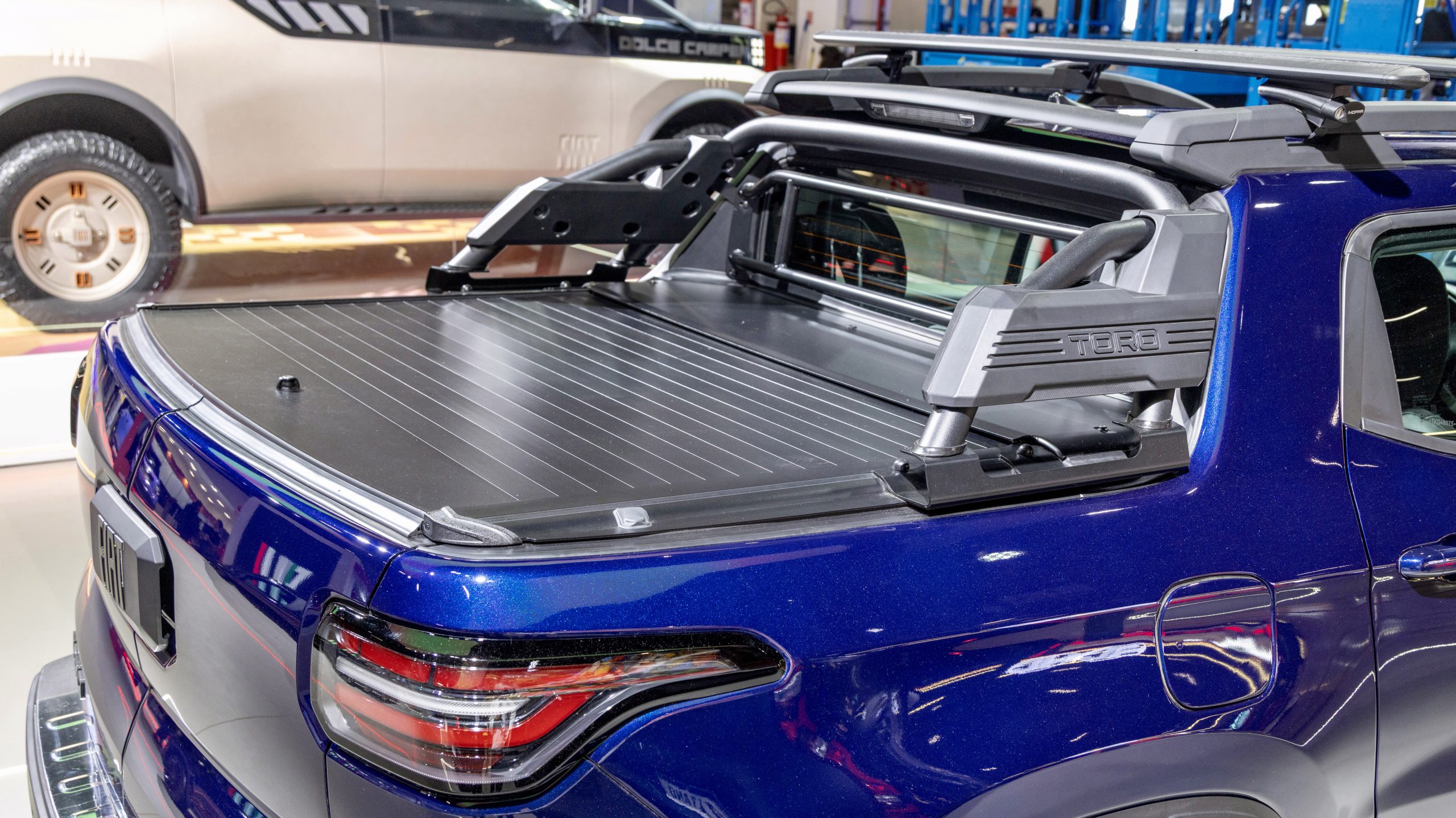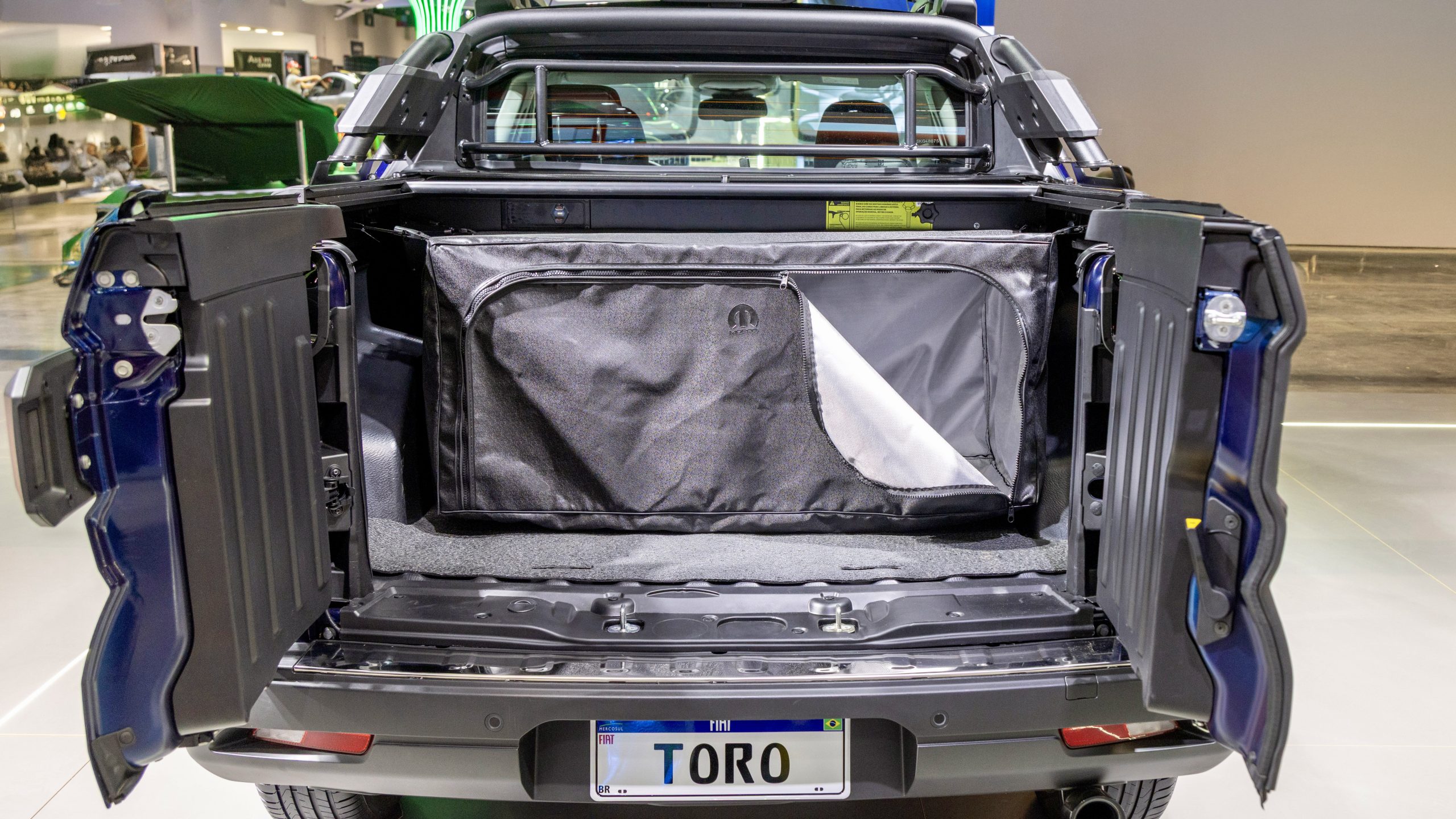 The third member of the trio—the Fiat Toro City Volcano Azul (Blue) Jazz—leaned into a much more urban, tech-forward theme. Mopar used the Toro as a canvas to show how smart storage, convenience features, and subtle styling upgrades can elevate a compact pickup for city life. An electric tonneau cover works with an upgraded bed mat and storage bag to create a pseudo “smart bed” system, making the Toro more versatile for daily routines.