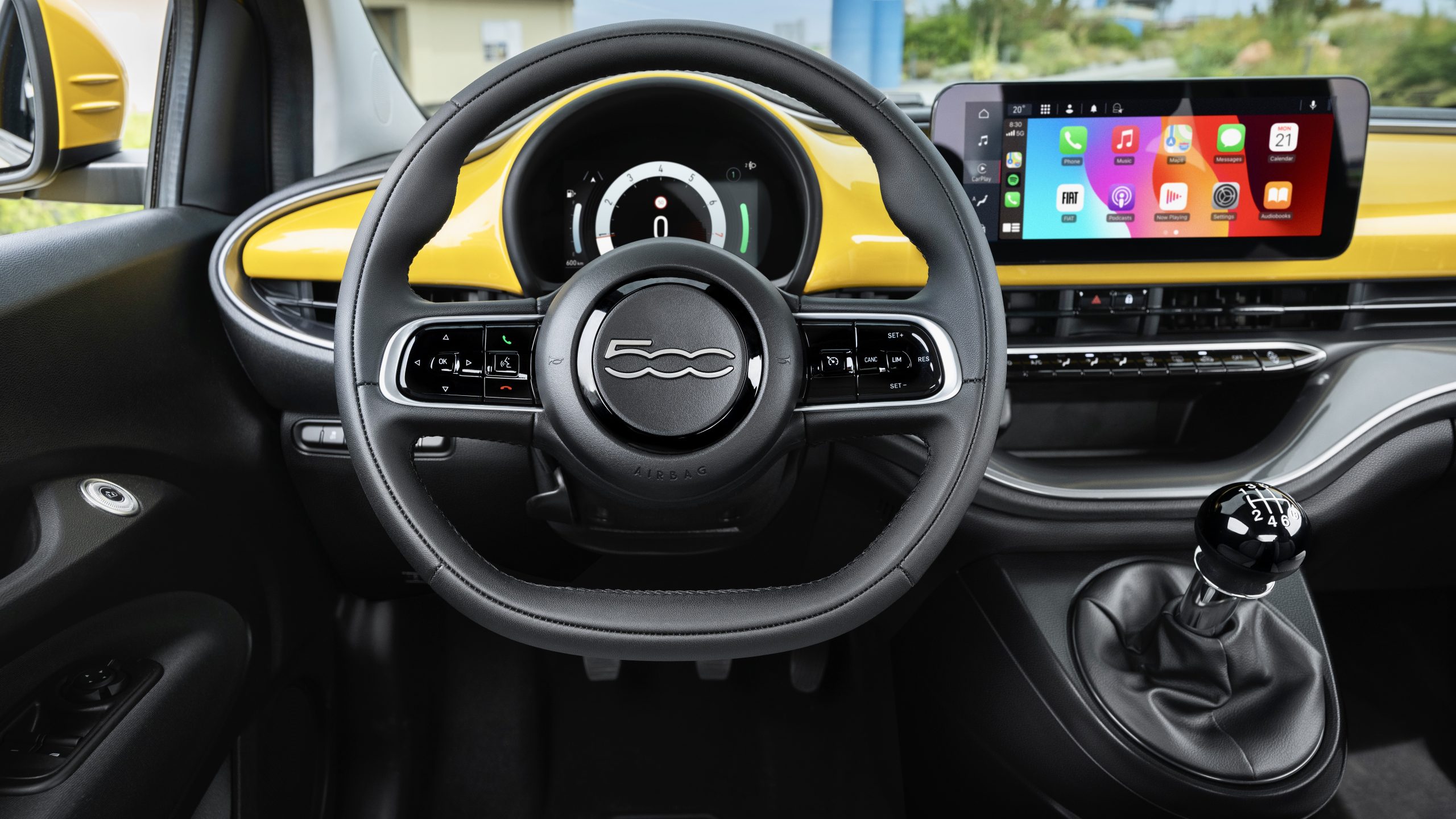 The POP trim is the most basic in the best possible way—simple, charming, and clutter-free. It’s perfect for buyers who want a true city car without unnecessary extras. ICON builds on that idea with more technology, upgraded materials, and a more premium feel, turning the car into a connected, comfortable daily driver that still fits anywhere. At the top is LA PRIMA, the most upscale version Fiat offers, loaded with stylish finishes and exclusive features that elevate the 500 Hybrid into something genuinely classy.