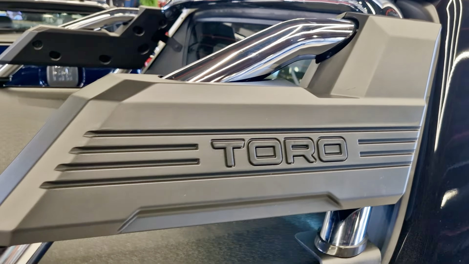 The 2026 Toro sports a sharper, more aggressive design while keeping its familiar footprint. The front grille now features vertical slats inspired by Maserati styling, paired with new dotted LED daytime running lights (DRLs) and reshaped fog lights. A more prominent skid plate on the front bumper adds to the truck’s rugged character.