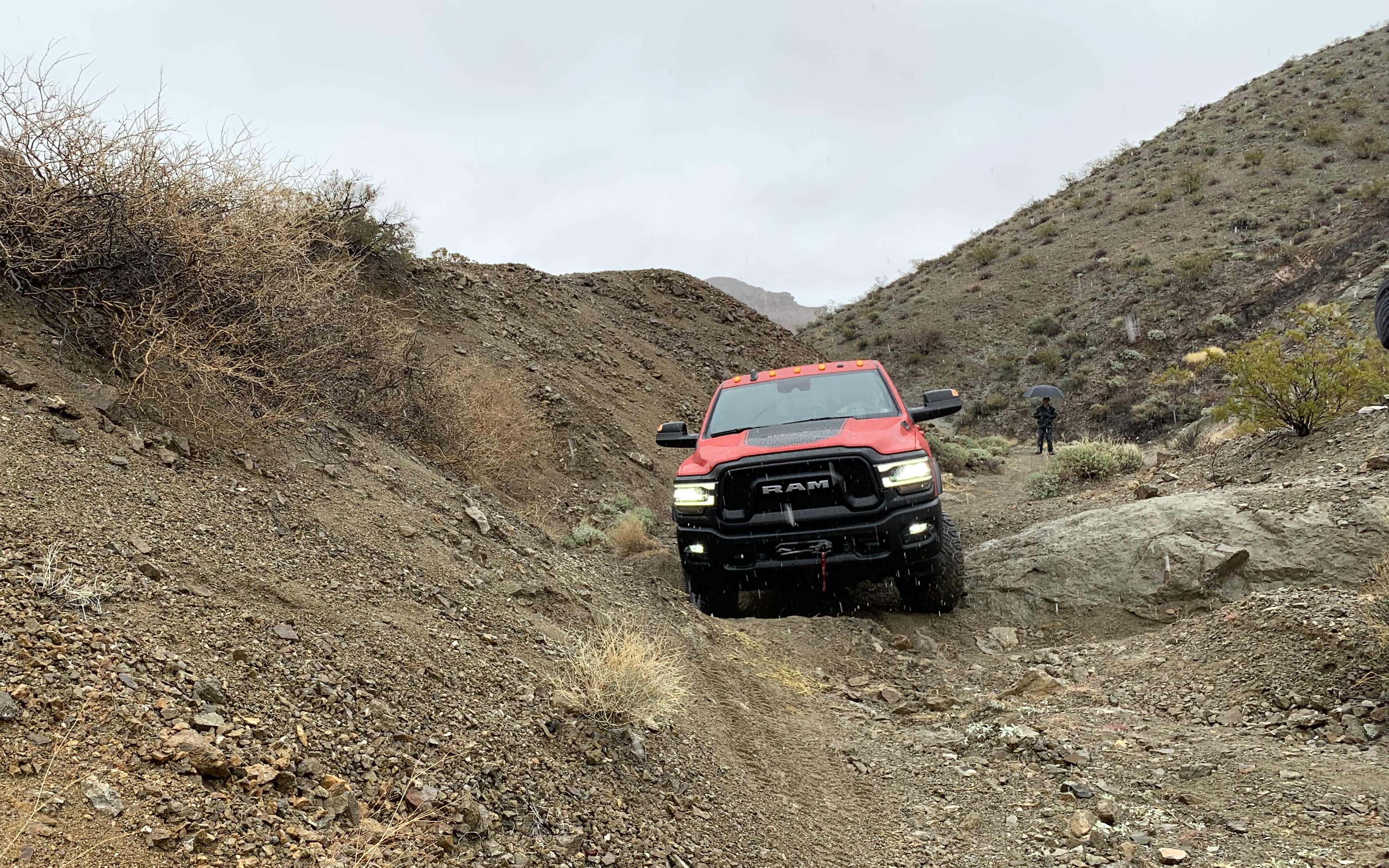 With its new 8-speed automatic, the new 2019 2500 Power Wagon models can now run around in the sand at 50mph in 4-Lo. There is nothing quite like sliding around in the sandy and muddy areas between obstacles at speed in this truck. The tall gearing makes off-roading easy, and there was no obstacle on our course that the truck would not handle.