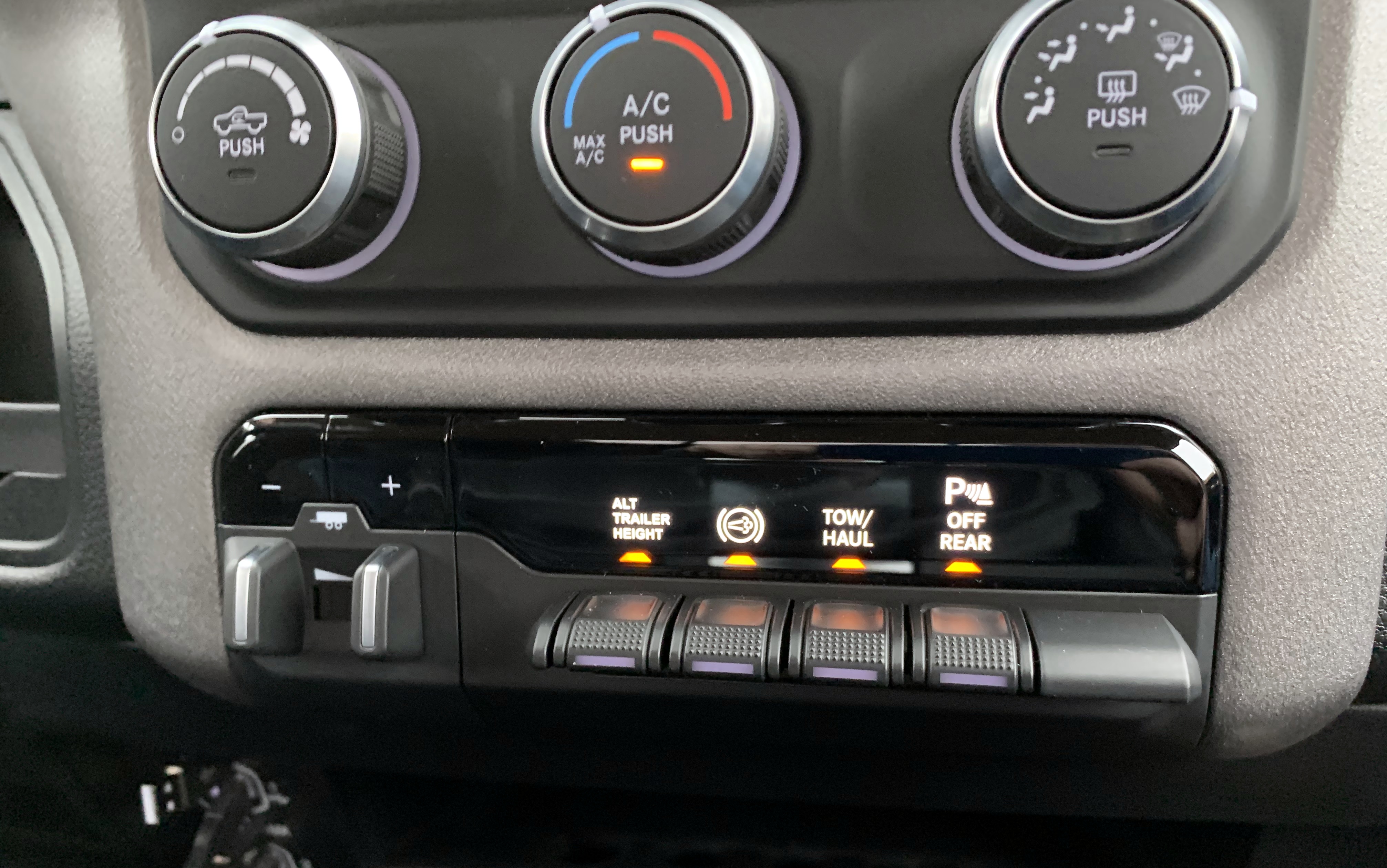 The Tradesman’s cloth seats are soft and yet made from exclusive work grade cloth. The truck also featured the 5.0-inch Uconnect touchscreen radio. While the Uconnect is sometimes hard to read compared to its giant 8.4-inch and 12.1-inch offerings in higher trim models, the system is responsive and offers big knobs that are great for when you are wearing thick work gloves. While climate control knobs look basic, they also feature a nice feel and are big enough to work with gloves on. The towing mirrors worked great, giving me enough reach to see completely around the trailer.
