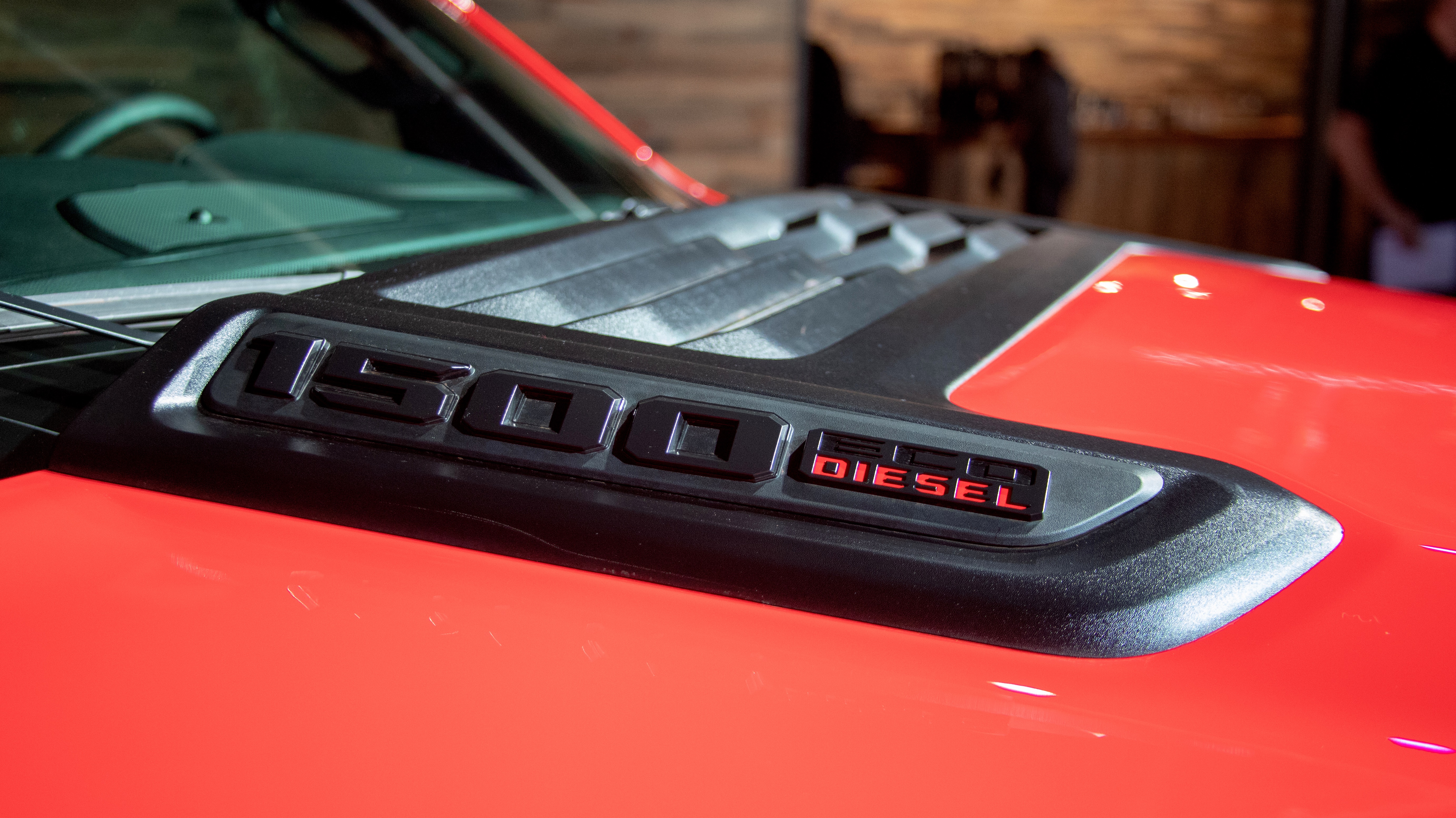 You will be hard-pressed to tell the difference of the exteriors of the HEMI-powered models versus the EcoDiesel-powered models. On Limited models, the only real difference visually is the badge on the hood that offers the EcoDiesel name under the “1500” designation script.