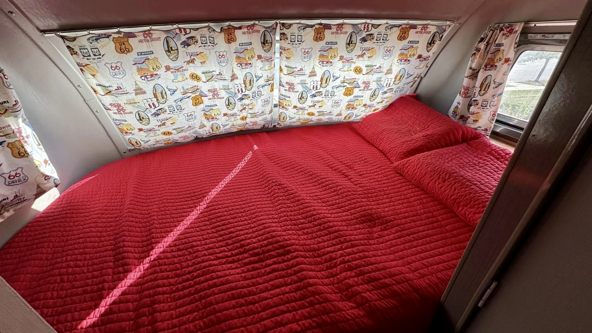 This particular 1966 Travco was parked for around twenty years before being rescued in 2006 by the seller’s late father-in-law. A comprehensive refurbishment was carried out over several years and completed in 2016. Martin Custom Autobody of Waltonville, Illinois, repainted the body in an eye-catching two-tone of red and white, while the interior received a total refresh. The result is a period-perfect motorhome that looks as good as it did when it first rolled out of Brown City, Michigan.