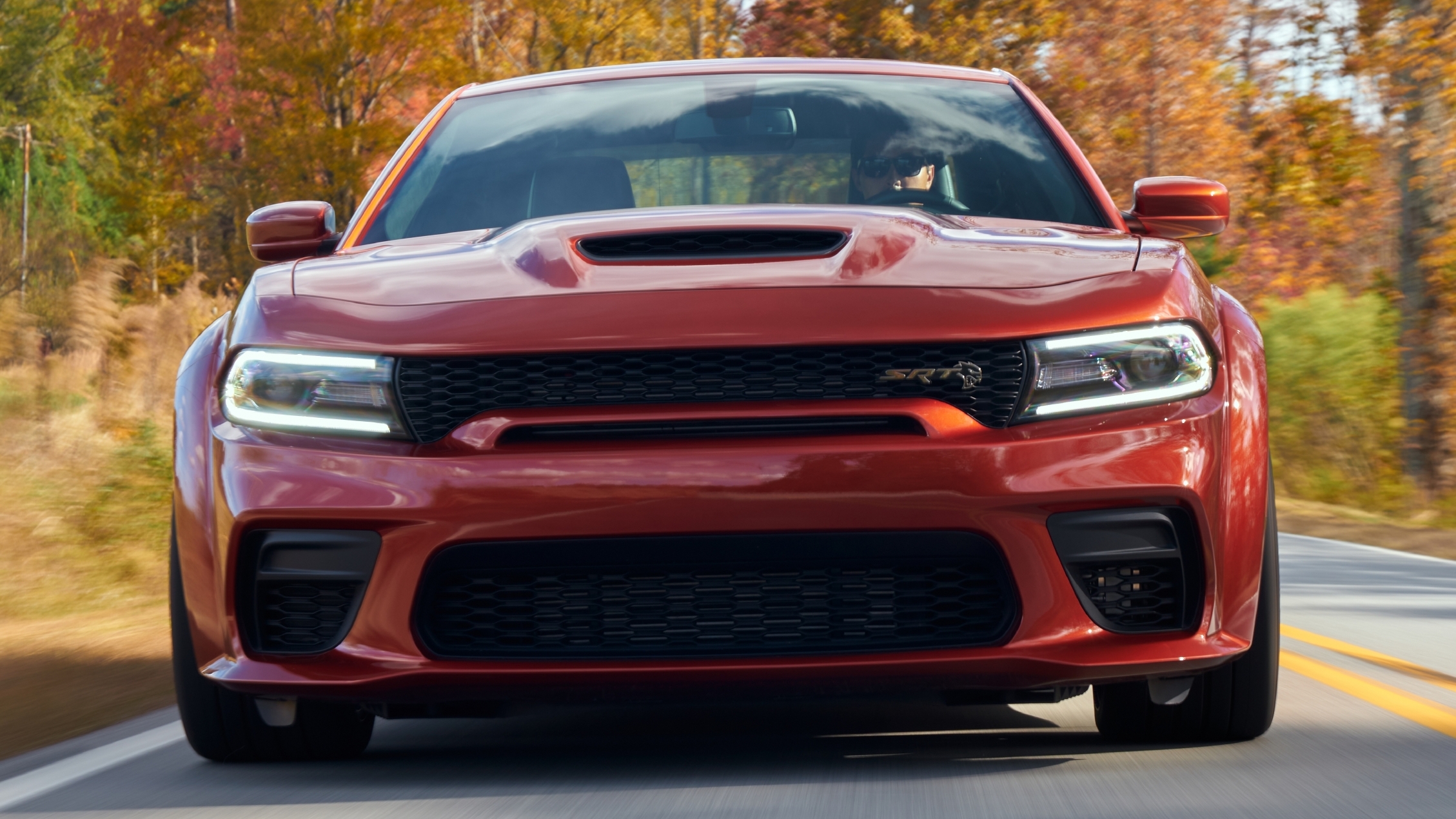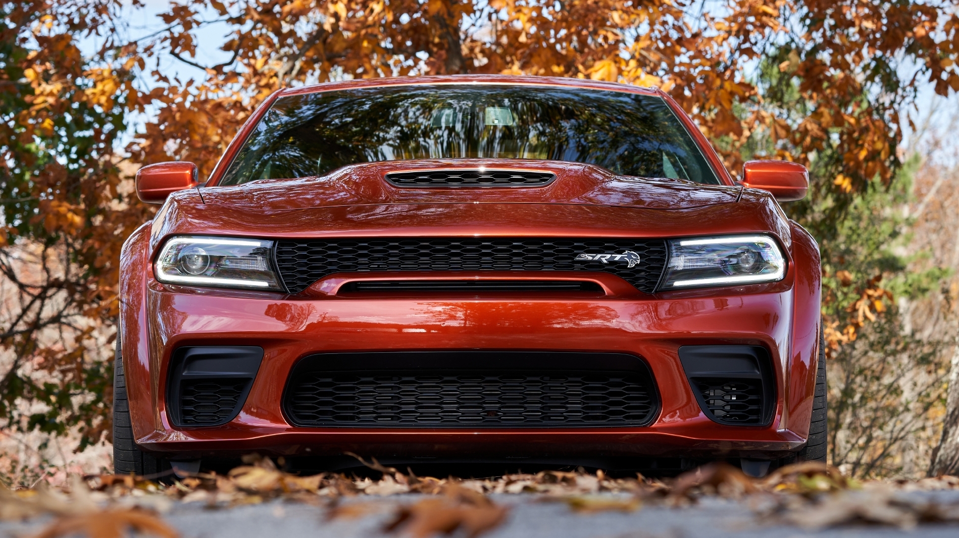 For 2021, both SRT Hellcat models get a new SRT Performance hood that not only looks more sinister but provides maximum air intake to the supercharged HEMI from the functional hood scoop to boost power. The new performance hood, mail-slot grille opening, and airbox opening near the wheel liner combine to give the high-output engine an 18% greater air-flow rate than the SRT Hellcat engine (1,134 cubic feet per minute).