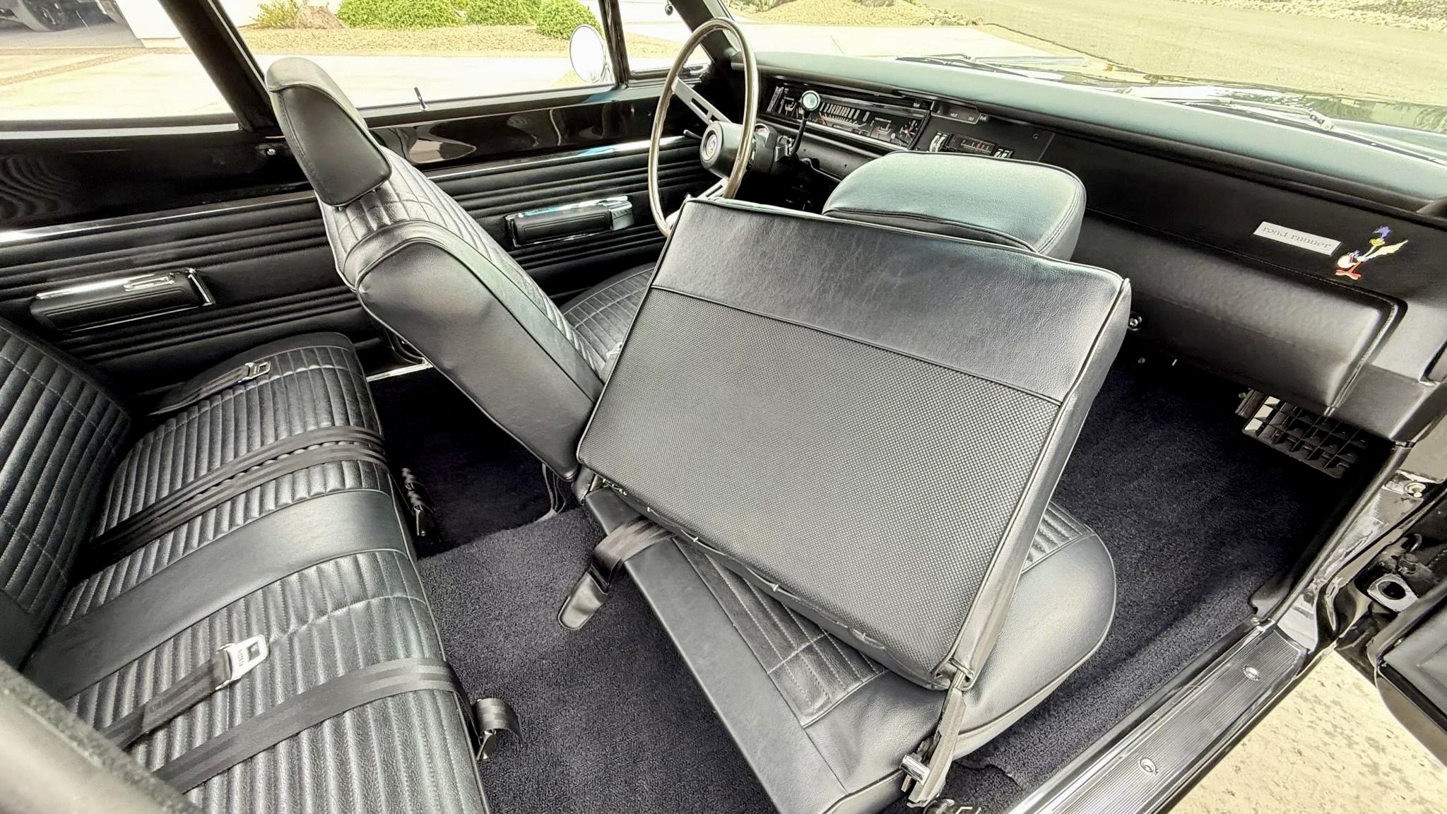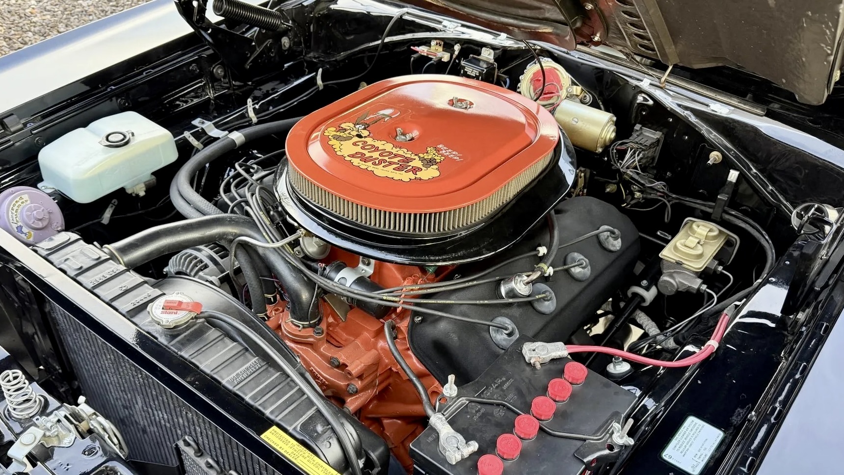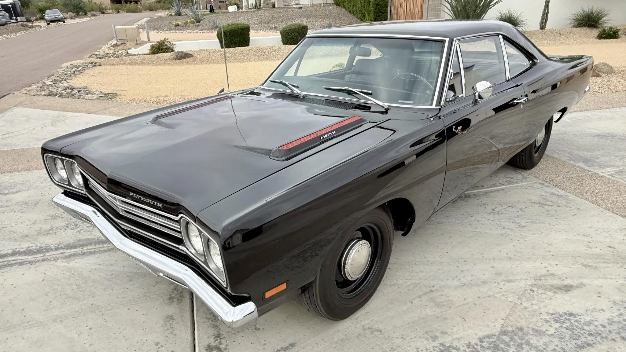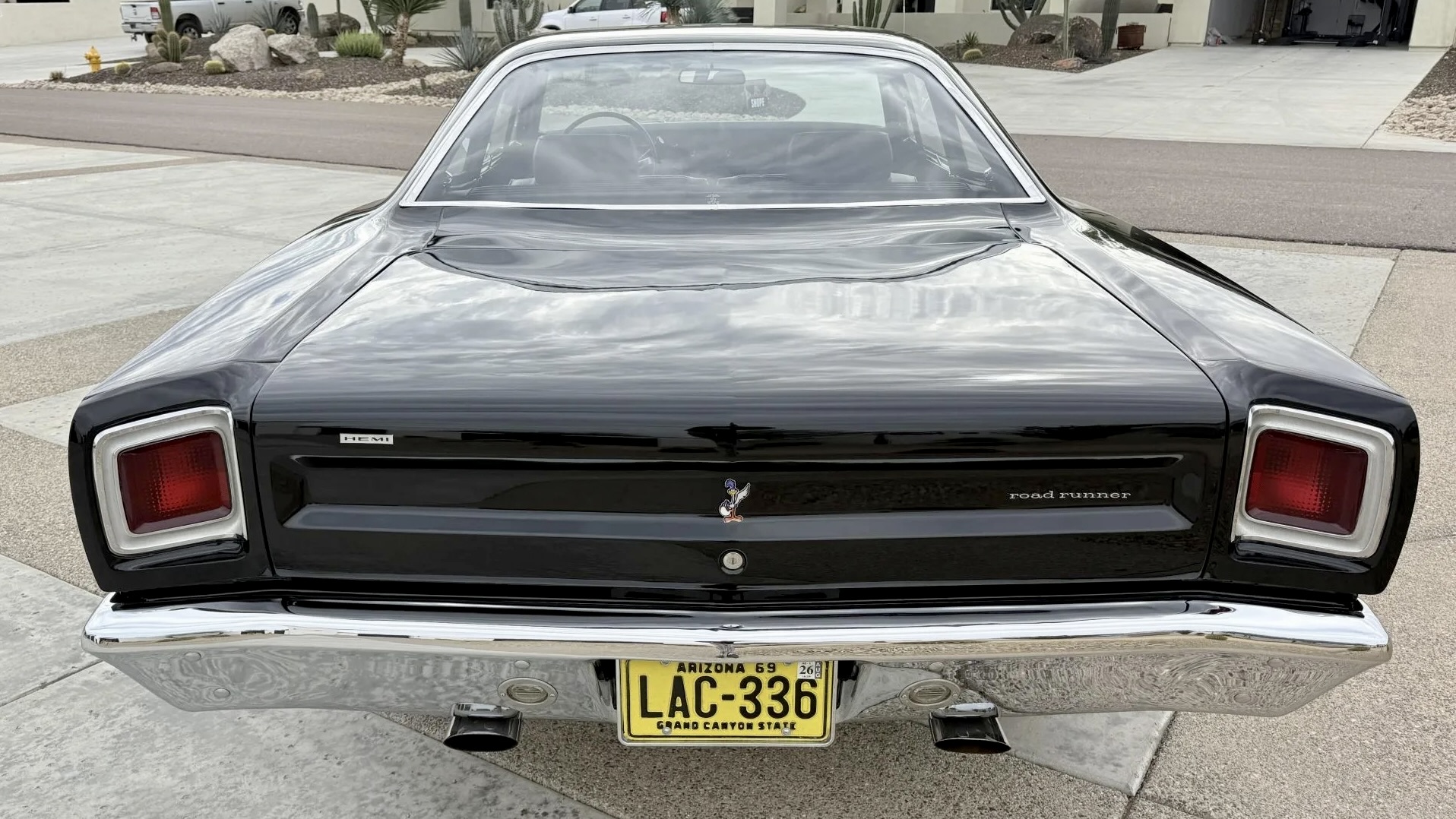 After spending decades in Arizona, the car received a rotisserie restoration around 2012. During the process, the engine, red-line tires, suspension, brakes, wiring, and cooling system were overhauled. The exterior was repainted in its original black finish, and most factory-correct trim was restored. From its fender-mounted antenna to the signature Road Runner graphics, everything looks ready for Saturday-night cruising… or Concours judging.