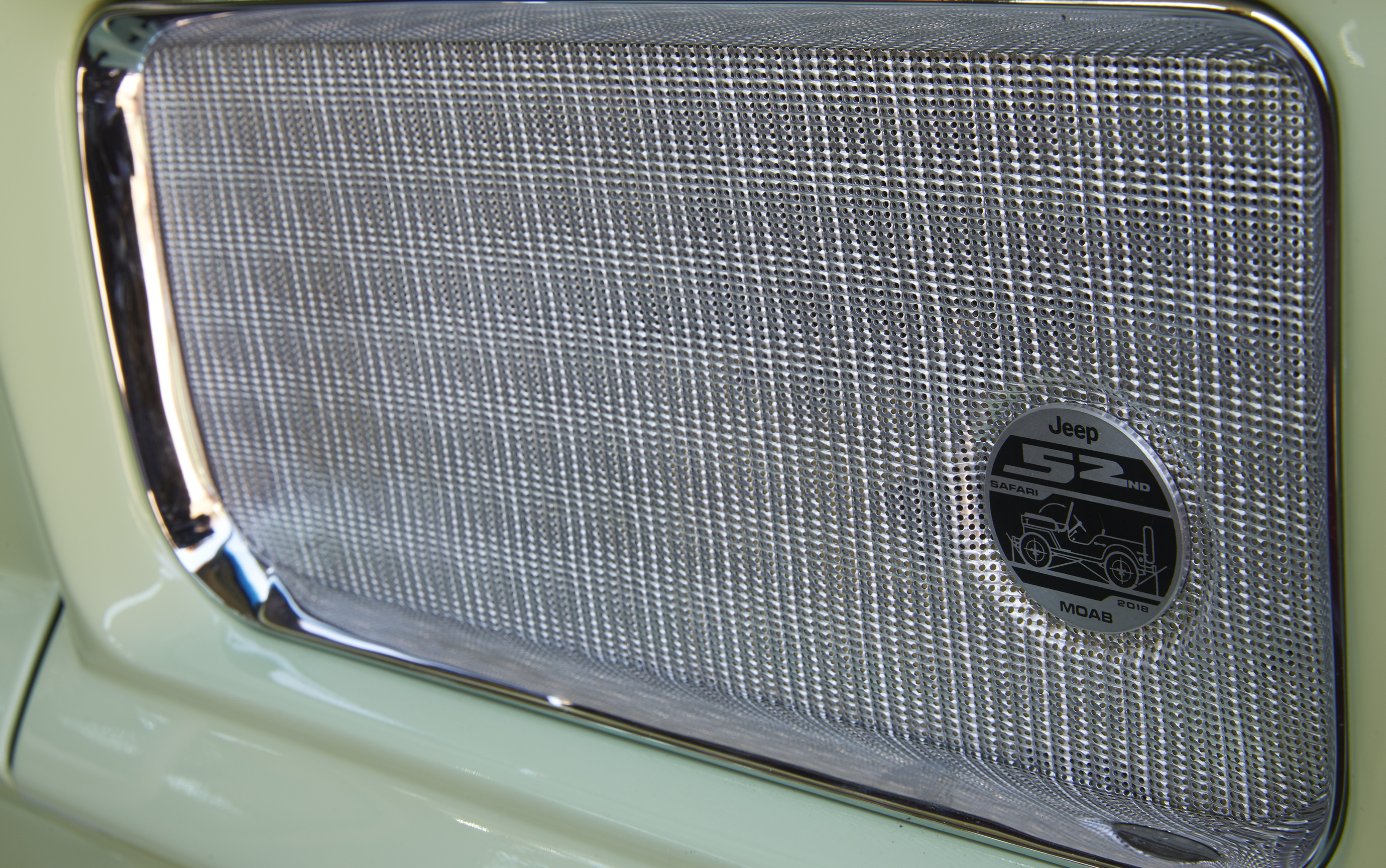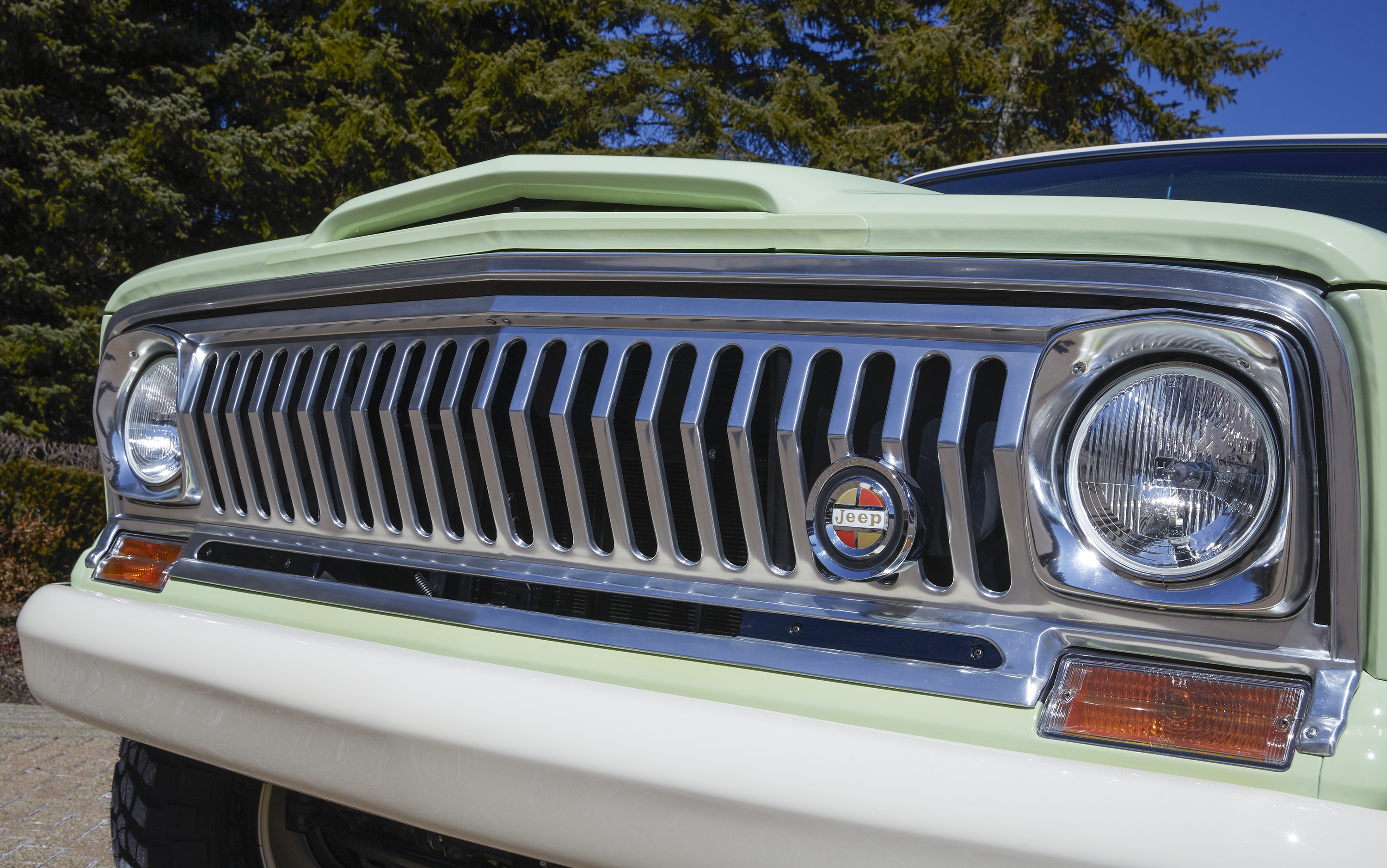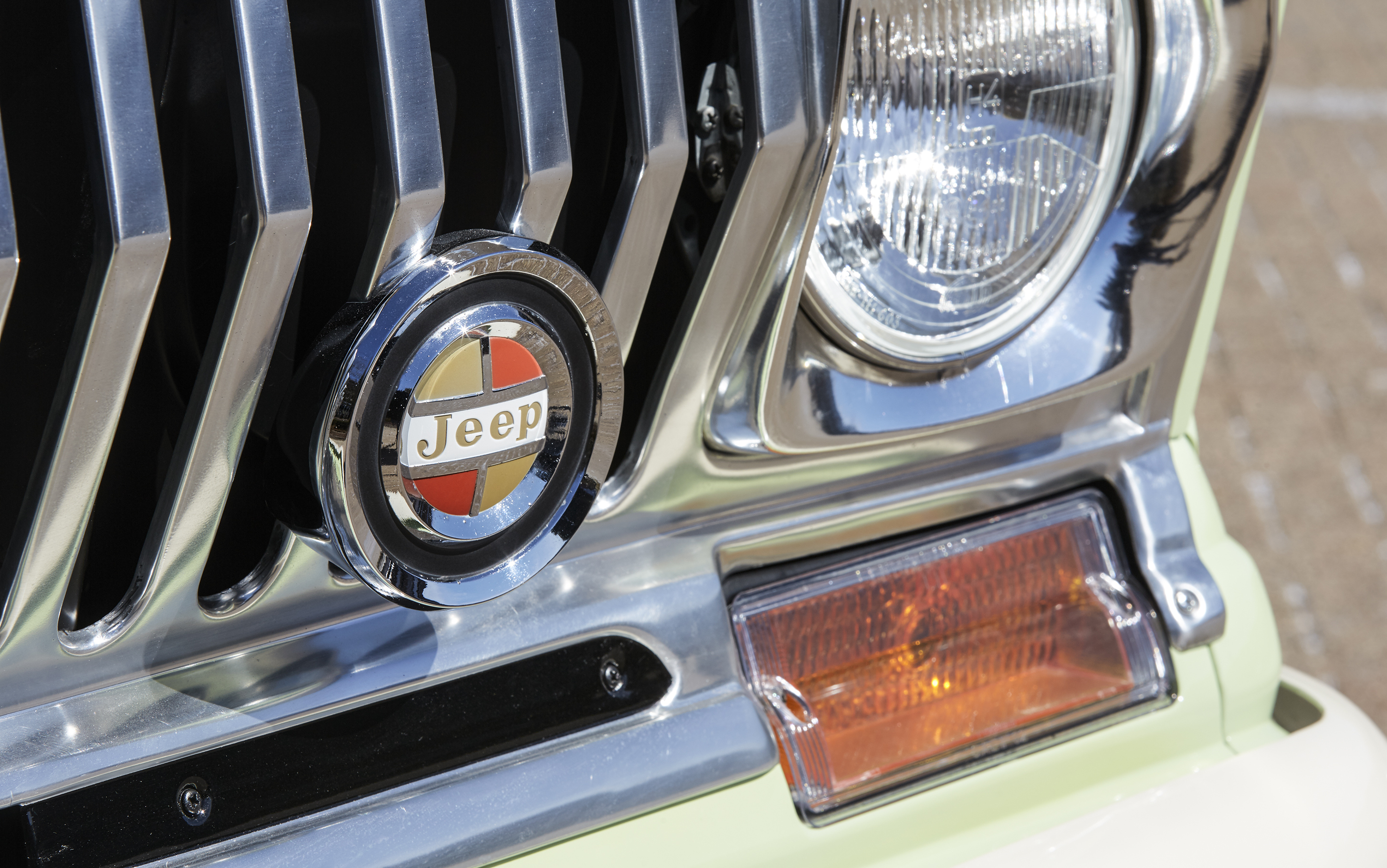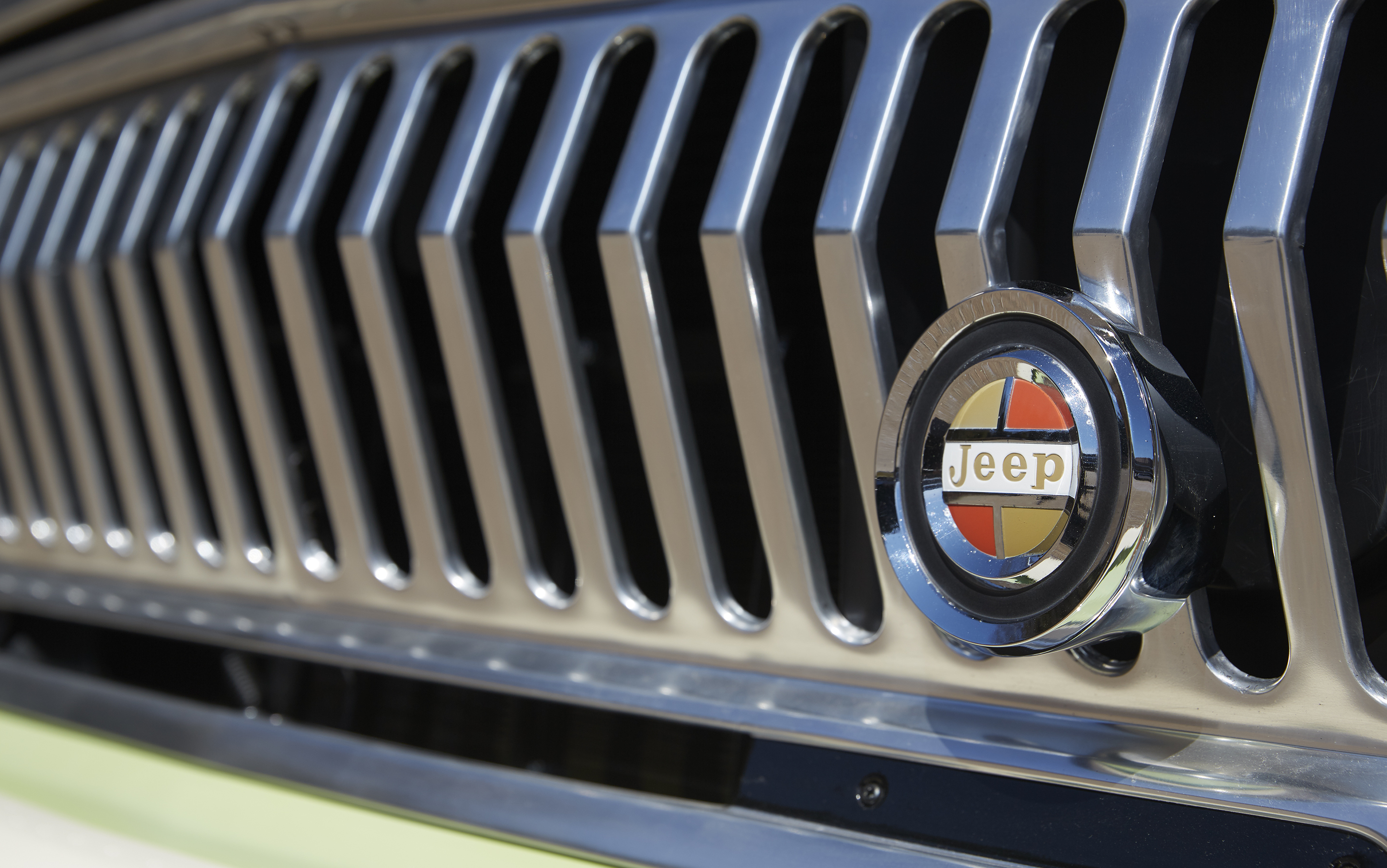 The Jeep Wagoneer heritage vehicle is powered by a 5.7-liter HEMI V-8 crate motor from Mopar and is mated to a four-speed automatic transmission.