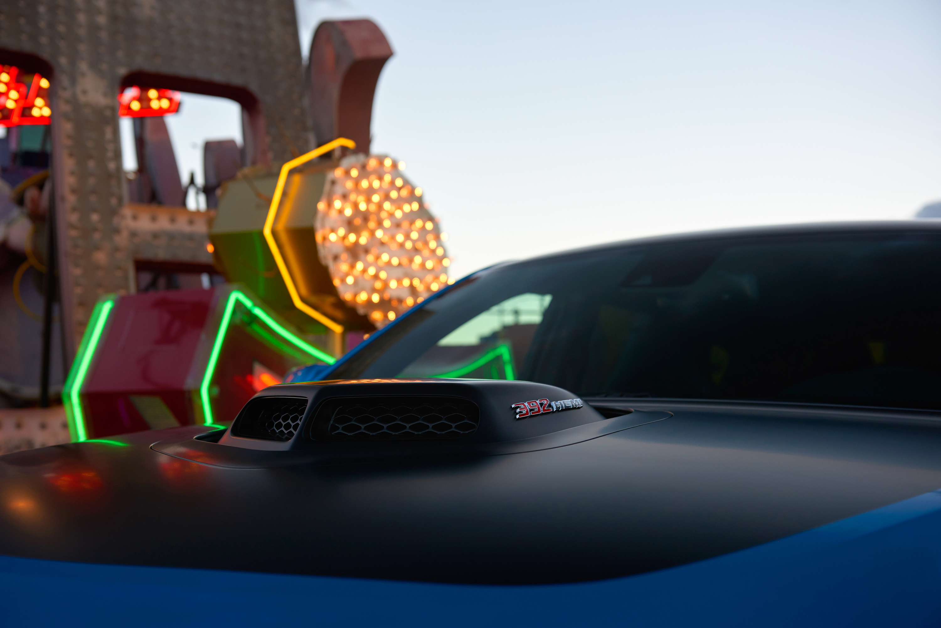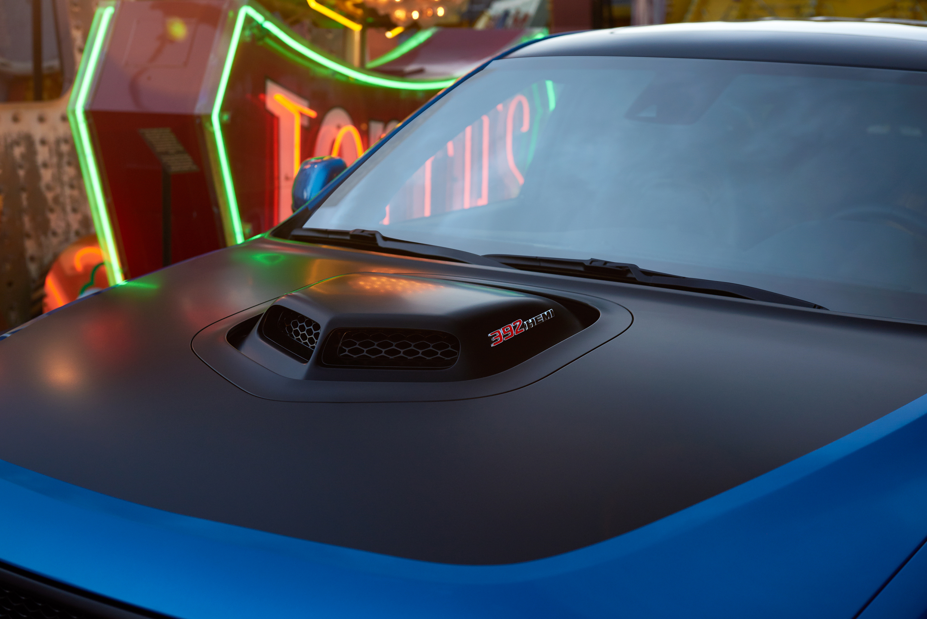 The interior also boasts what is undoubtedly another first for Dodge brand’s SUV – three rows of Viper seats, trimmed in Katzkin leather with B5 Blue stitching. The performance flat-bottom steering wheel comes from a Dodge Charger SRT. The center console and entertainment center console bezels are also colored B5 Blue, and a T-handle console shifter from the Charger replaced the standard rotary knob (which would later make it to production in the 2018 model year). Mopar accessories included remote start, EVTS (Electronic Vehicle Tracking System), bright door sill guards, Mopar wireless charger, Mopar aluminum pedal kit and an emergency kit.